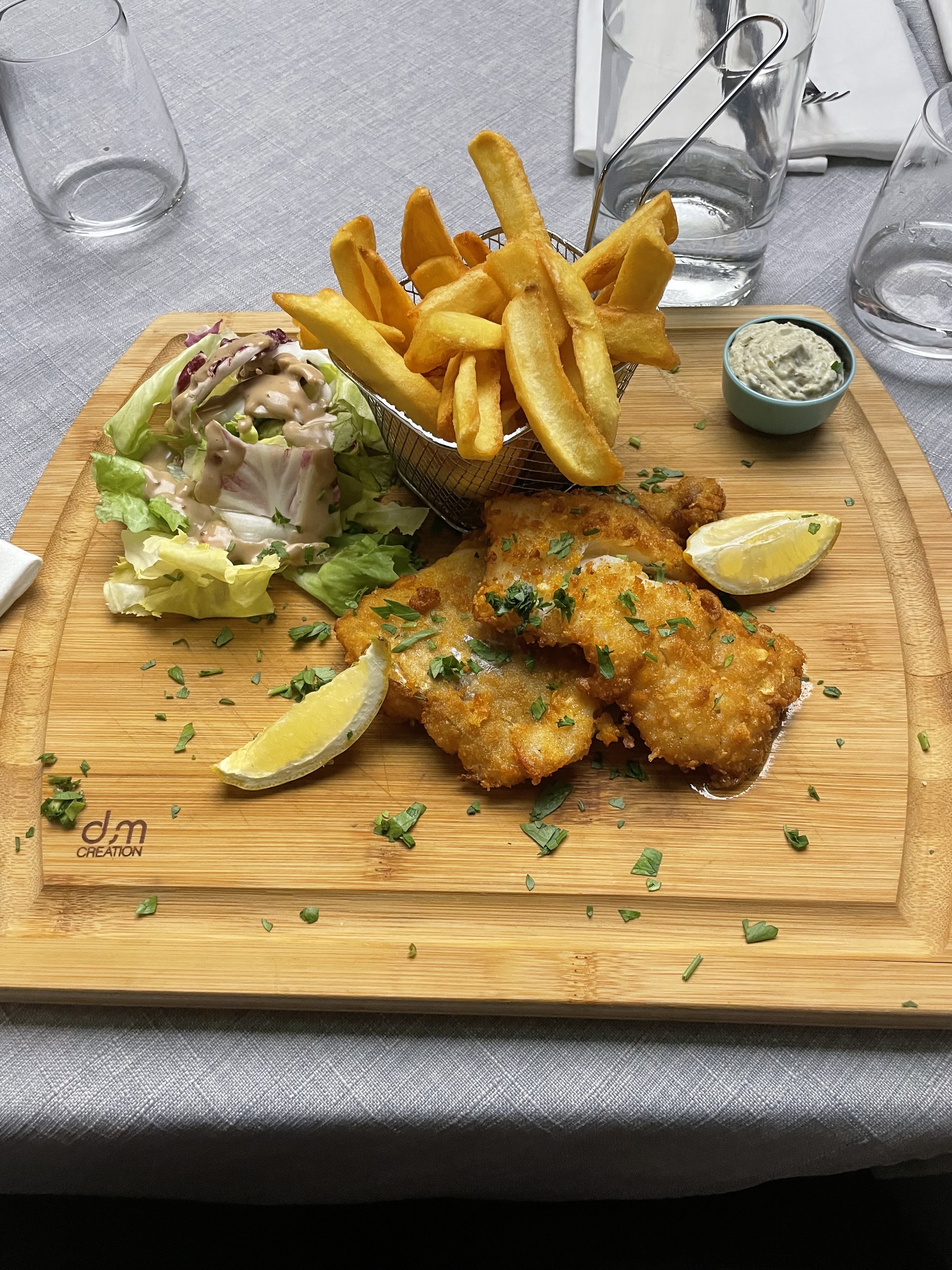 J'y ai mangé un trÚs bon fish and chips. Servi avec une salade fraßche et de bonnes frites le tout accompagné par une excellente sauce tartare fait maison. Une bonne brasserie, je recommande !