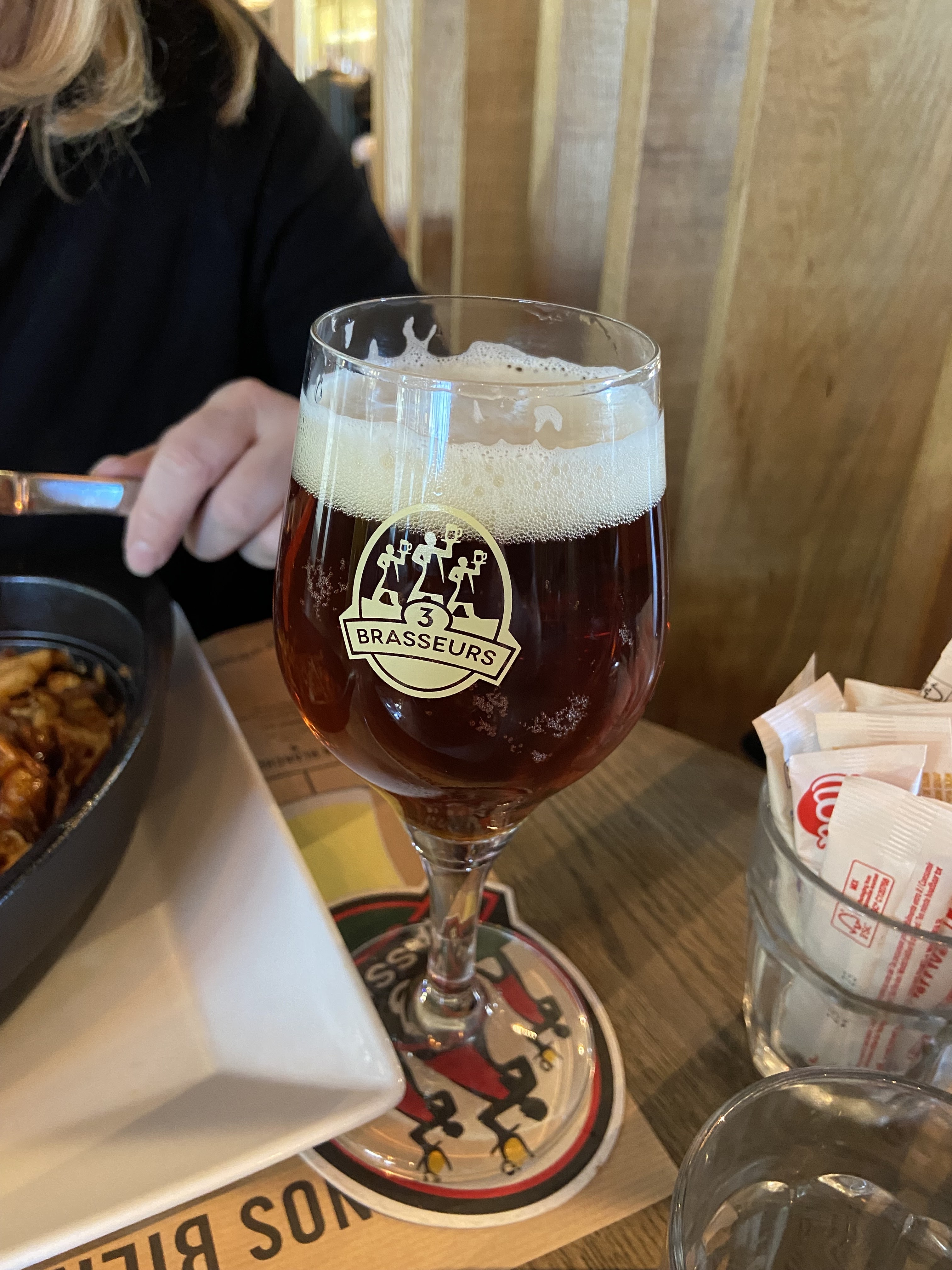 Je suis venu avec un ami pour la première fois dans ce restaurant 3 brasseurs, et globalement nous en sommes sortis satisfaits et nous reviendrons ! + Les bières excellentes + La cuisine, sans être exceptionnelle, qui est de qualité + Le lieu bien décoré et chaleureux - Une attente un peu longue... Mais pas interminable - Les plats un peu trop onéreux.