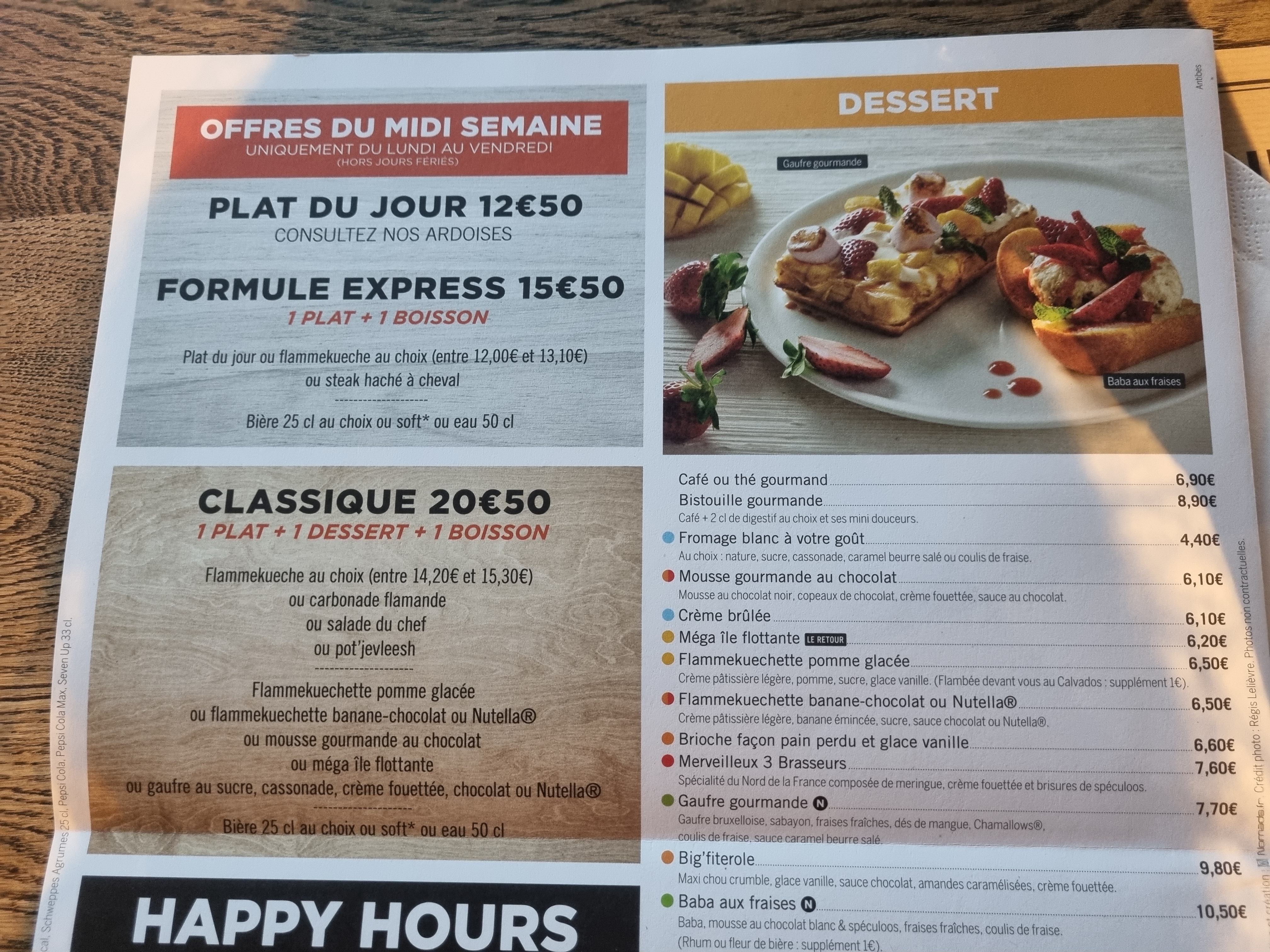 Formule à volonté dimanche lundi mardi 23.90 (bières et flams) Très bien