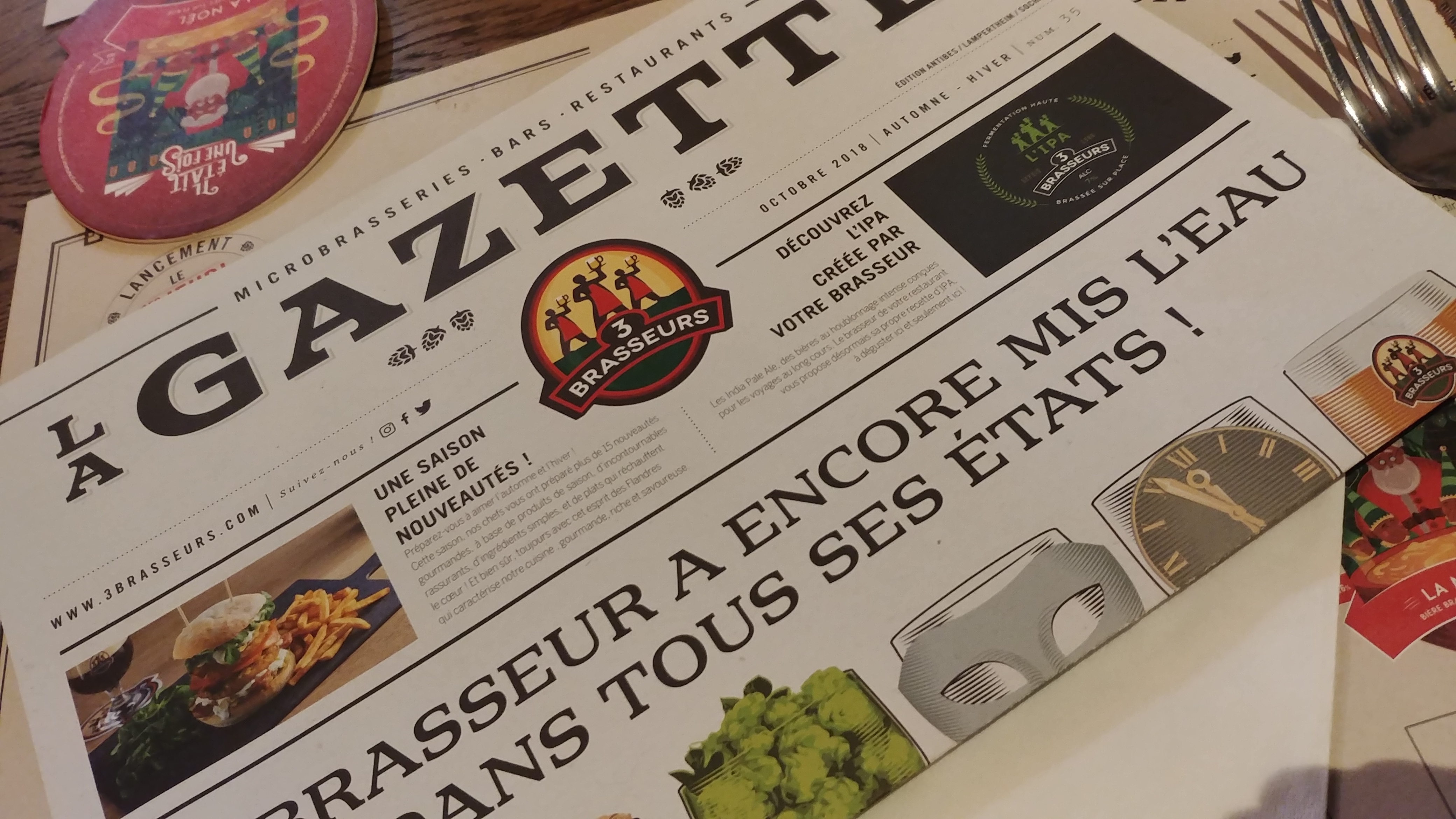 Restaurant des 3 Brasseurs implanté dans la galerie commerciale Olympie à Antibes. Super moment dans un lieu convivial, personnel super sympa. Plats de qualité brasserie ainsi que la quantité. Excellente pose déjeuner