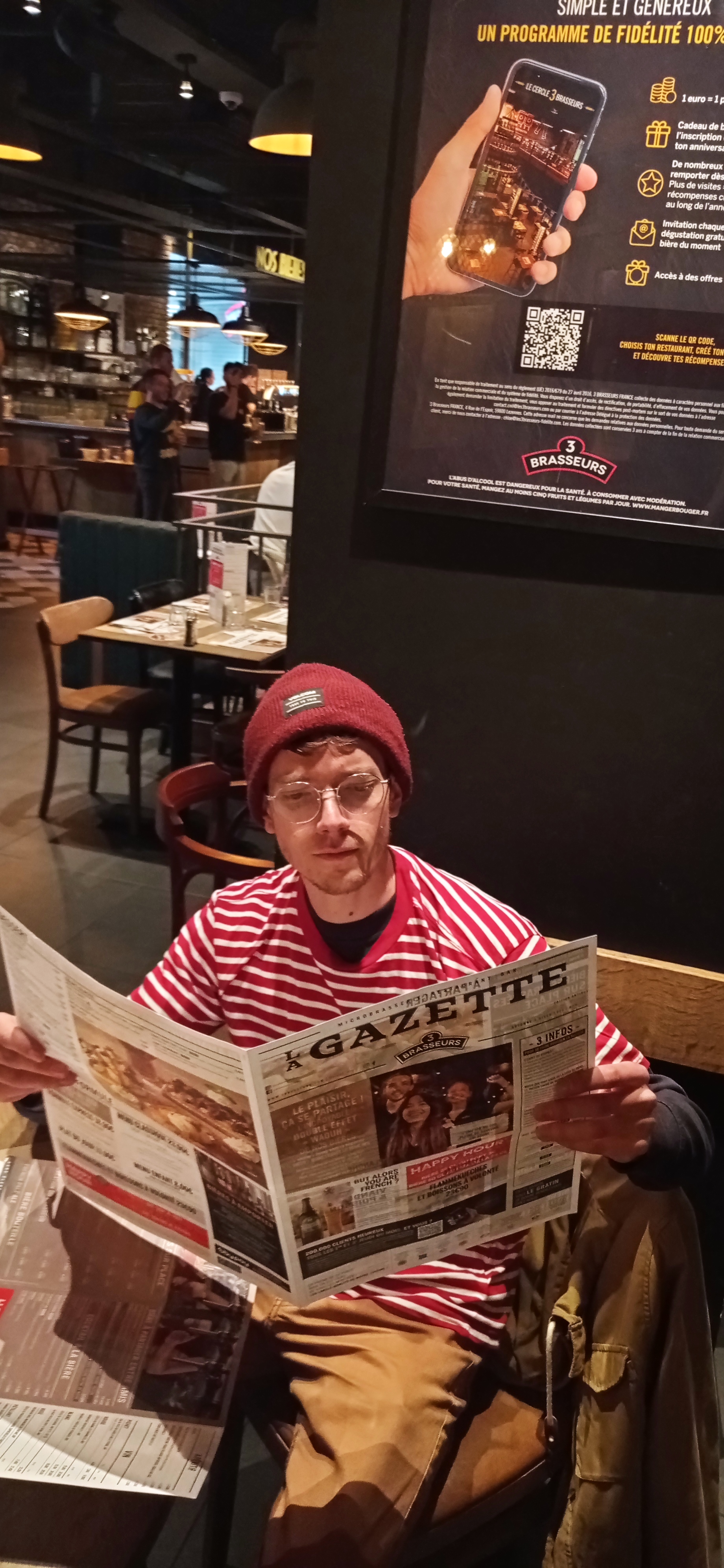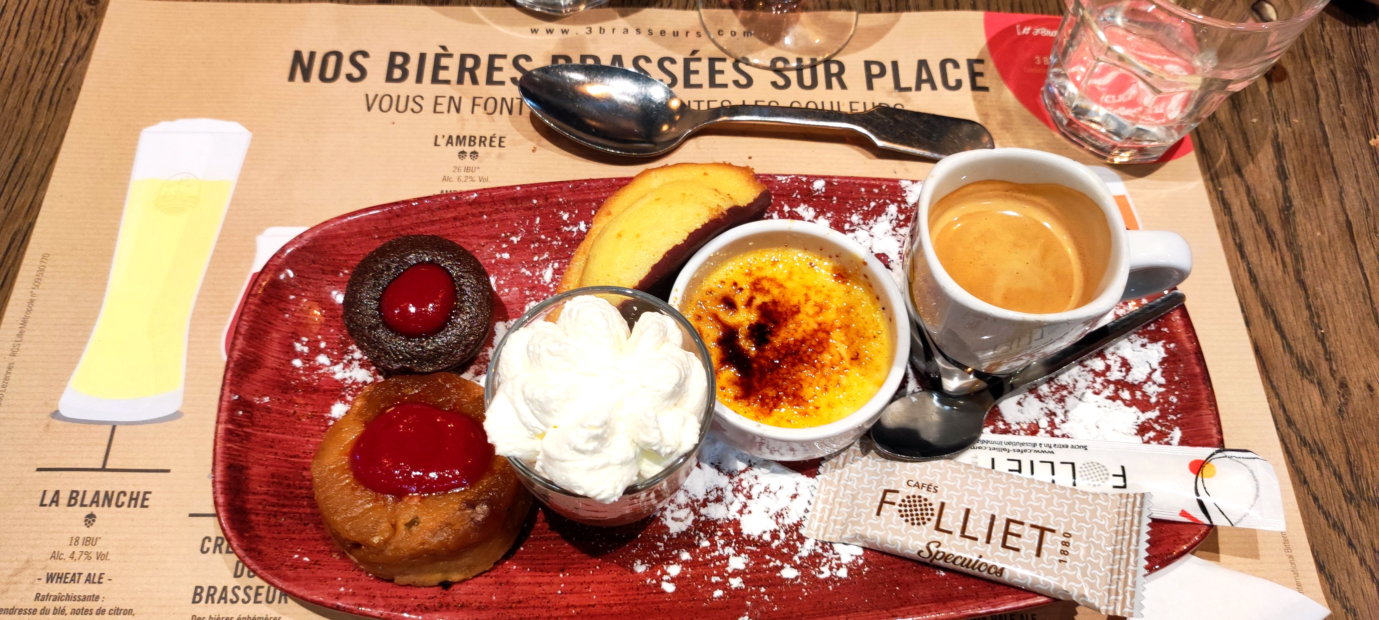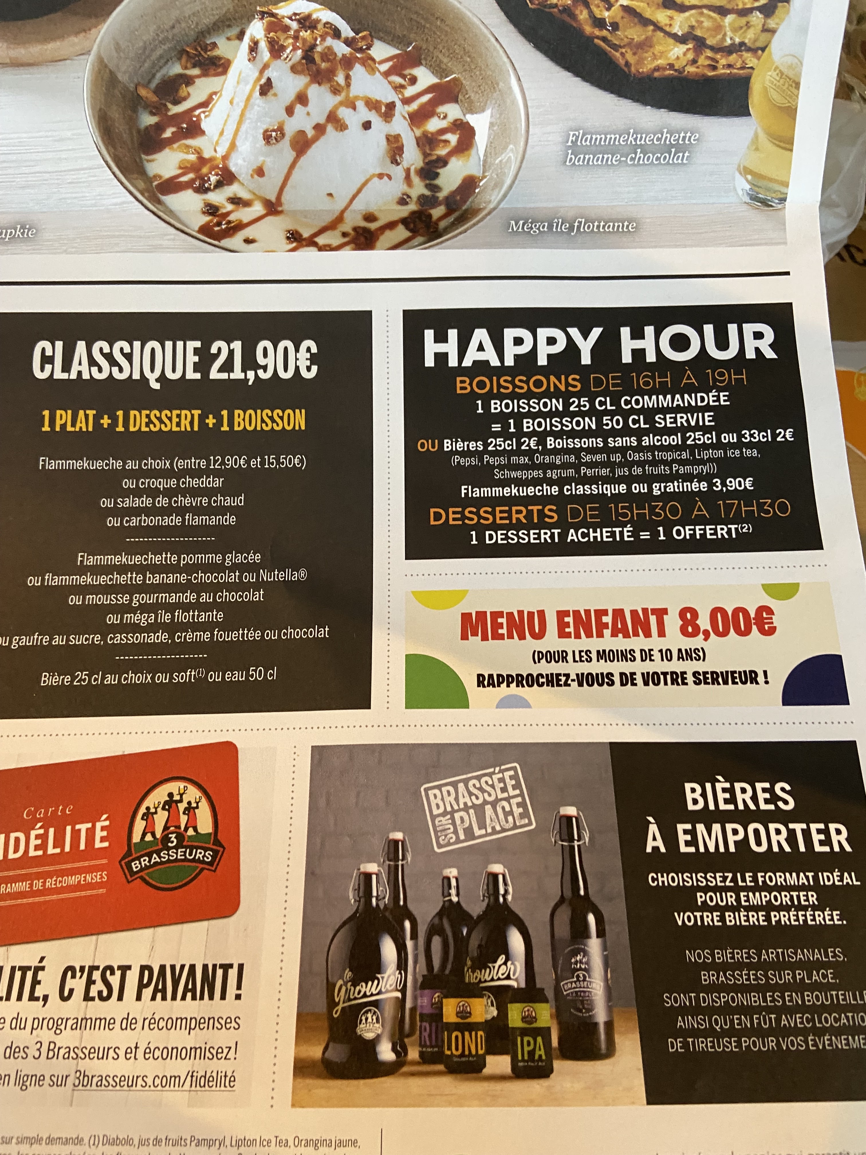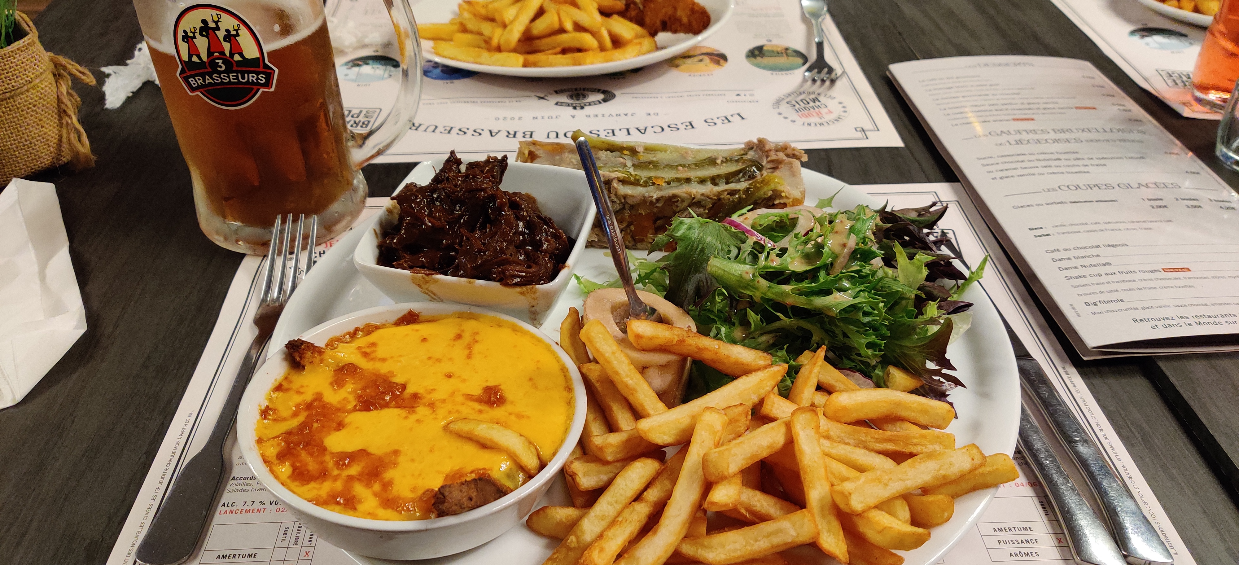 Restaurant très agréable qui propose entre autre des spécialités du nord, copieux et très bons.Ambiance sympathique et serveurs très disponibles. Merci à Serge pour sa gentillesse et sa réactivité dans le service. Je recommande les 3 brasseurs sans hésitation.