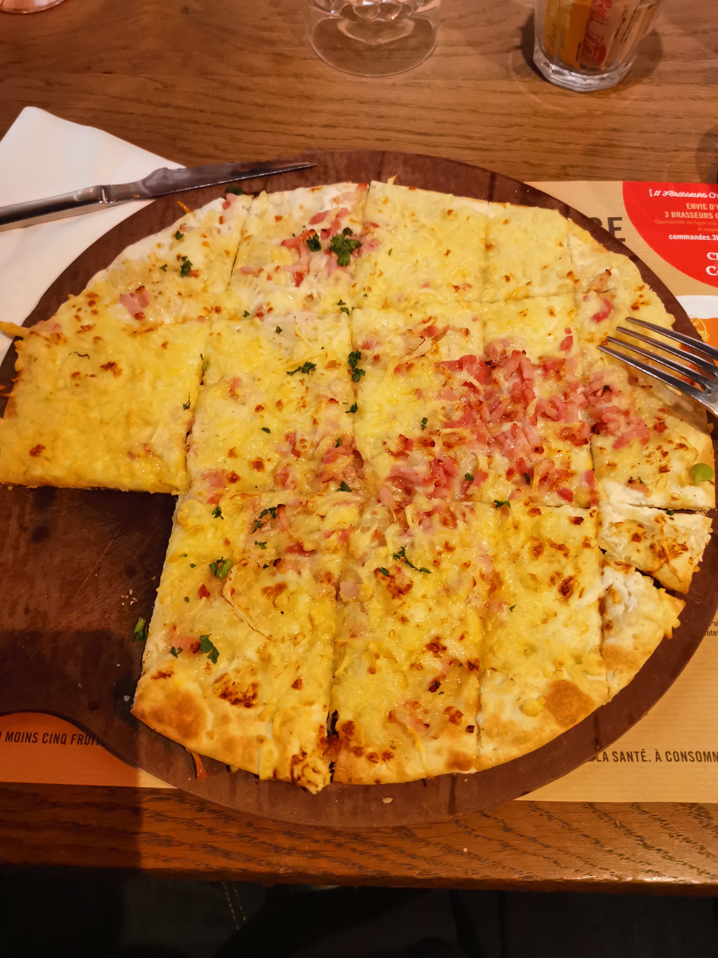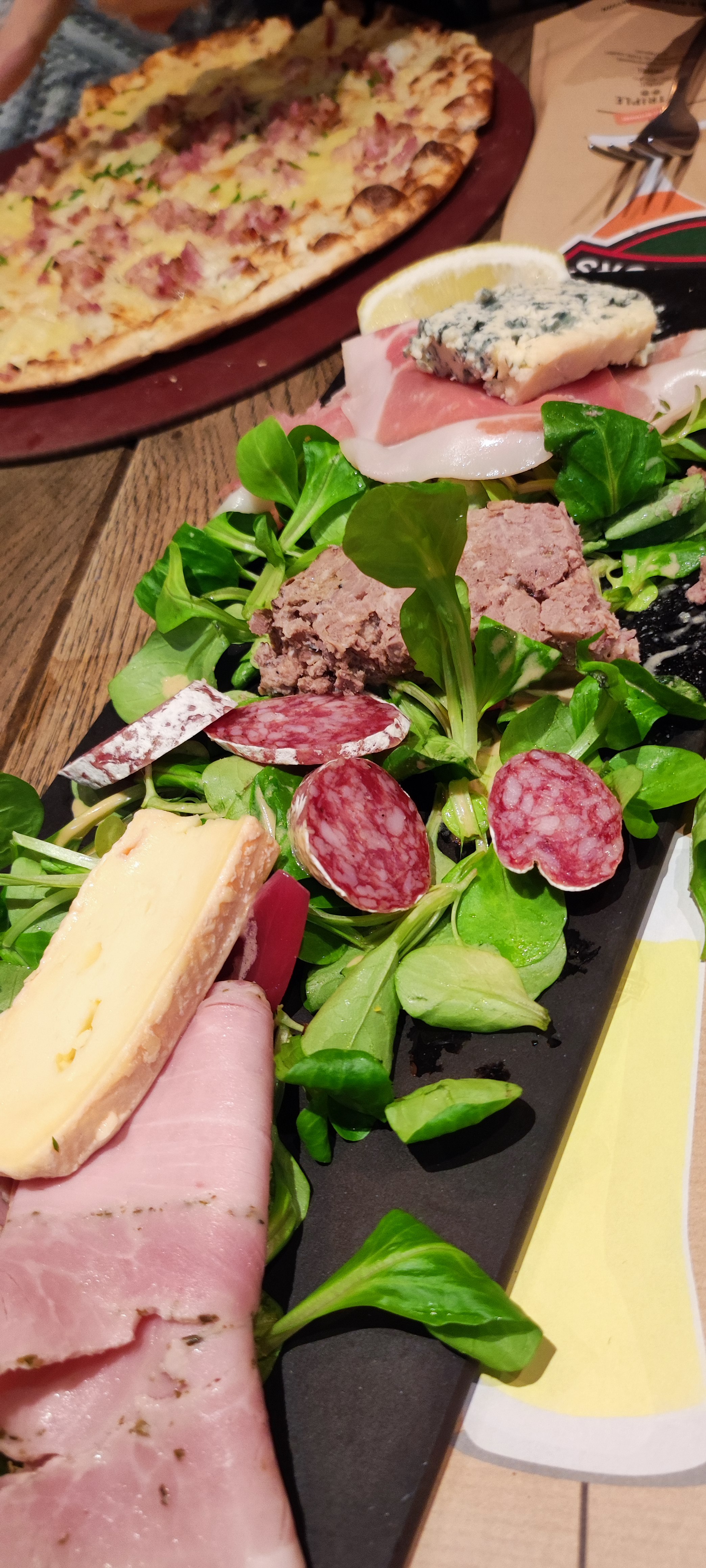 Très bien, bonne ambiance, agréable surprise ! Laetitia est une serveuse super sympa ! Nous étions sept, nous avons passé une excellente soirée autour de planches et flamenkuche à partager, le fromage chaud biloute est extra !