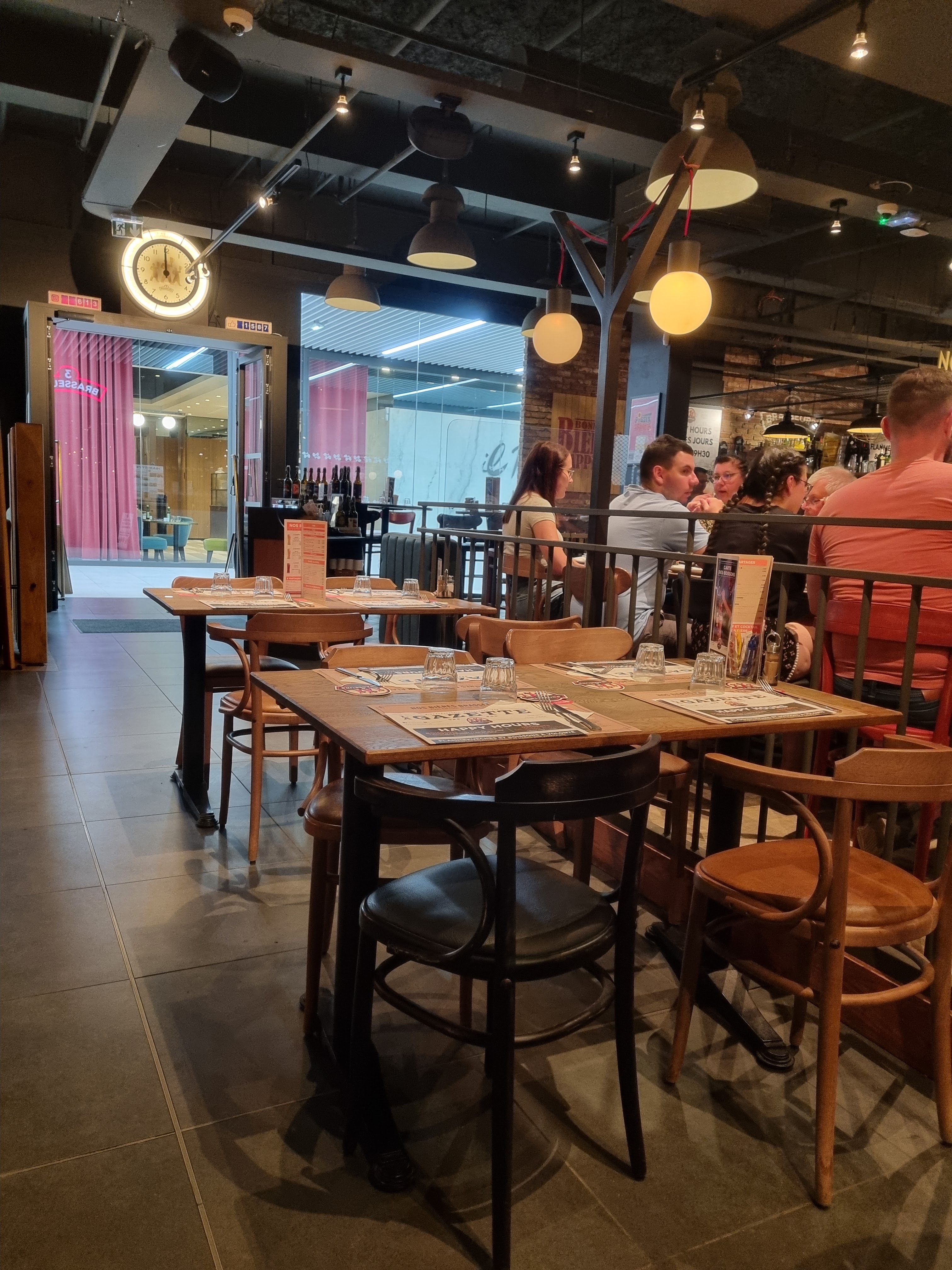Nous avons mangé dans ce restaurant en famille un vendredi soir. Notre commande a été prise rapidement les plats ont suivit dans les 5 minutes qui suivent (donc on se doute que c'est fait à la chaine). le gros problème s'est que les plats ont été plus rapidement que les boissons... donc adieu l'apéro Le serveur était très sympa mais je ne peux pas donné plus par rapport au manque d'organisation du service. Niveau ambiance: je dirais usine pas d'ambiance particulière beaucoup de bruit des gens qui mangent. J'adore les 3 Brasseurs mais celui là moins désolé