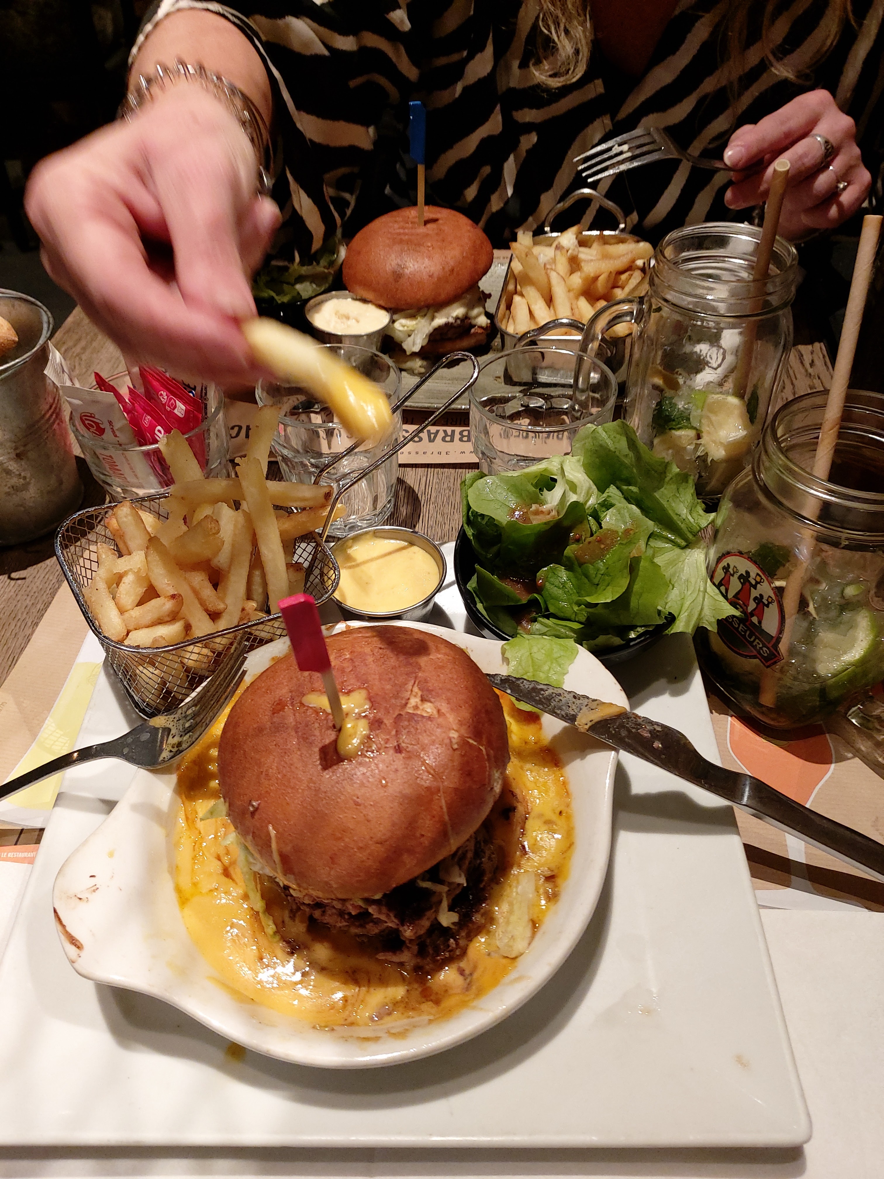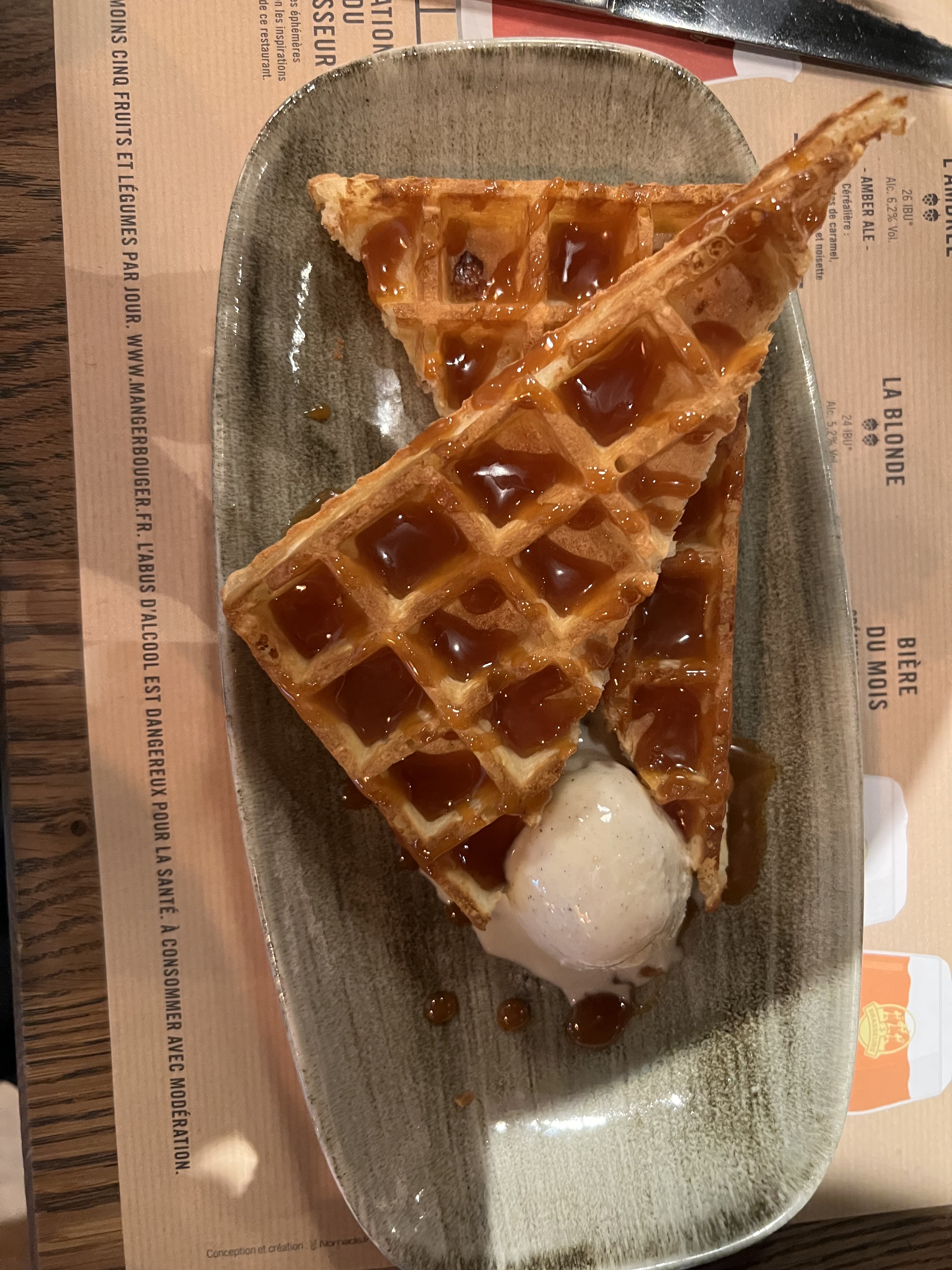 Serveuse au top : agréable et efficace ! Hamburger copieux (au maroille) et délicieux ! Bémol pour le dessert (2 boules de glace sans goût : caramel beurre salé et speculos --> plus de place pour manger autre chose tout en restant sur une touche de sucré) Dommage