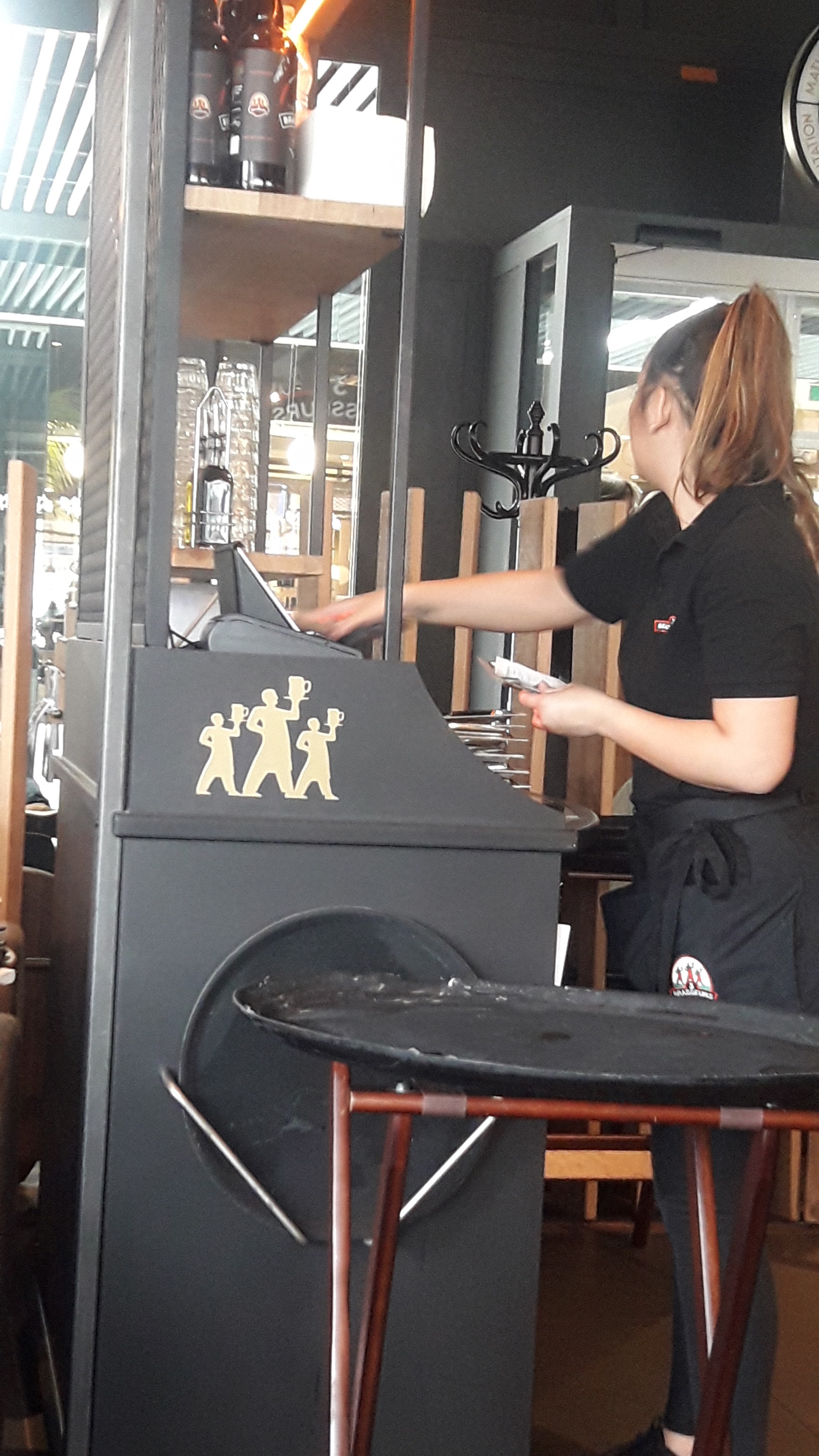 Ambiance très bien avec le groupe de musiciens mais à mon goût c’était trop fort la musique La serveuse très sympathique et efficace