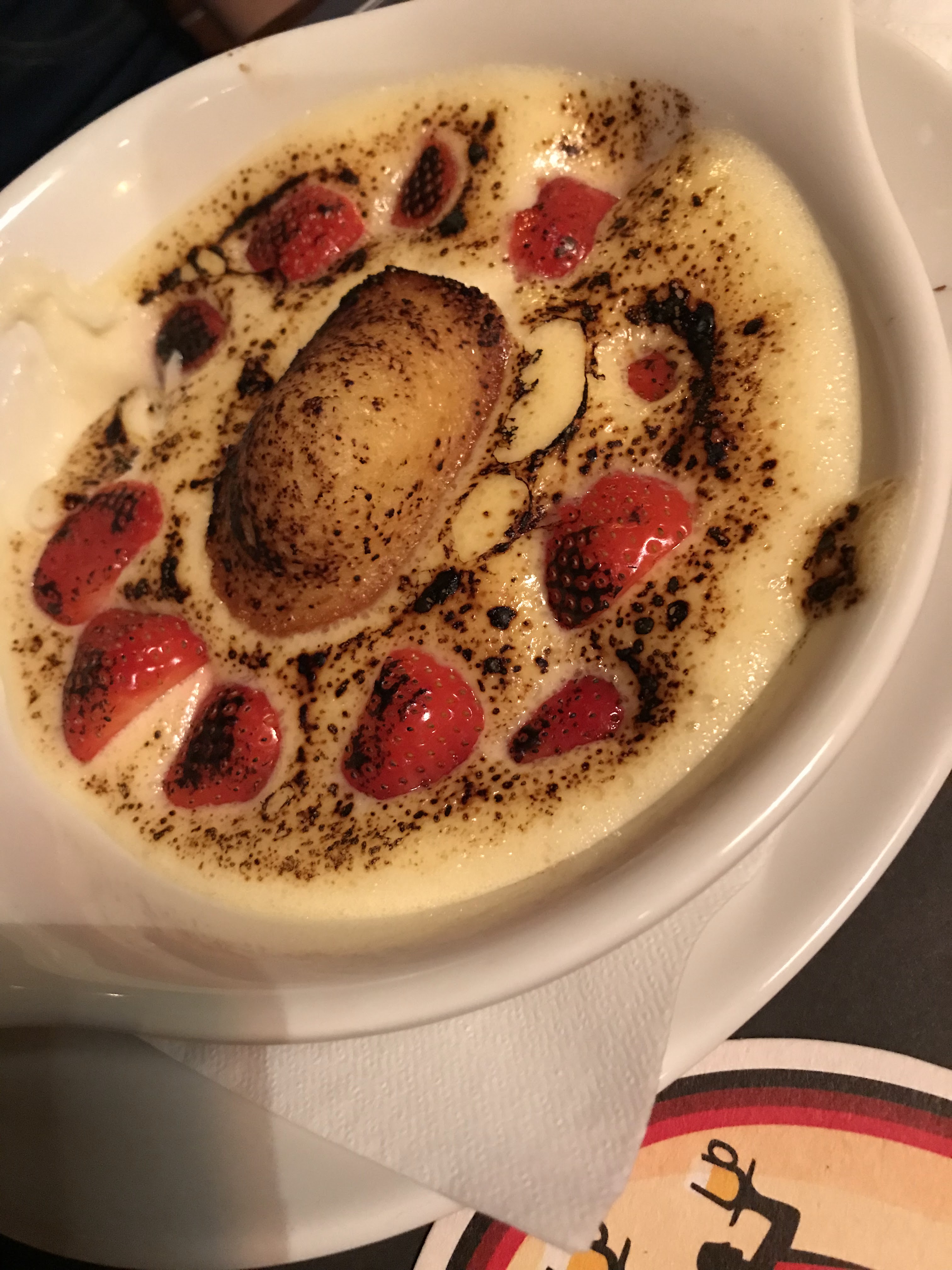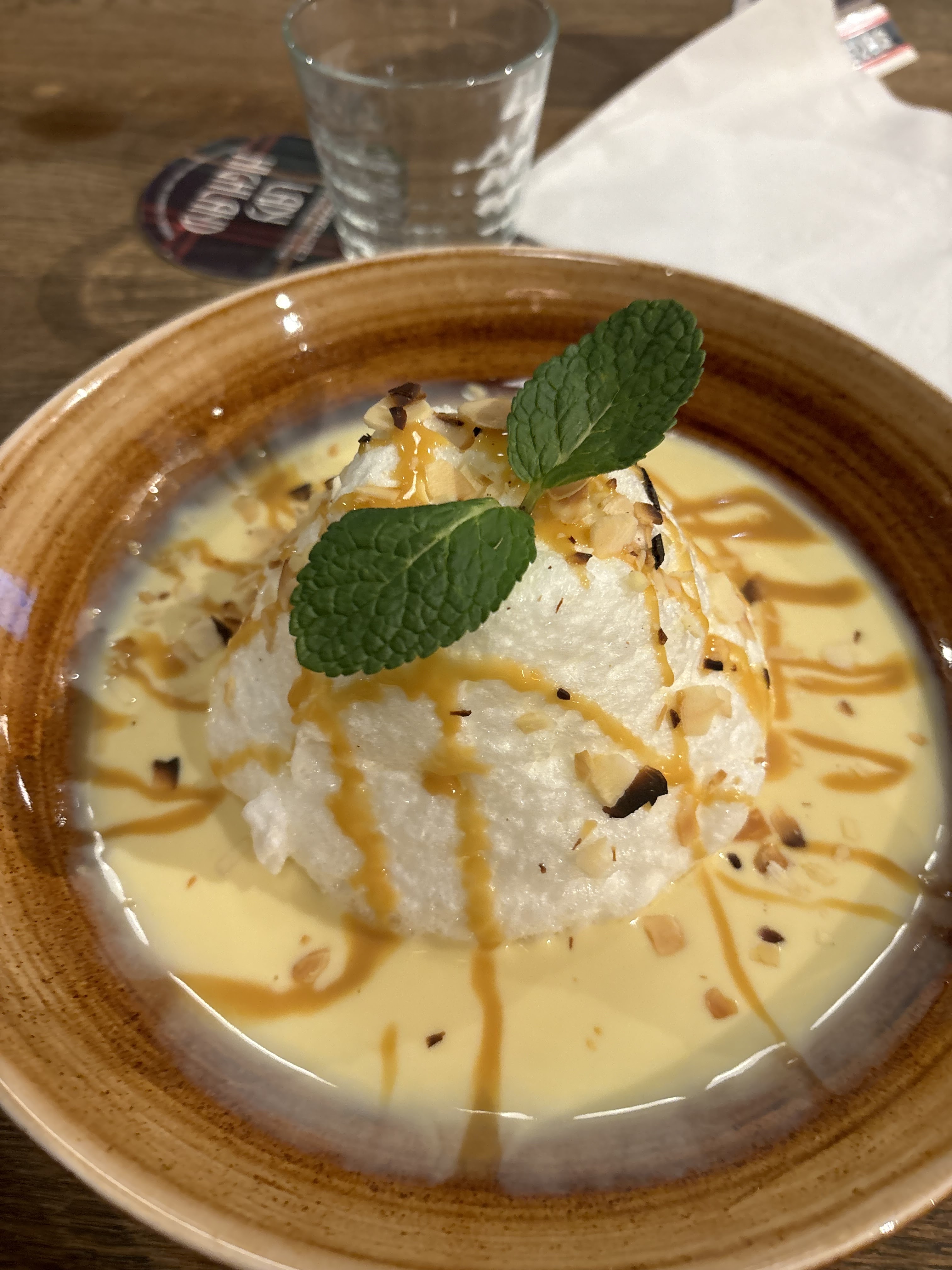 Si vous y allez un soir de concert attention avec les tables a côté c'est horrible on ne s'entend pas parler, nous avions l'impression d'embêter les serveuses, le plat n'était pas bon du tout fromage super compact, pain complètement mou et faux steak végé vraiment trop ressemblant a de la viande (ils doivent sûrement cuire sur les même plaques) ! L'île flottante flottait sur du lait plus que de la crème anglaise ... Seul point positif la bierre 😇 pour un apéro c'est top mais pas plus.
