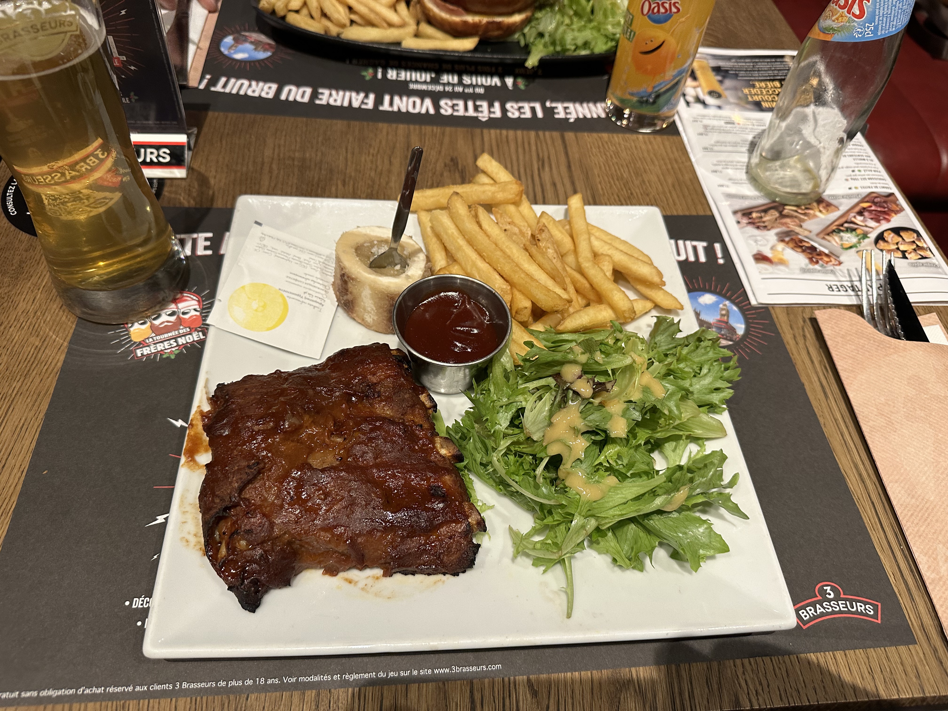 Autant d’attente un soir en pleine semaine c’est étonnant Cette fois ci ce n’étais pas fameux du tout .. il y a des jours avec, d’autre sans ! Ribs pas savoureux, pas tendre (350g j’ai un doute sur le grammage) Pas de pain salade peu assaisonnée … On essaieras à nouveau en espérant tomber sur un bon jour