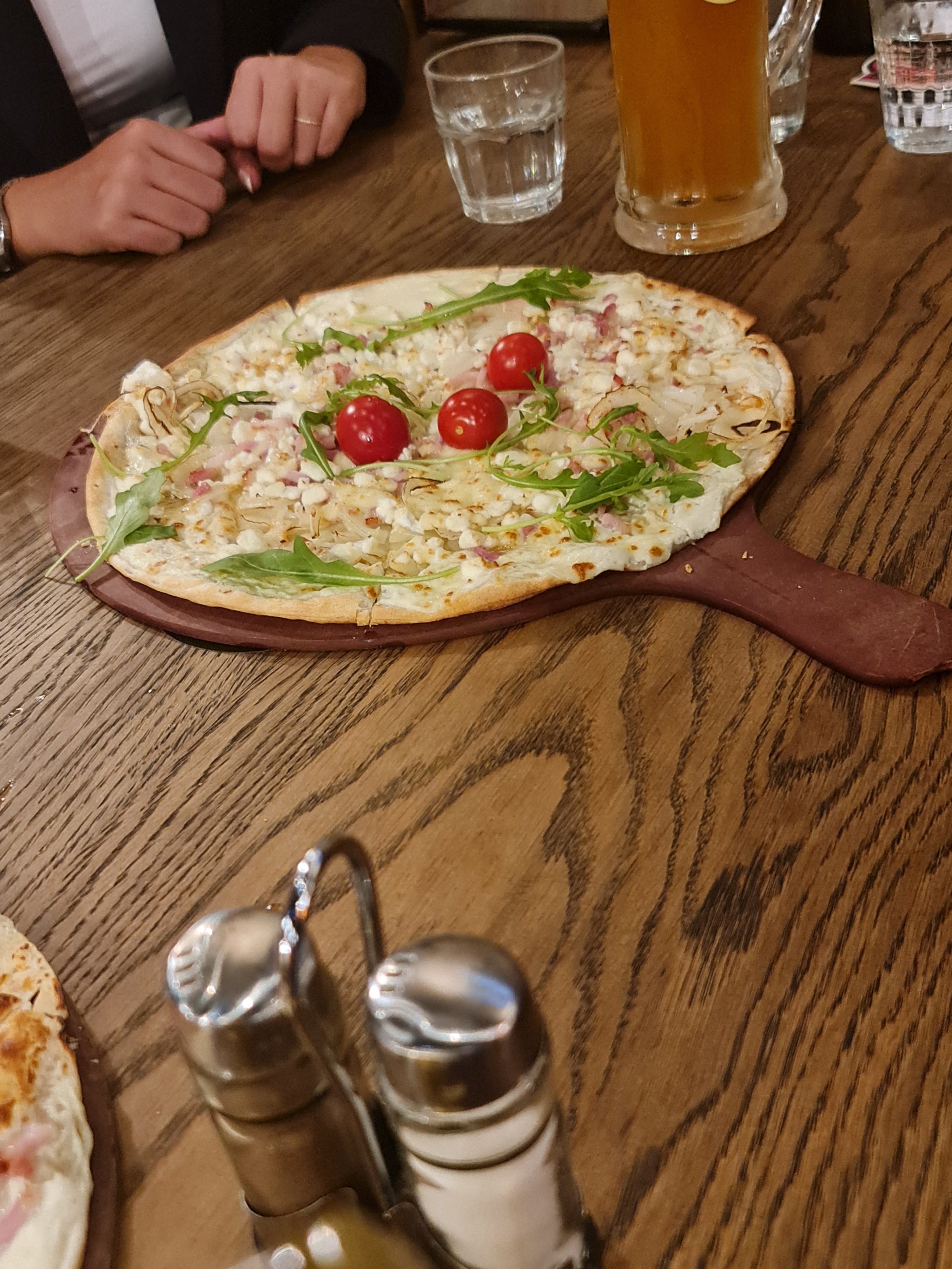 Accueil sympa serveuse agréable. Un apéro avec une tarte flambée gratinée immangeable...pâte pas bonne , pas assez de crème les oignons je cherche encore!! Dommage pour le clin d'oeil à l Alsace