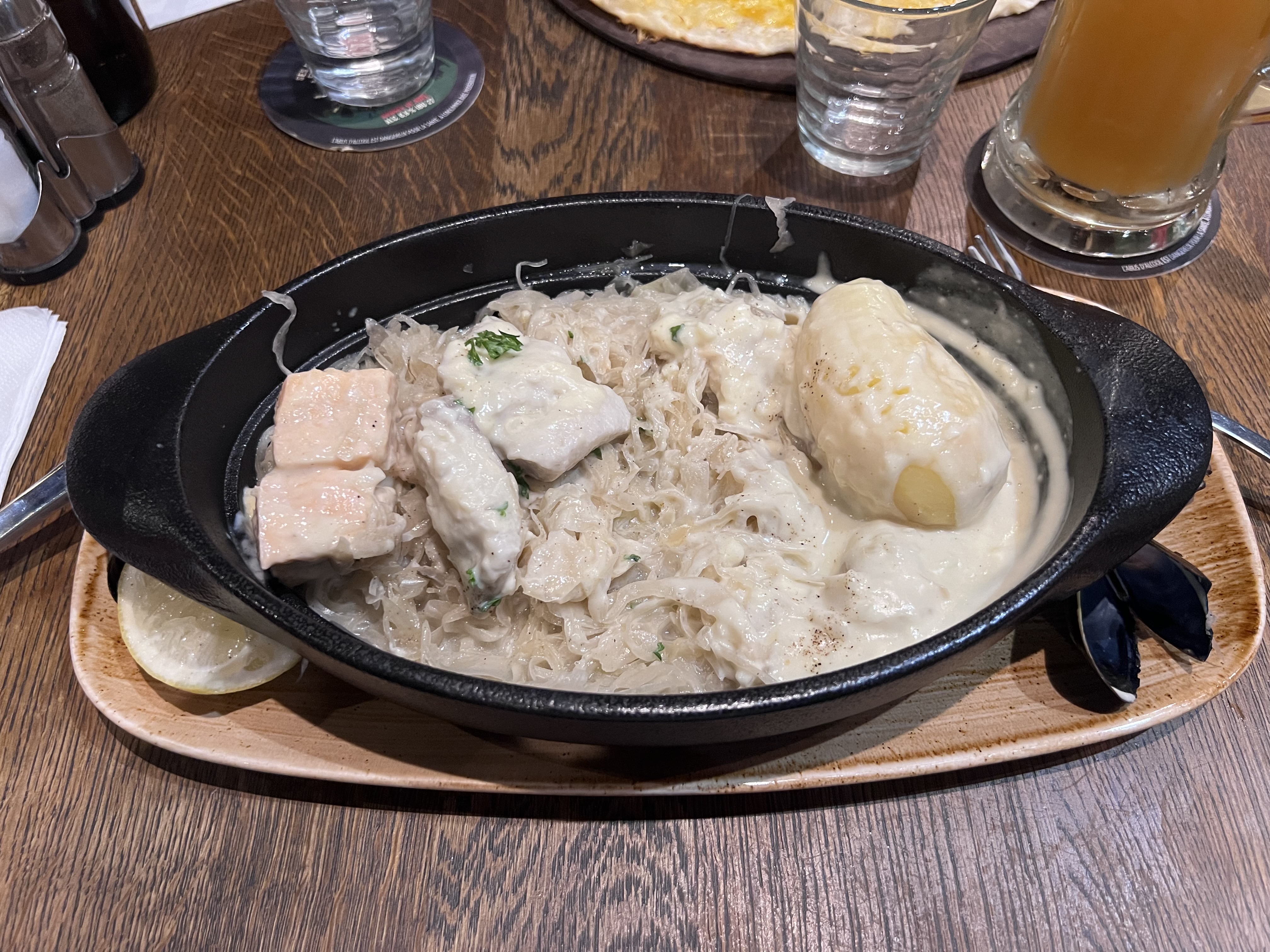 Les bières sont très bonnes, le reste aussi mais on sent que ce n'est pas des produits frais ou fait par eux-mêmes (les ptites miniardises avec le thé gourmand par exemple, le poisson est congelé c'est évident, et pas assez de morceaux dans la choucroute)