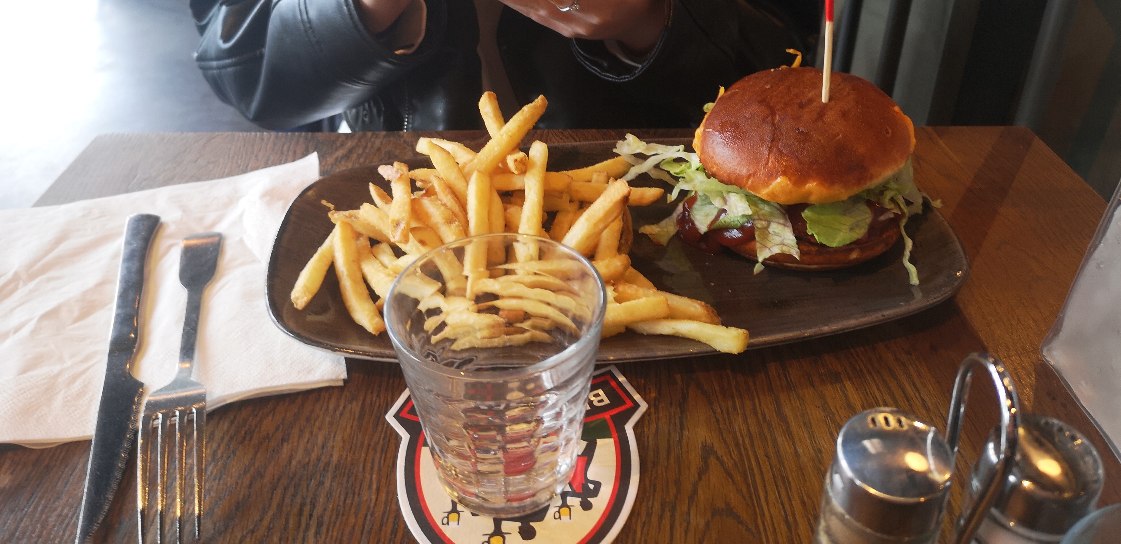 Je suis venus en compagnie de 11 personnes et j’ai été agréablement surpris de l’attente, nous avons attendus 17 minutes avant d’êtres installer à table alors que le restaurant était très bondés. La prise de commande a était faite rapidement, nous avons attendus un peu plus de temps avant d’êtres servis mais toujours sour le sourire et regard bien veillant des serveurs. Quant à la cuisine nous mangeons bien mais trop peu pour ce que nous payons, les cuisson n’on pas été respecté pour un burger BIEN CUIT qui était à point… Les accompagnements ne sont pas du tout assaisonné ce qui est dommage j’ai pris du riz qui était sans goût même avec l’ajout de sel et de poivre. J’ai pris un faccio qui était très goûteux mais trop peu de garniture, un pauvre filet de poulet dedans avec plus de salade et d’oignon que de viande à l’interrieur.