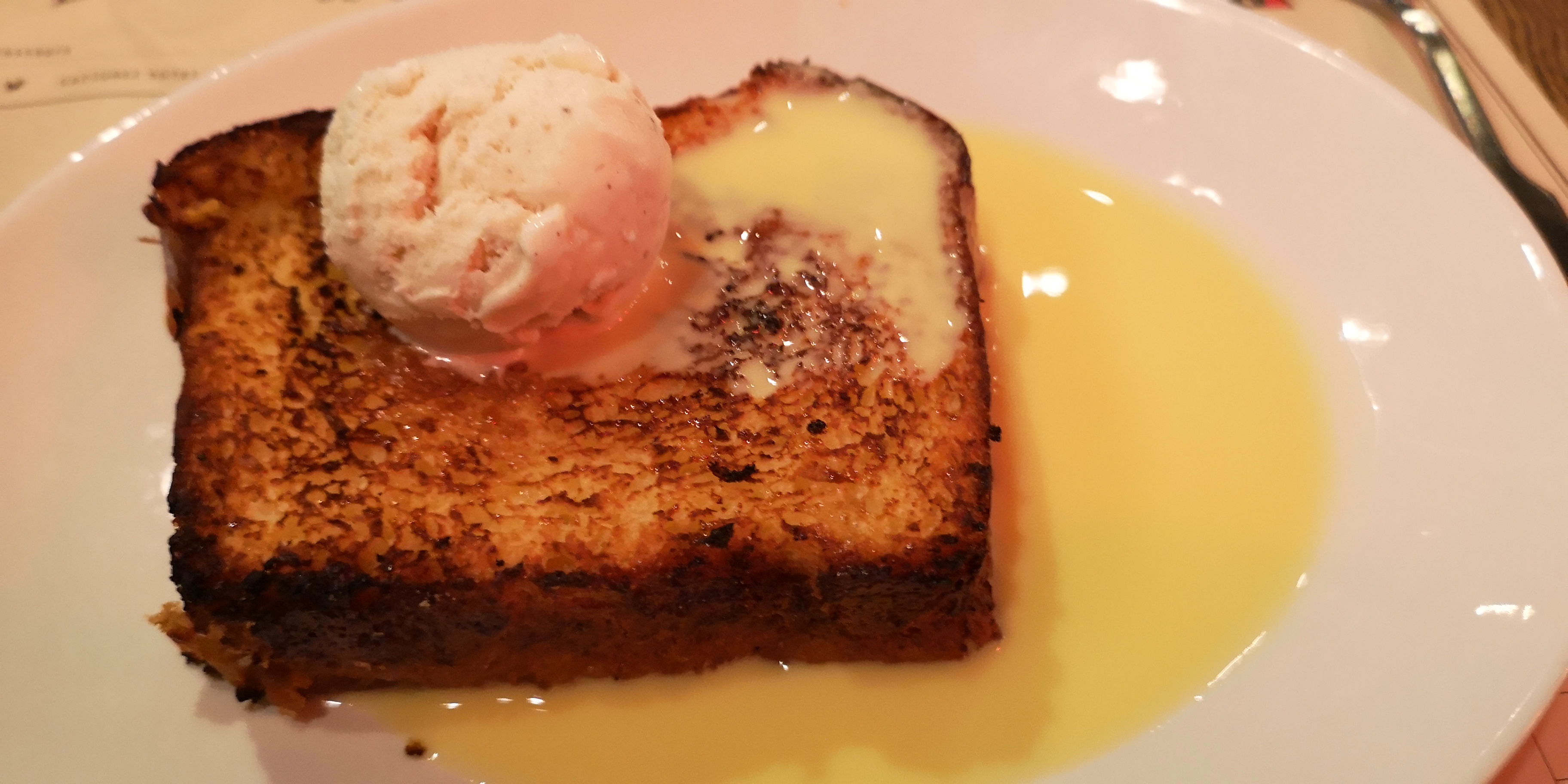 Plat SAUMON MI CUIT MI FUME, excellent Dessert CAFE LIEGEOIS, très déçue, servi dans un verre banal, glace ’’premier’’prix avec des glaçons d’eau, pas de coulis mais bonne chantilly. Serveur très aimable.