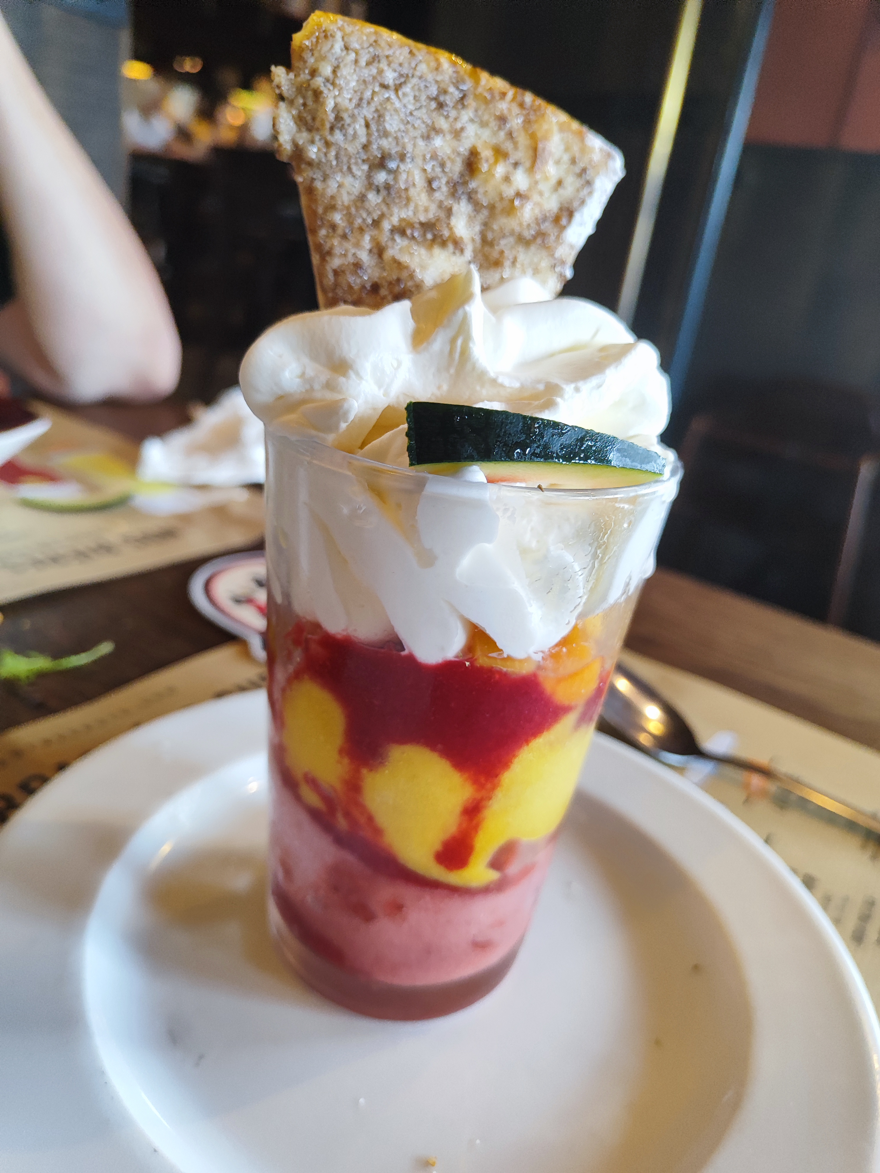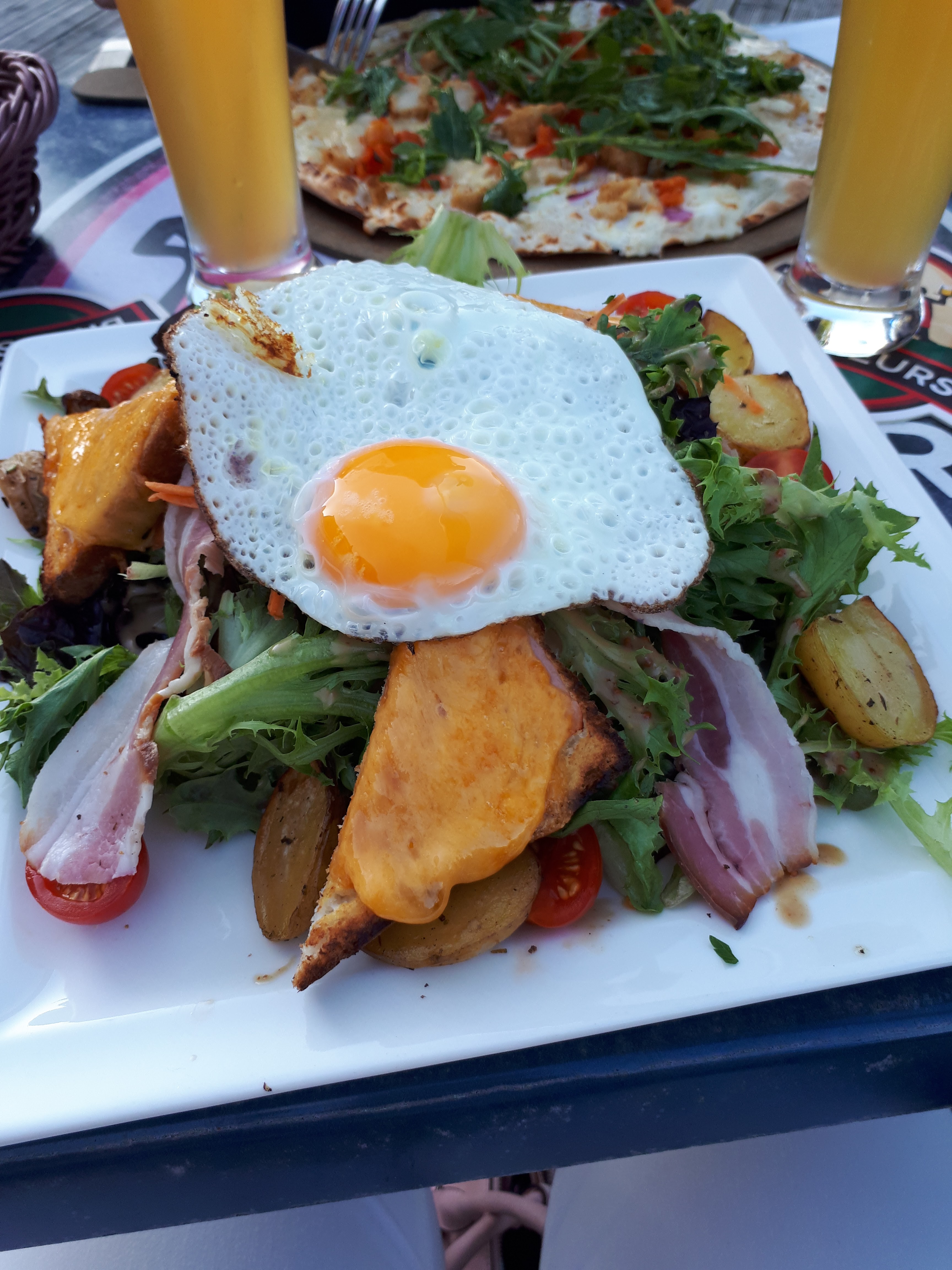 Bon accueil... sinon bof... le poulet de la salade césar a un goût de poisson donc sûrement cuit avec les fameux fish and chips, la sauce césar n'est pas terrible du tout, la pomme de terre pas assez cuite... Heureusement nous nous sommes rattrapé sur les desserts 👍🏼