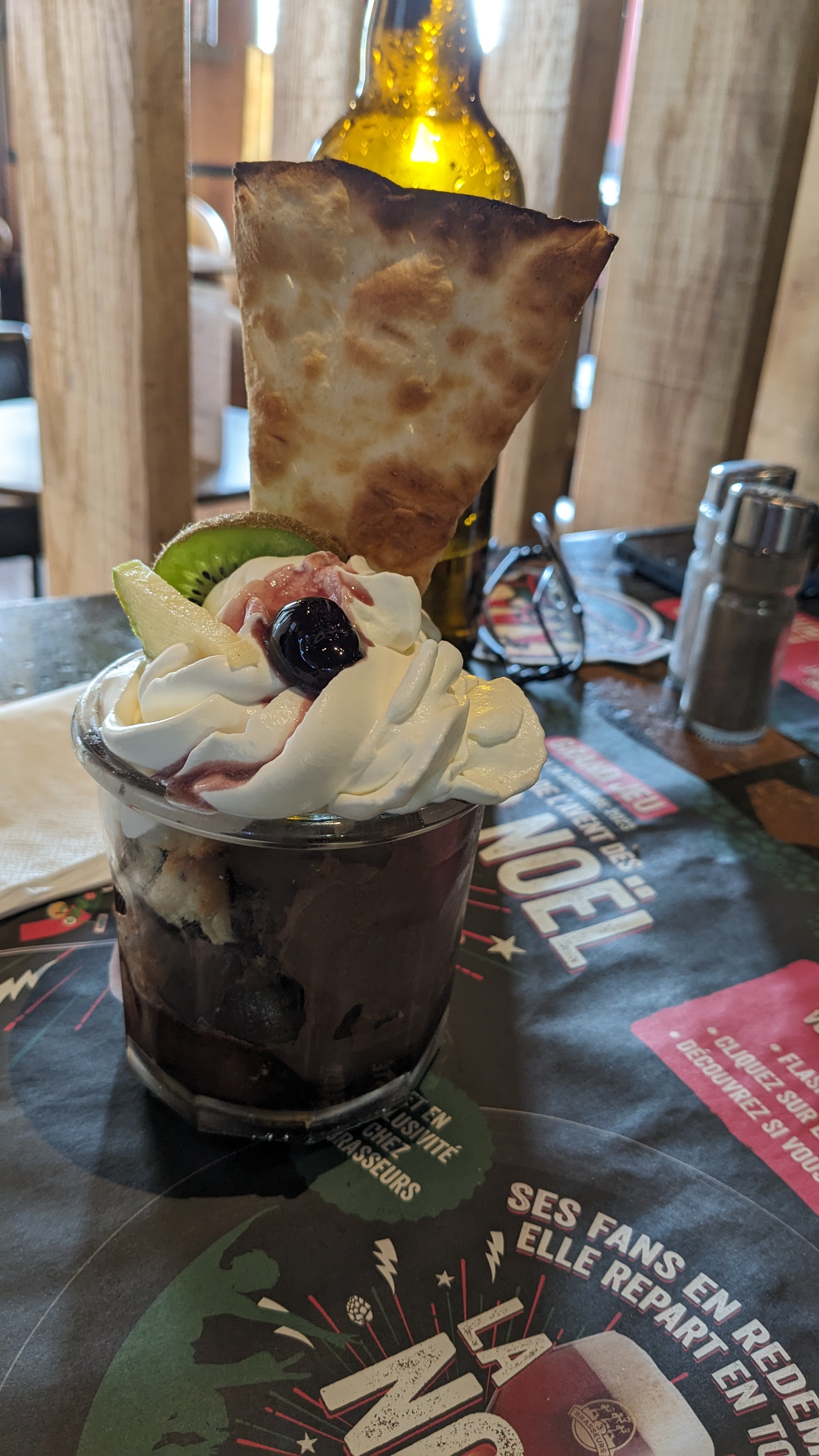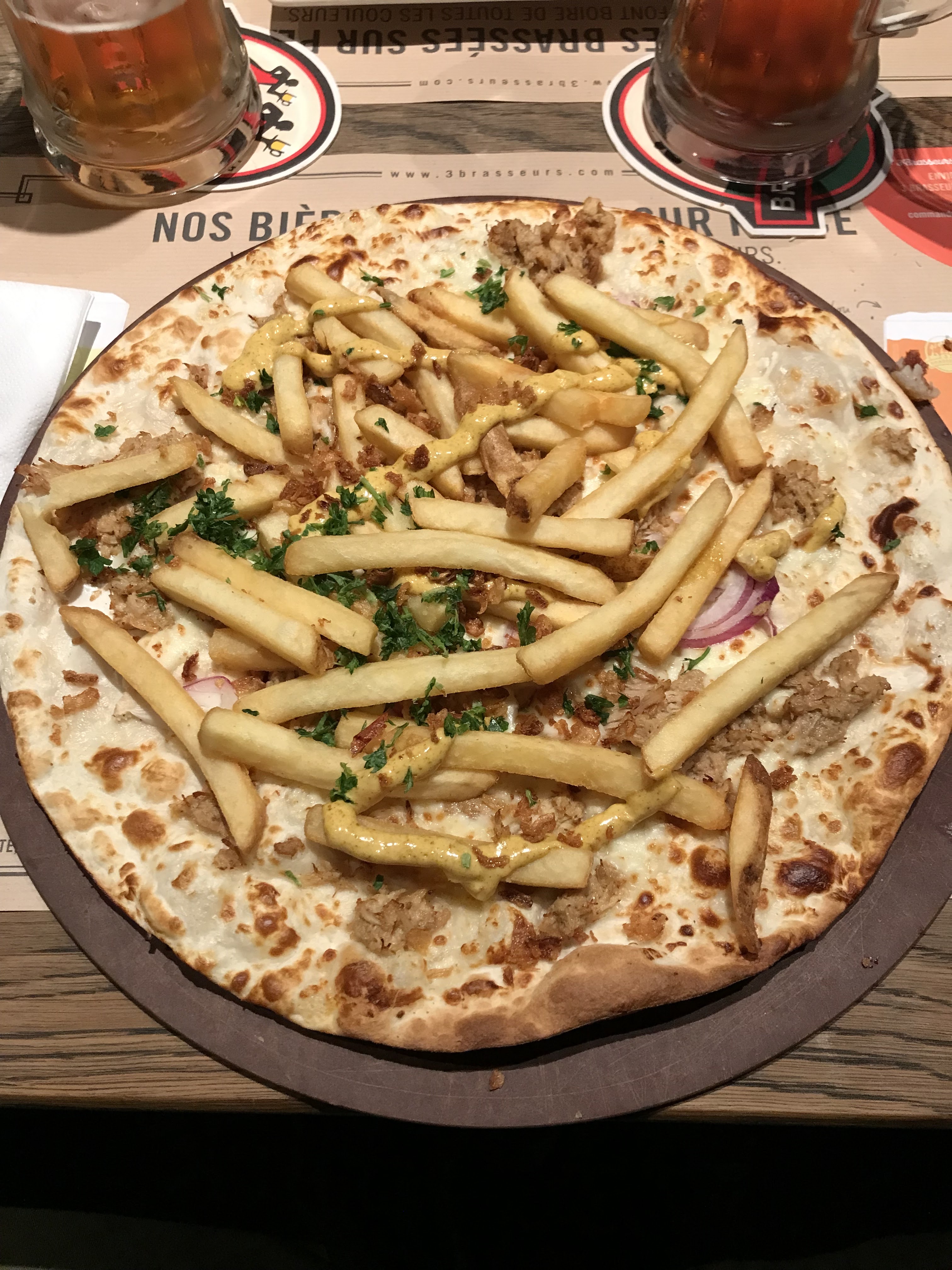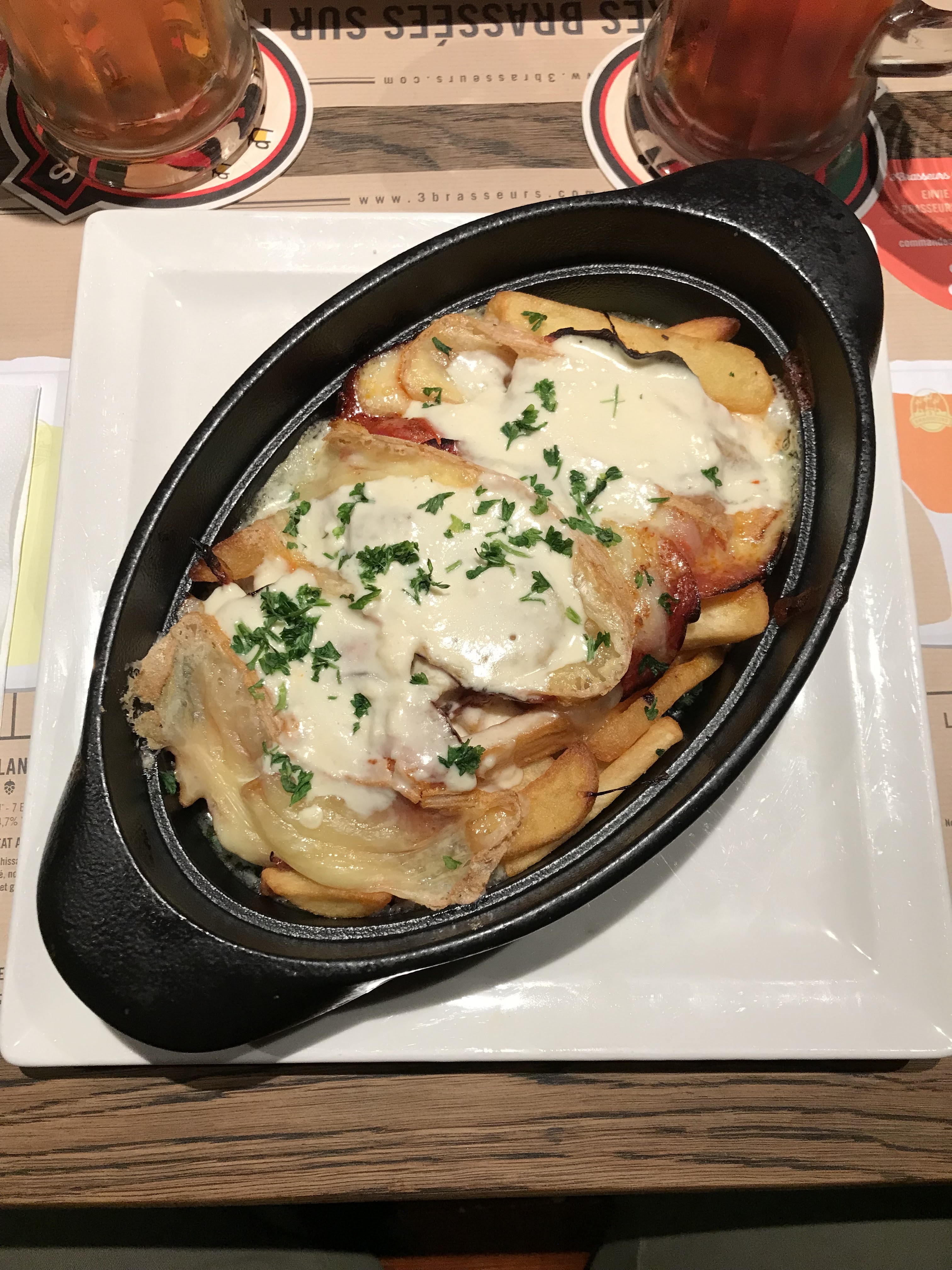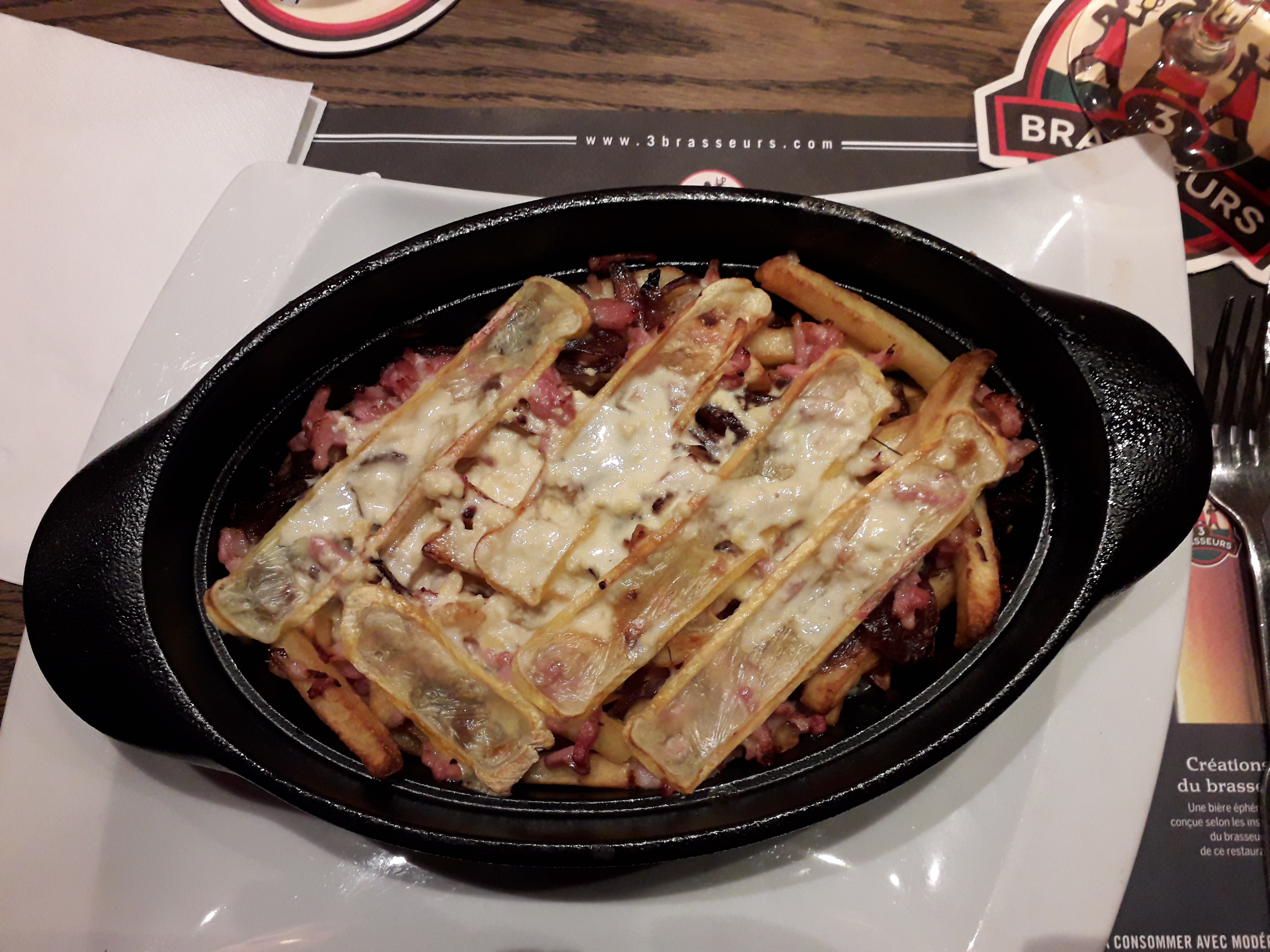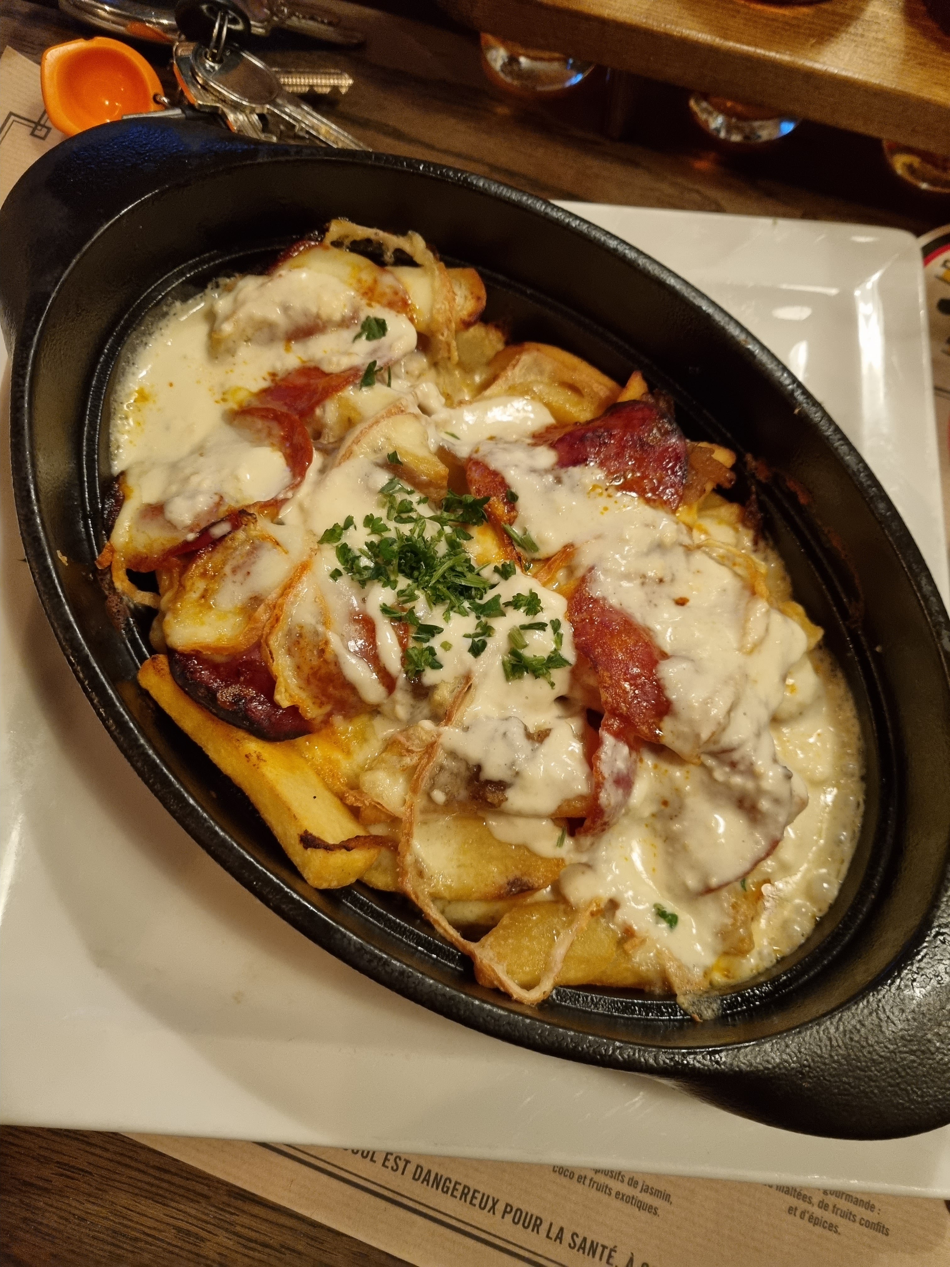 Bien que l’accueil, l’ambiance et le personnel soit des plus agréables nous venions principalement pour bien manger voilà donc pourquoi je ne peux mettre que 3 étoiles. Nous avons choisi des poutines, ravie de retrouver ce plat en France après avoir pu y goûter à Montréal.Malheureusement ça n’avait rien de commun à une poutine traditionnelle. Les plats étaient déjà bien trop gros, les frites, elles, durs car surcuits au four avec bien trop d’oignons marinés et de bœuf effiloché, c’était écœurant. Une poutine n’est pas tant sucré…voir quasi pas, c’est dommage. Celle des enfants n’était ni plus ni moins que des frites gratinées à l’emmental, ce qui était donc sec et difficile a manger. Je pense clairement que nous n’avons pas choisi le bon plat … mais du coup je ne suis pas certaine qu’il soit nécessaire à la carte.