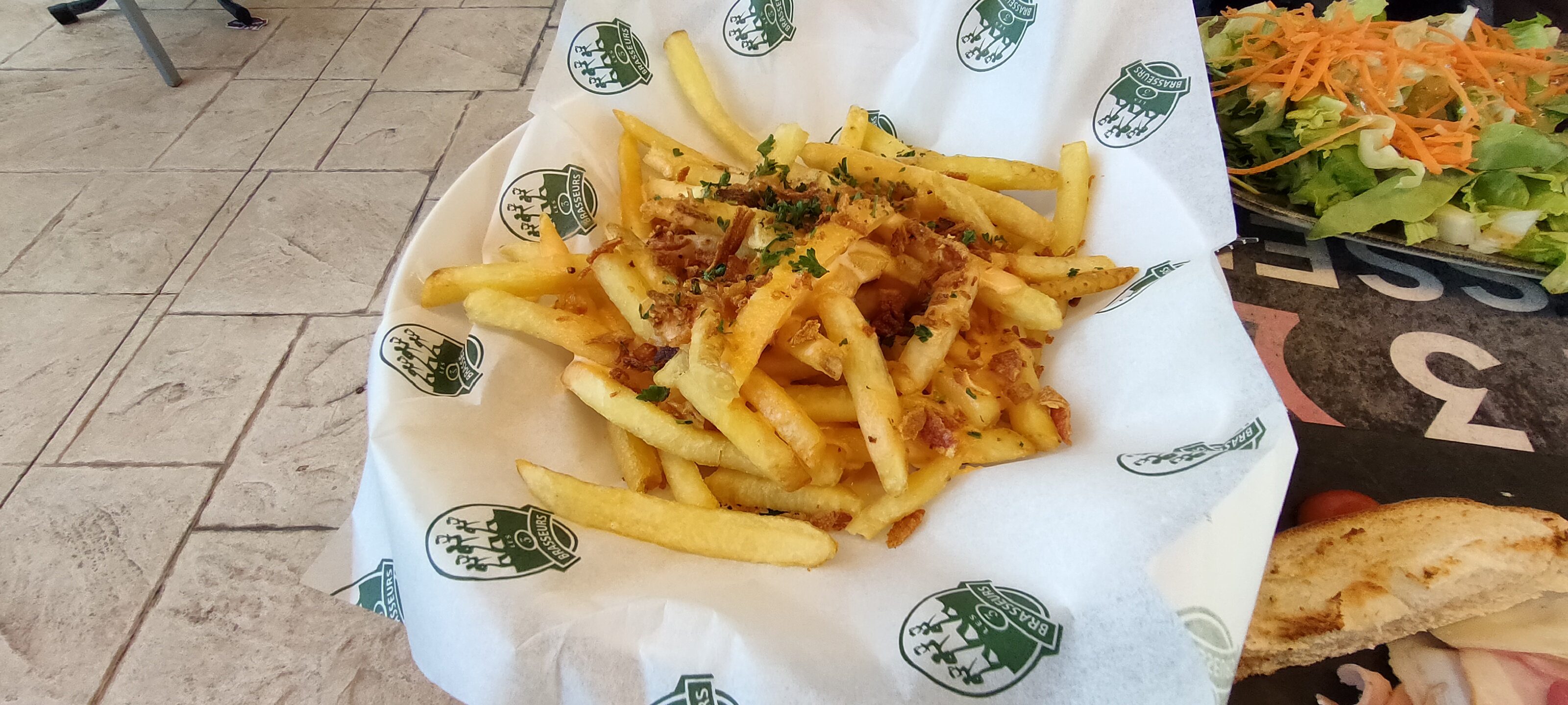 Je vous déconseille fortement la Poutine rapport qualité prix : 15,90 euros pour 200g de Frites dans une barquette de 8cm x15 cm avec dix très fines tranches de Chorizo et deux tranches de maroilles fondues dessus, je cherche encore la sauce au maroilles avec le persil, comme le descriptif du plat le précise, voyez si vous trouvez un brin de persil sur la photo ... Mail fait au gérant mais pas de retour après 15 jours, bref aucune considération pour les clients, ferai mieux de ne pas mettre ce plat en drive.