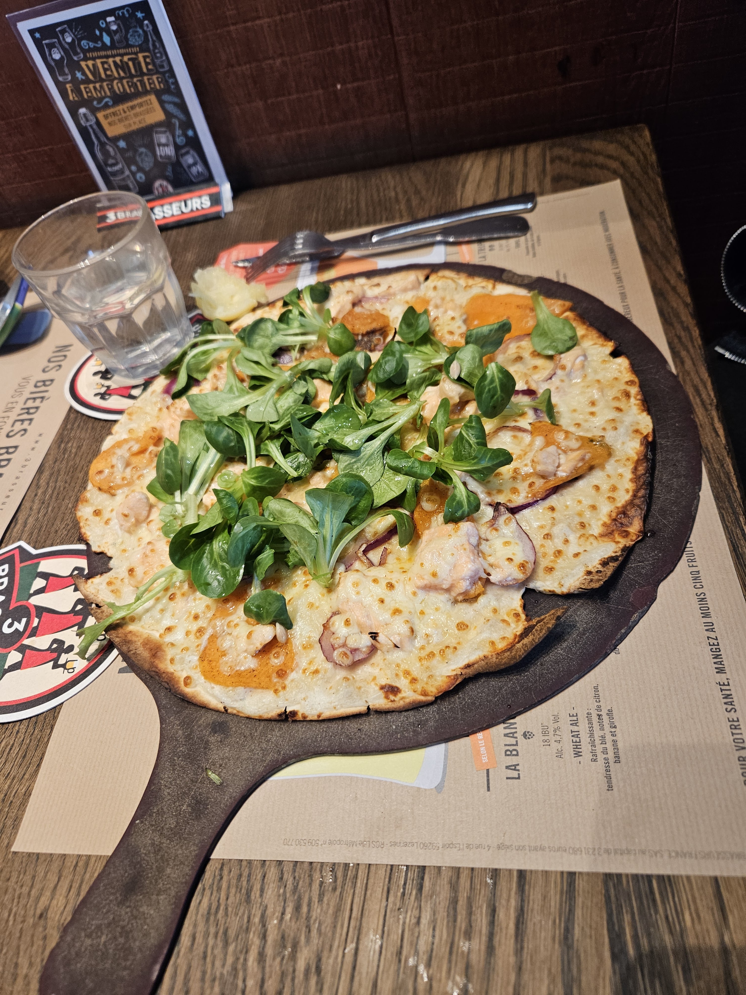 Ambiance très sympa suite a une réservation pour 14 personnes. Tout le monde a mangé chaud et tout le monde a trouvé ça bon. Jaime Beaucoup leur concept où on peut gouter un échantillon de plusieurs bières. Rapport qualité prix correct, Service sympathique, quoique l'humour du serveur peut ne pas passer avec certains, Rapport quantité prix plus que correct.