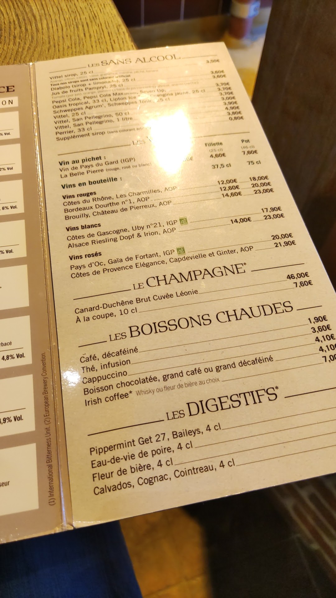 De plus en’ plus cher et du service en moins : nous avons pris l’apéritif, mojito et pina colada, même pas un peu de biscuit apéro: dommage un vendredi 7 juin, le soleil, la terrasse, bref il faut pas grand chose pour améliorer le tout…. Dommage dommage car en un mois la boisson à disparu des menus également, toujours plus cher et moins de service et quantité, bref …