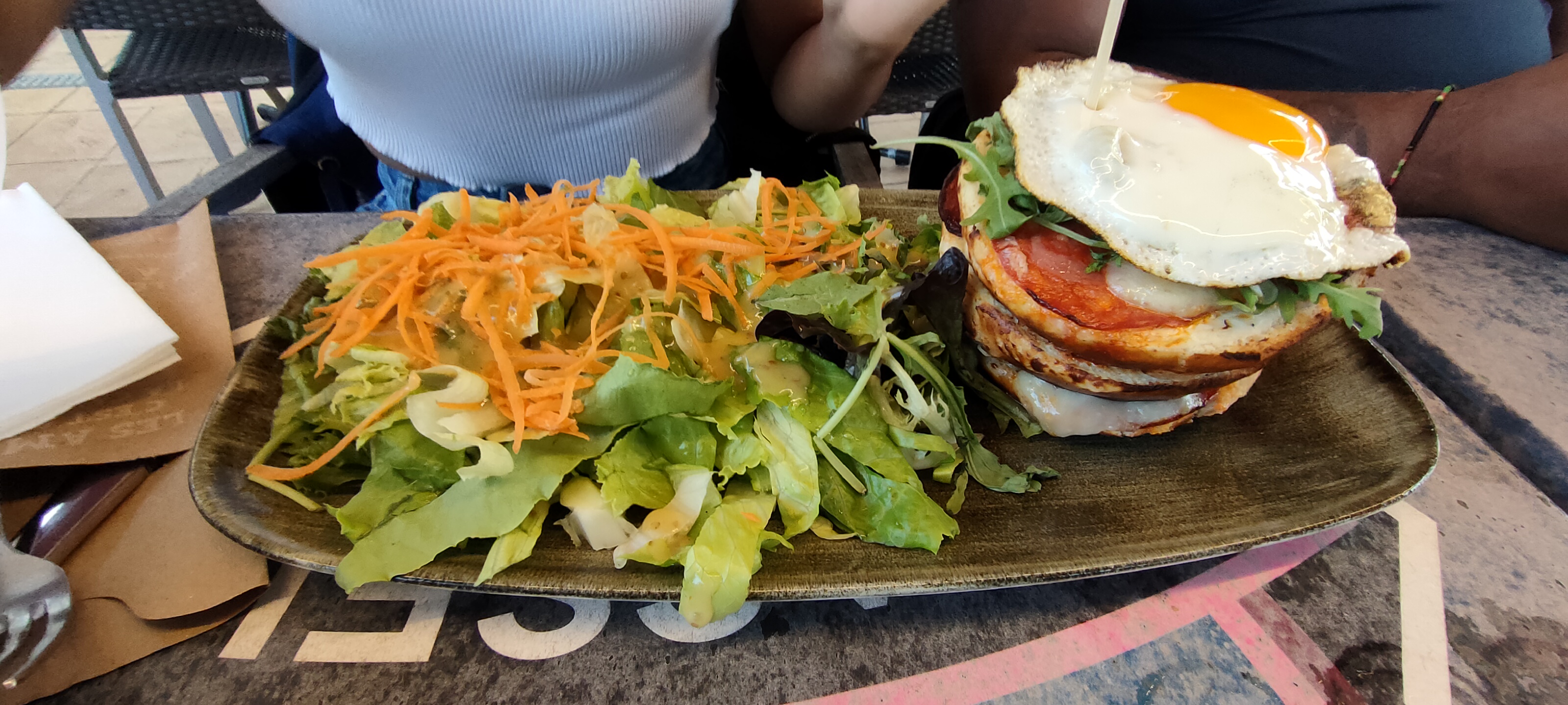Nous avons eu une table dehors c'était parfait le repas était très copieux ,le service très rapide et les serveurs sympa ,bravo👍