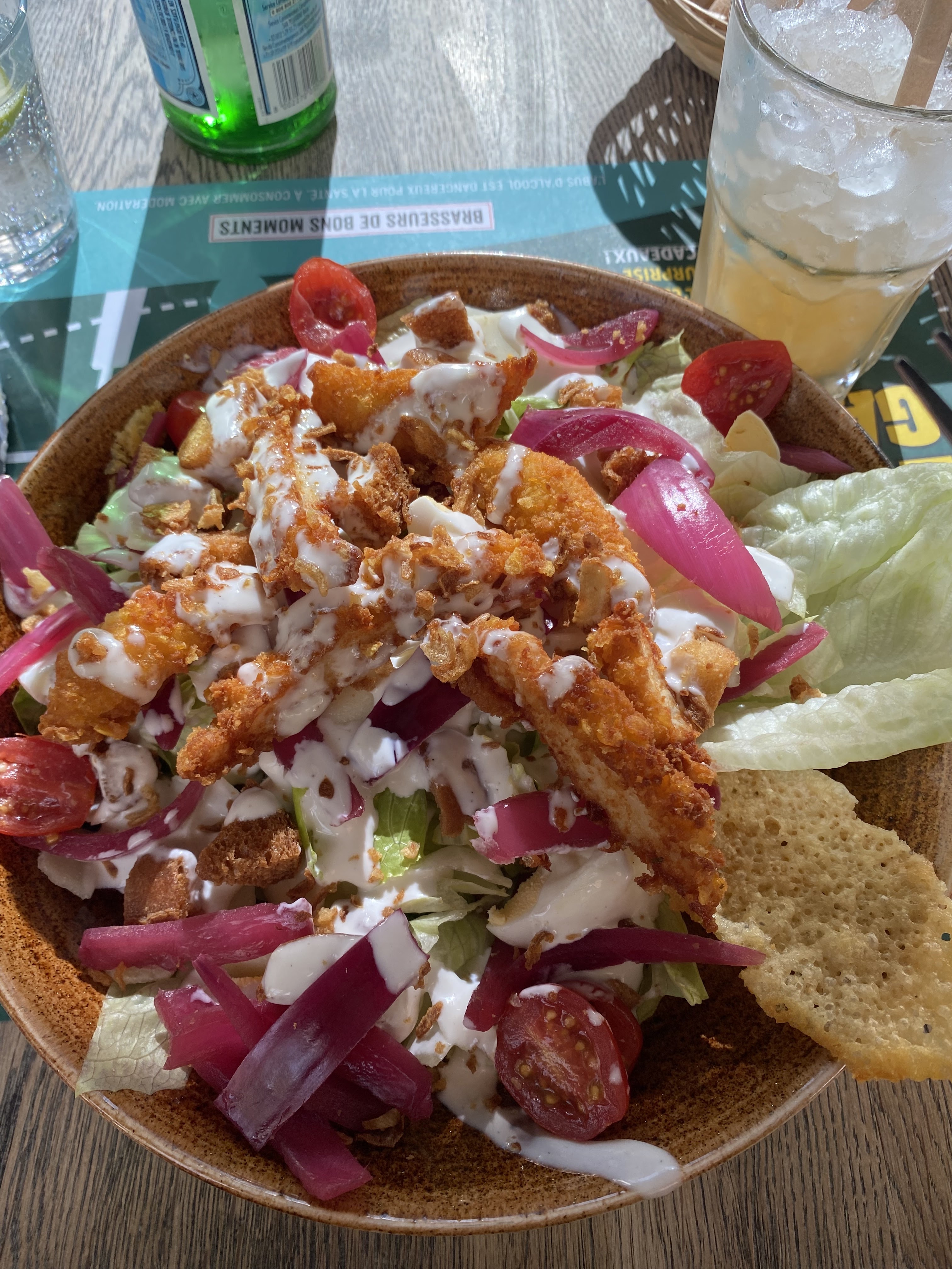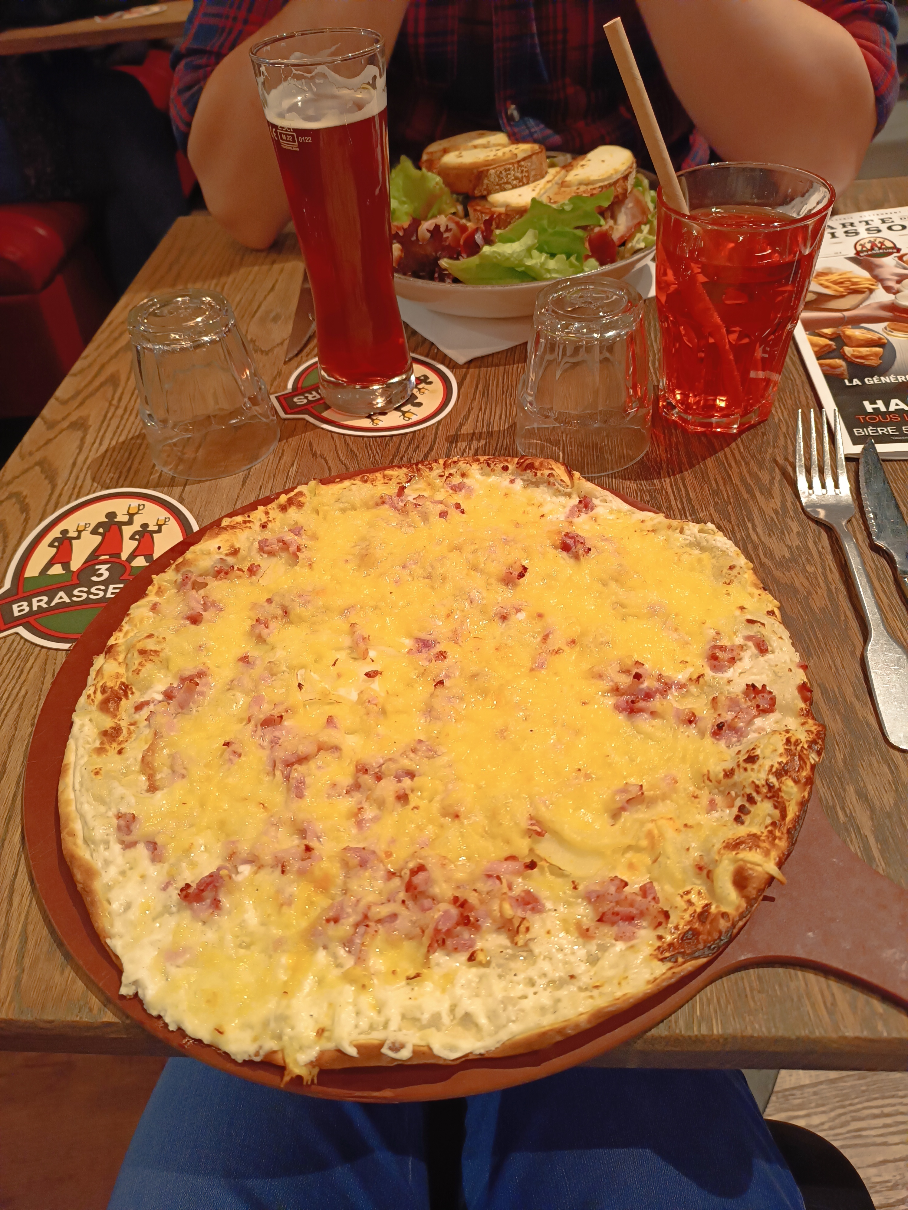 Restaurant les 3 Brasseurs de Dijon Toison d'Or se situe au Rez de chaussée du centre commercial vers l'aille avec tous les restaurants. 👬: Très bien accueilli par les serveurs qui nous ont rapidement placé malgré le monde présent à 13h (nous etions 2). 🥗: Nous avons pris 2 salades césars. La portion était correcte ainsi les quantités de poulets + 1 œuf. En dessert, une brioche perdue et une gauffre façon crème brûlé. La brioche aurait pu etre + imbibé pour être plus moelleuse. Pour la gaufre, la crème brûle était juste de la crème anglaise... sinon elle était très bonne, un dessert bien gourmand. 🍴: le restaurant possède plusieurs espaces. En salle, en verranda et en terrasse. Il est assez grand. 💶: Prix abordable 🤩🤤 JE RECOMMANDE