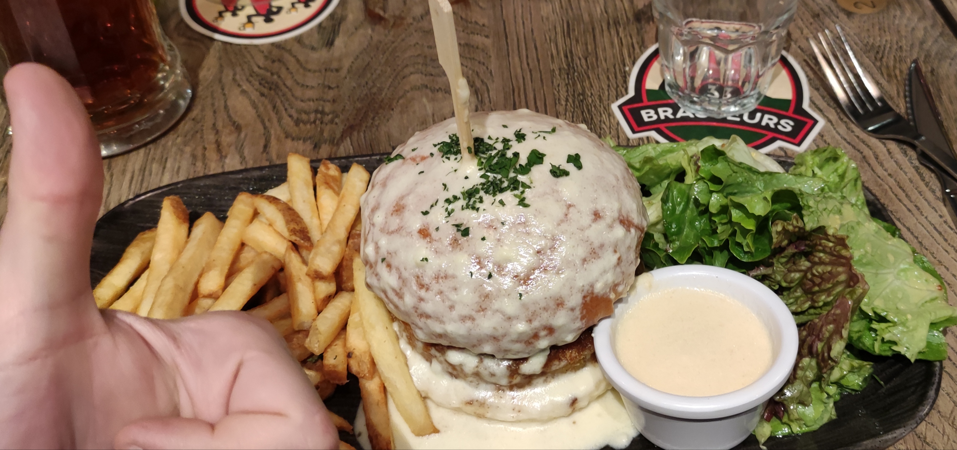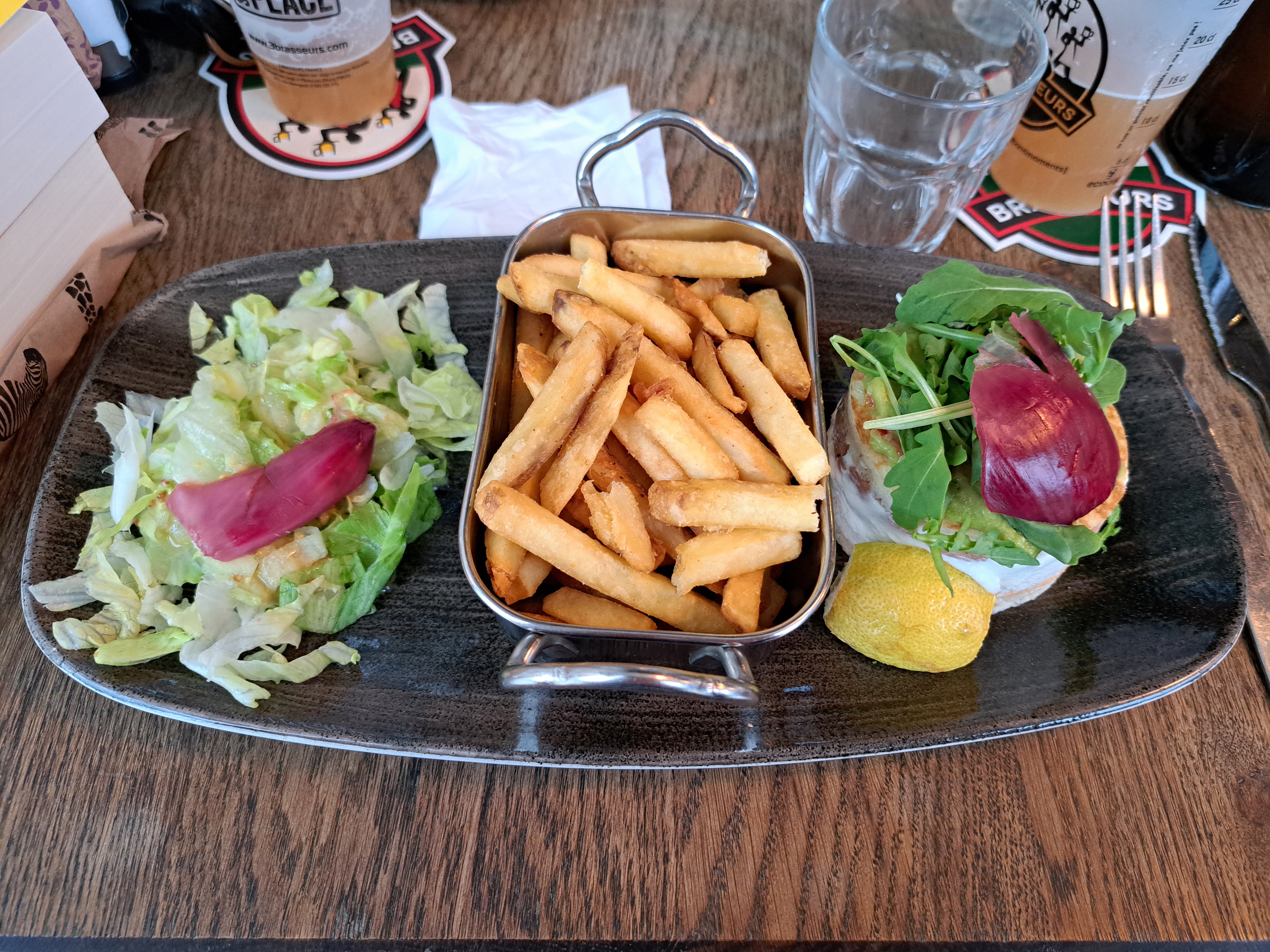 Nous avons déjeuné tardivement cette après-midi et nous avons été très bien reçu. La nourriture était très bonne, les bières goûteuses et Maelisse qui s’est occupée de nous était au petit soin.