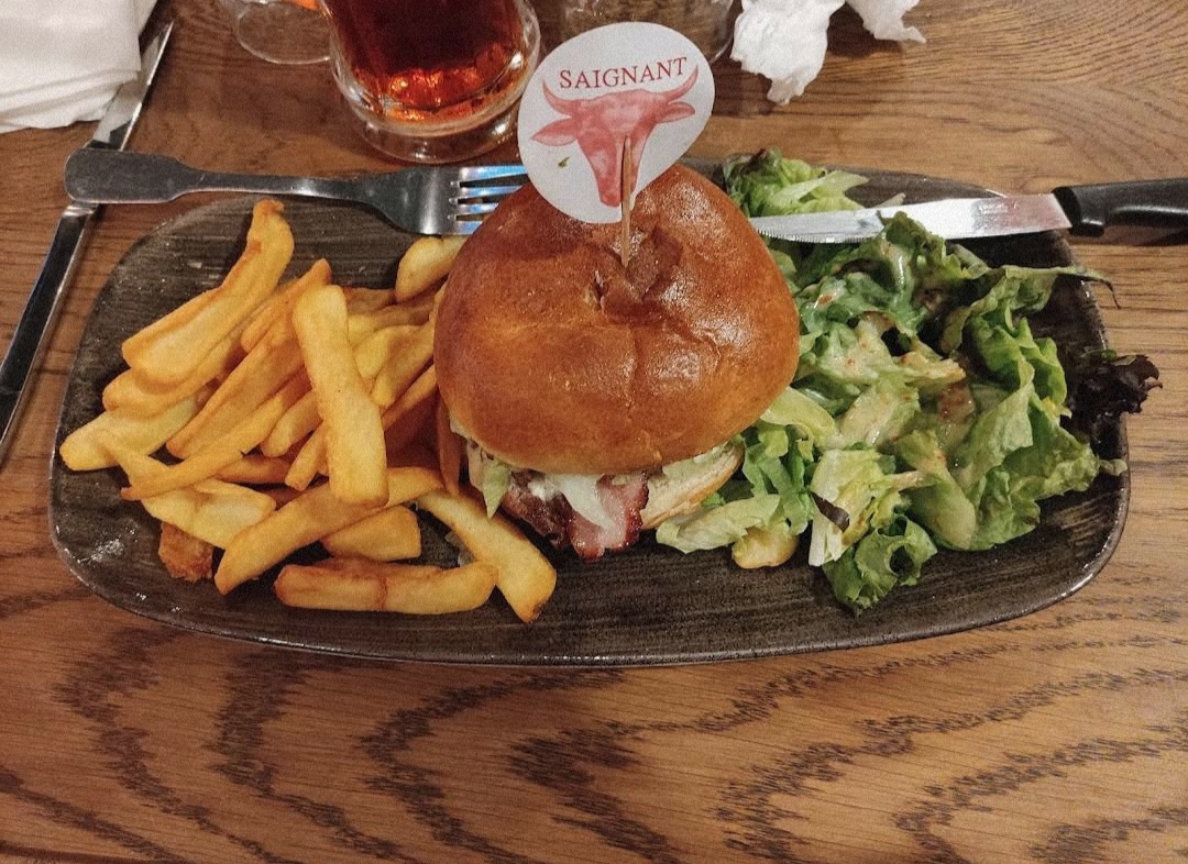 Cuisine très très moyenne. Hamburgers froids d'une part et l'hamburger brie et porc à déconseiller. La viande n'était pas bonne du tout et indigeste. Le repas du midi fait du profit jusqu'au soir ! Le dessert assez cher 8,90 , une profiterole n'était pas une profiterole mais un gâteau avec 2 boules de vanille. Pas de sauce chocolat.A déconseiller. Serveur efficace et sympathique 😀 Nous n'y retournerons pas !