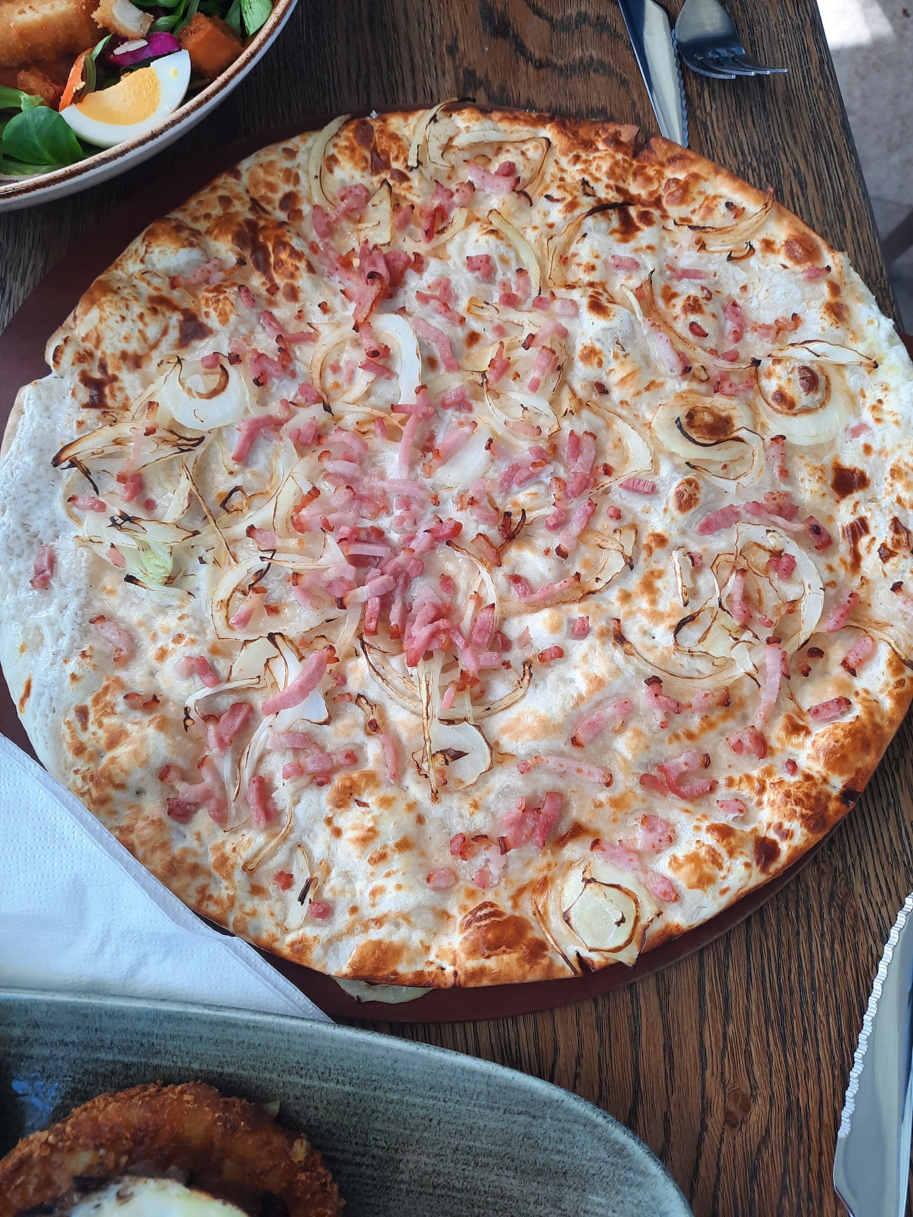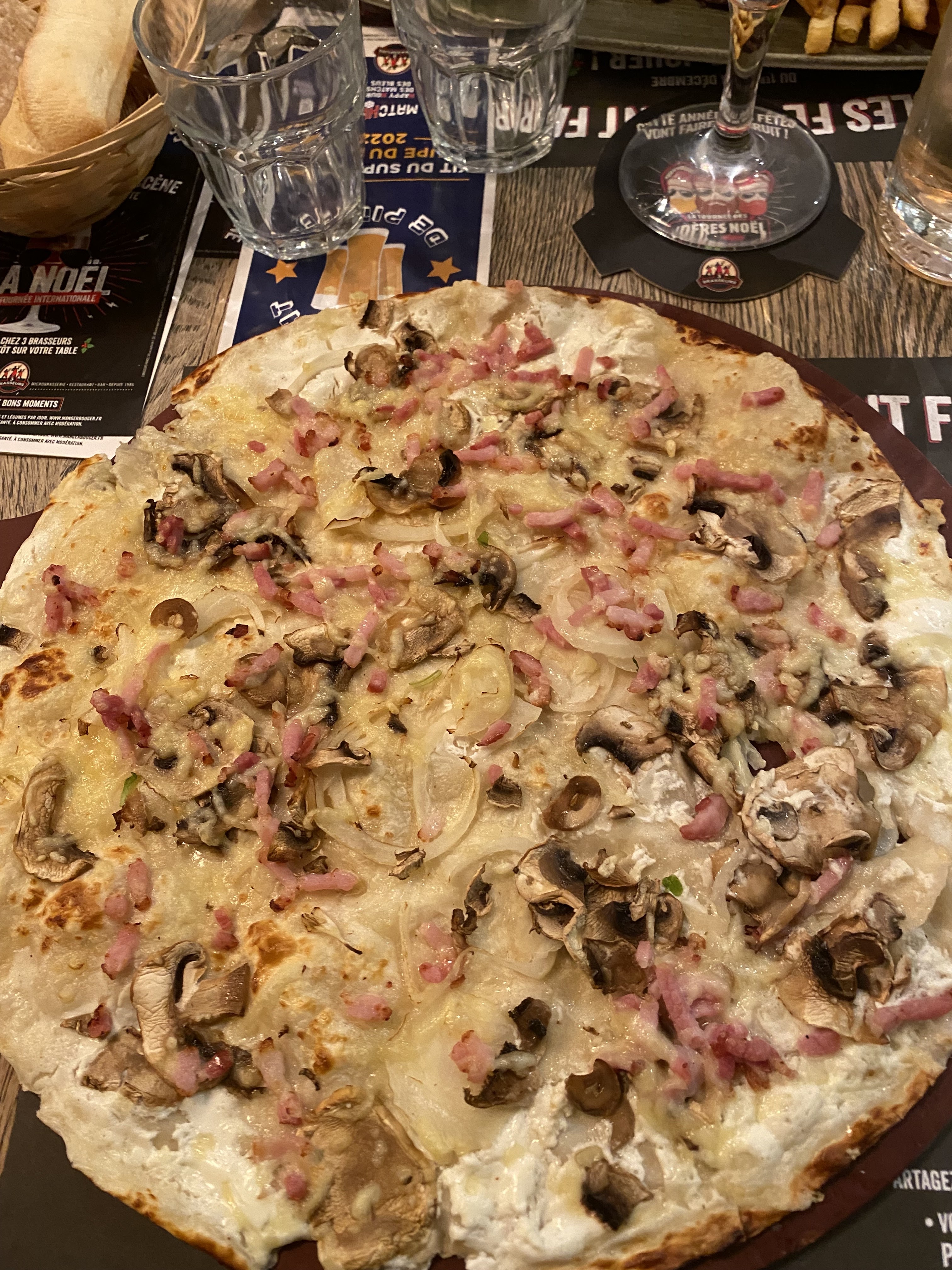 1 peu trop de moutarde s/ ma flammenküche à l'irlandaise. Mes accompagnateurs ont trouvé leur poutine bonne, copieuse ki tient bien o ventre