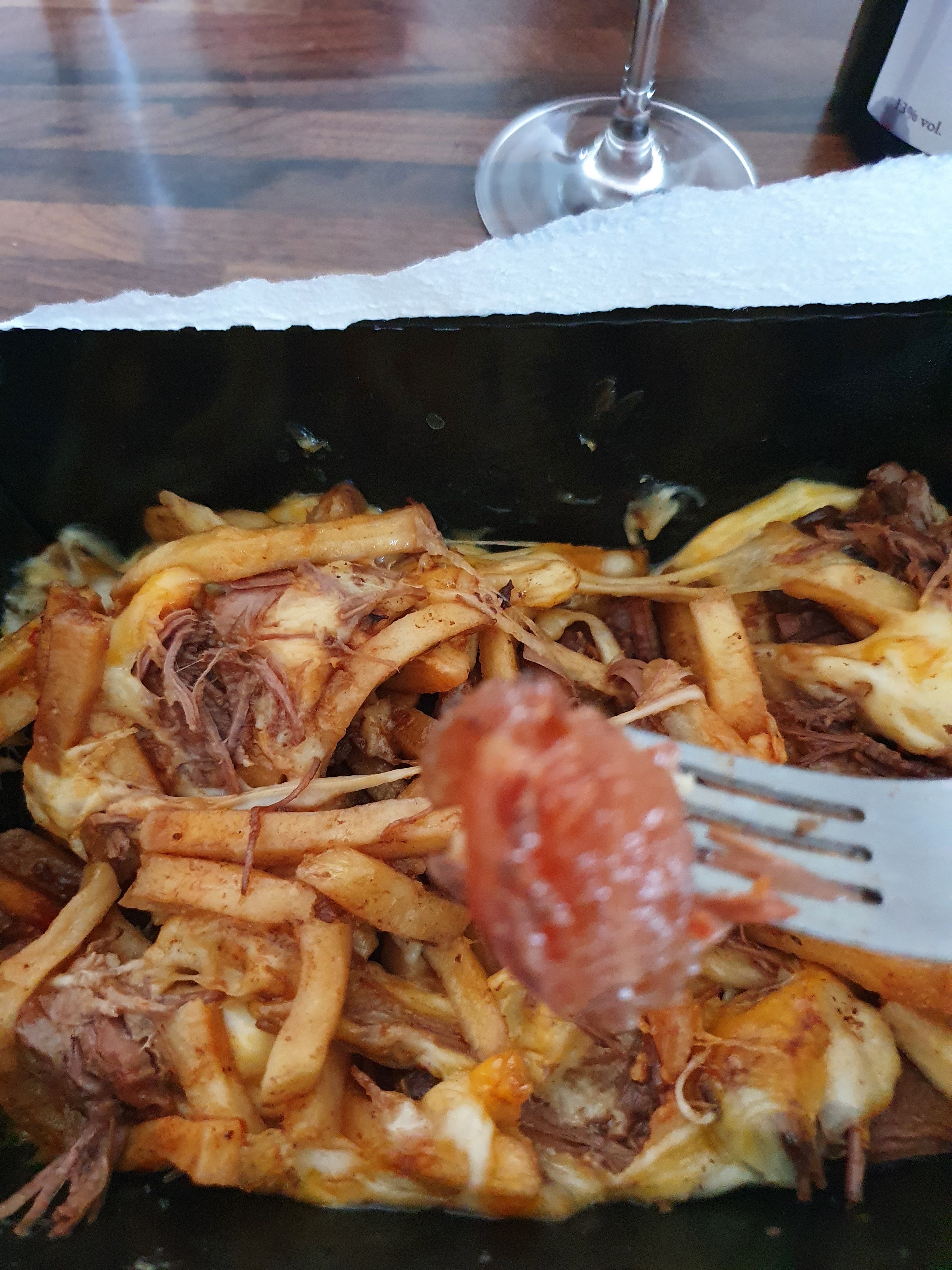 Ça ne vaut pas la poutine de Quetigny. Peu de sauce,peu de viande,des morceaux de gras. Beaucoup de frites ,plat très sec. Très déçue ...