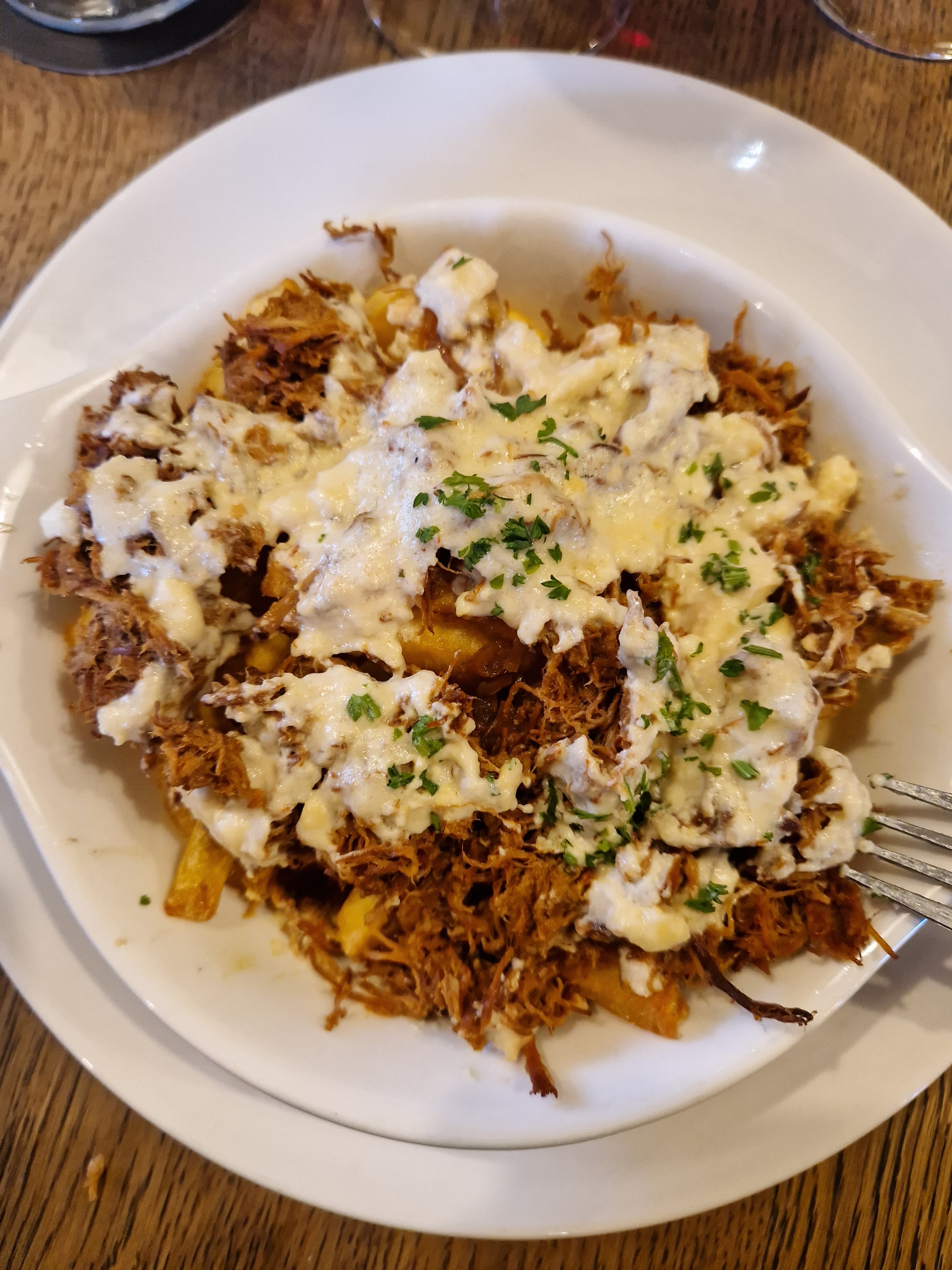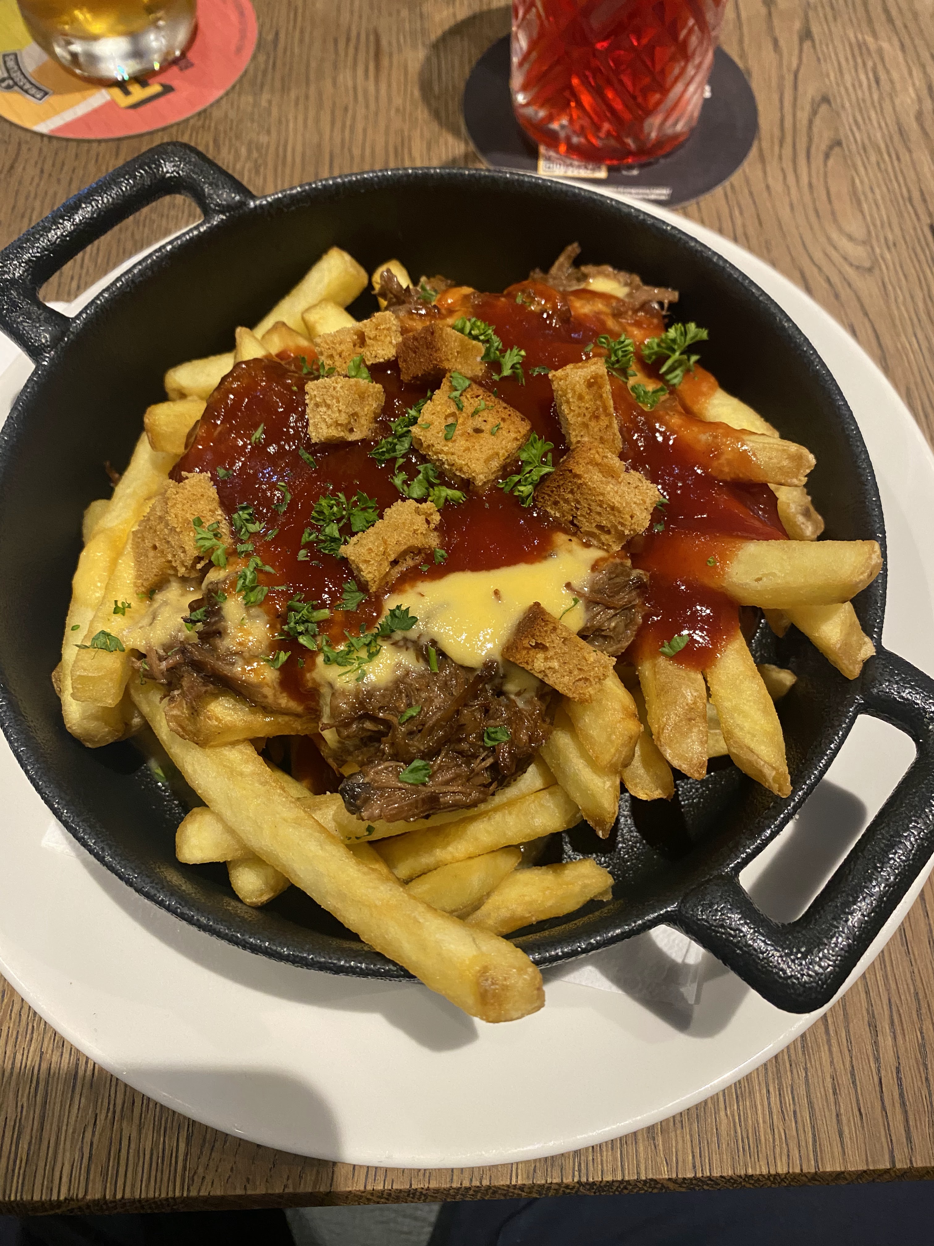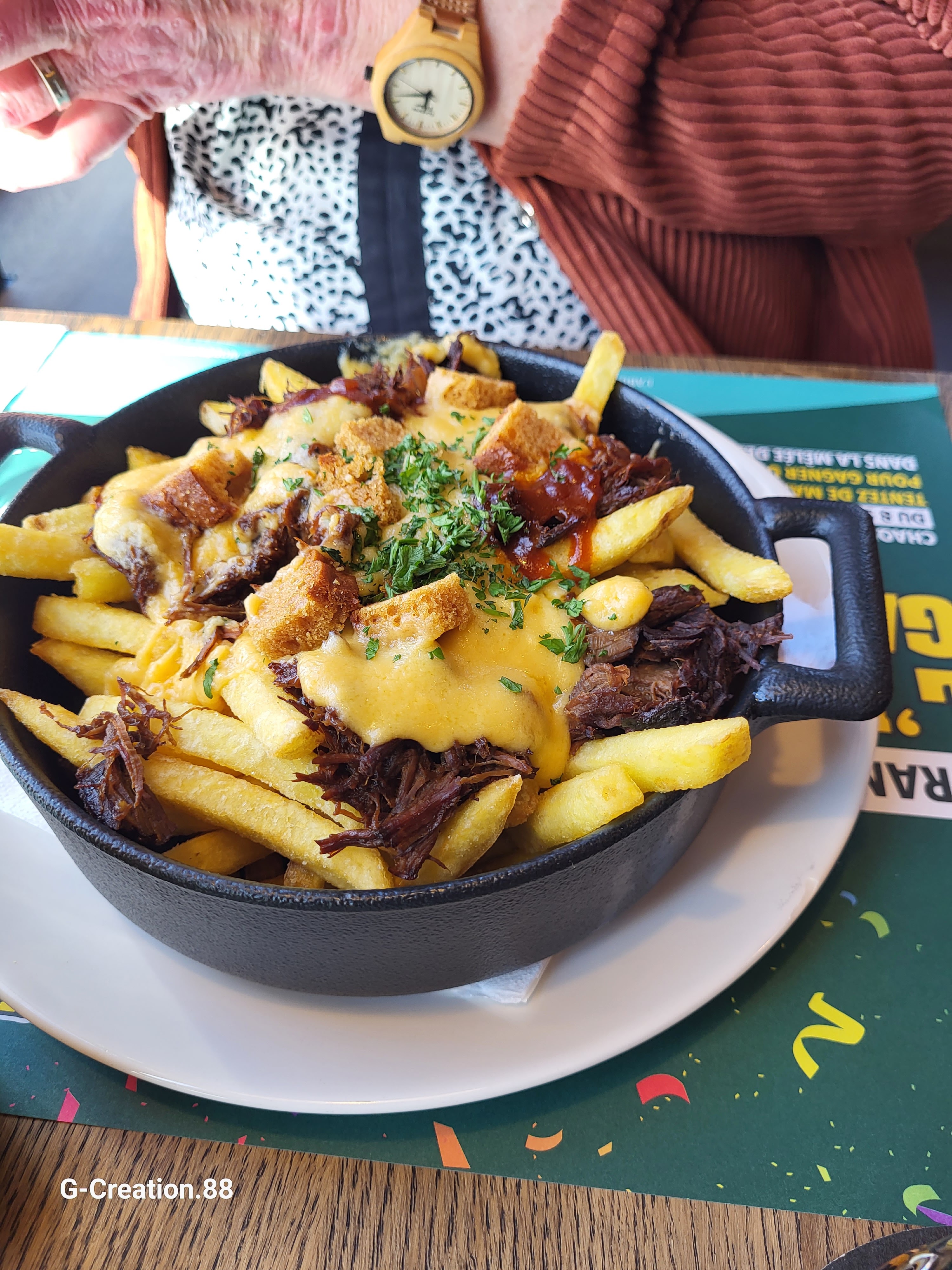 Une poutine du brasseur tiède, sans sauce cheddar qui a été oublié mais rectifié après une demande !... Bcp trop de frites pour peu de viande oignon pain d'épice. Plat arrivé au bout de 5 min après la commande 🤔...pour une 1ère c'est pas top et cela restera une dernière.