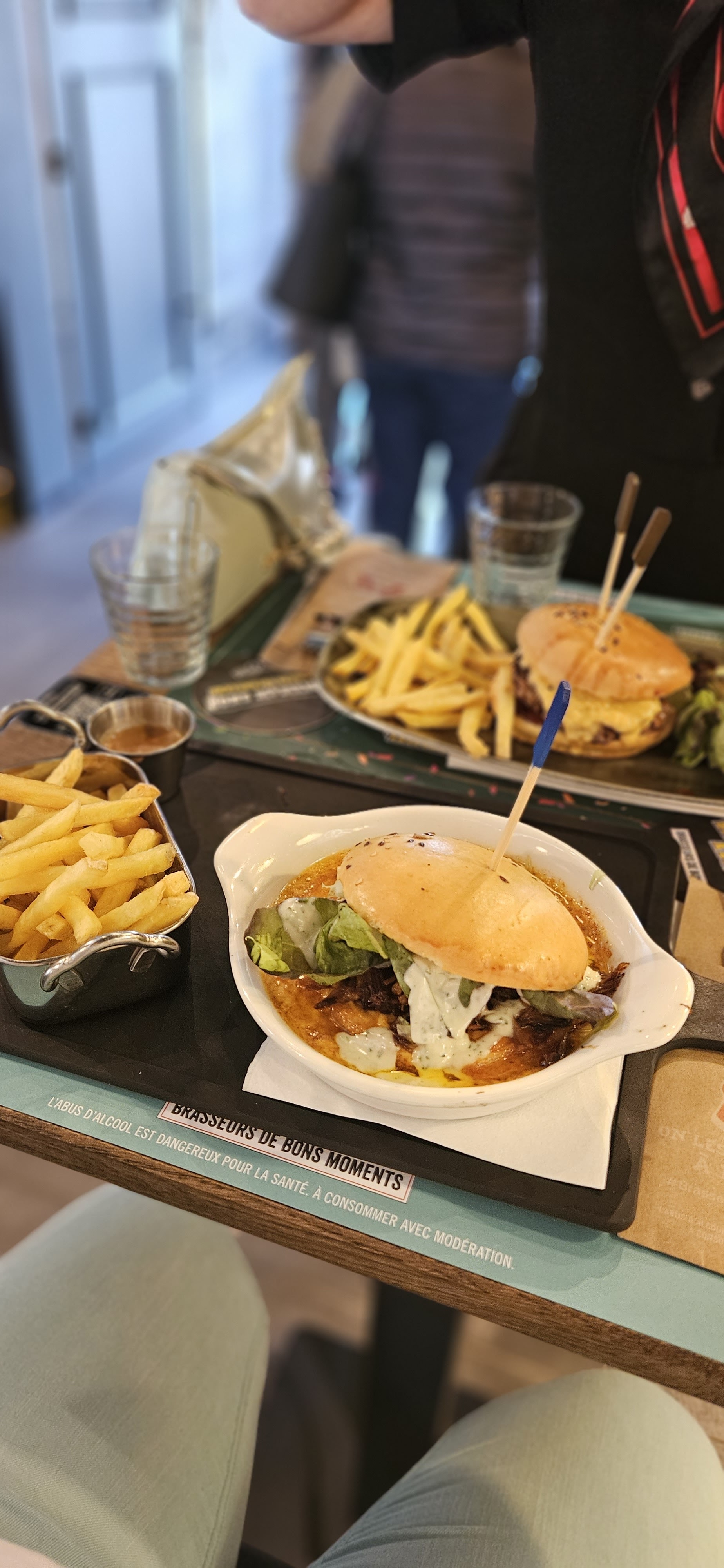 Les + 😍 La bière brassée sur place Les conseils avisés de la serveuse Elle connaît vraiment ses produits (bières) La palette de bières ( 4 galopins de différentes bières au choix. Ma préférée fruits rouges, celle du mois au gingembre, l'ambrée et une toute légère, blonde. Je les aime toutes en fait ! 😀 Les - ☹️ Frites sèches, heureusement qu'il y avait la sauce au cheddar La flamme veggie aux légumes recouverte de fèves de soja, qui sont des féculents et ce n'était vraiment pas bon. On a laissé la moitié. Du coup pas de dessert. Pas de café. Conclusion : Endroit idéal pour boire une bonne bière mais ne pas y manger.