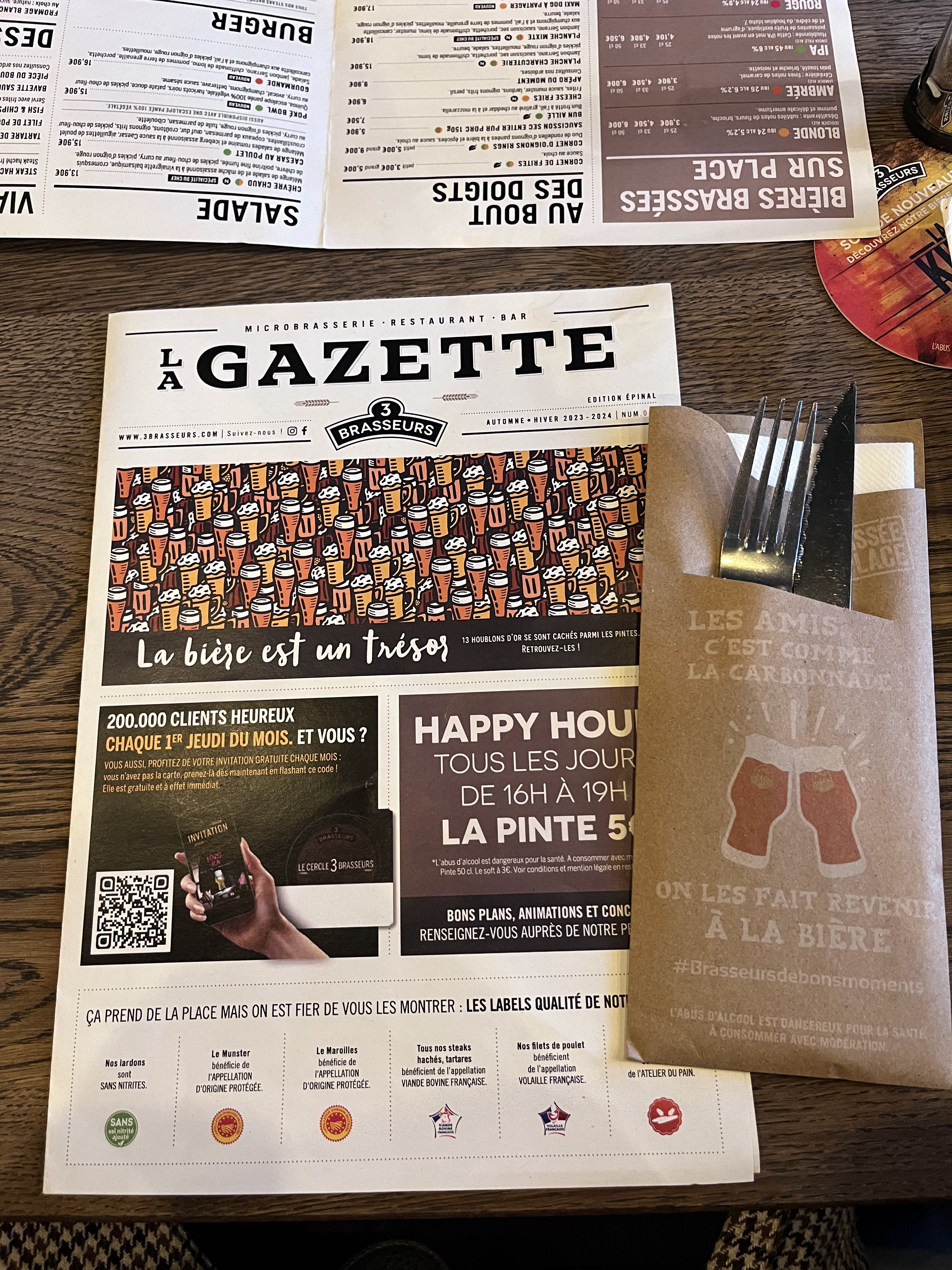 Le serveur (qu’on appellera Etienne, on ne connaît pas son prénom) était fort sympathique. La nourriture était à la hauteur de nos attentes. Les boissons à base de houblon (brassées sur place qu’ils disent) étaient de bonne qualité. Nous recommandons ! PS : ne vous abonnez pas sur Facebook ils n’offrent pas le digestif…😉