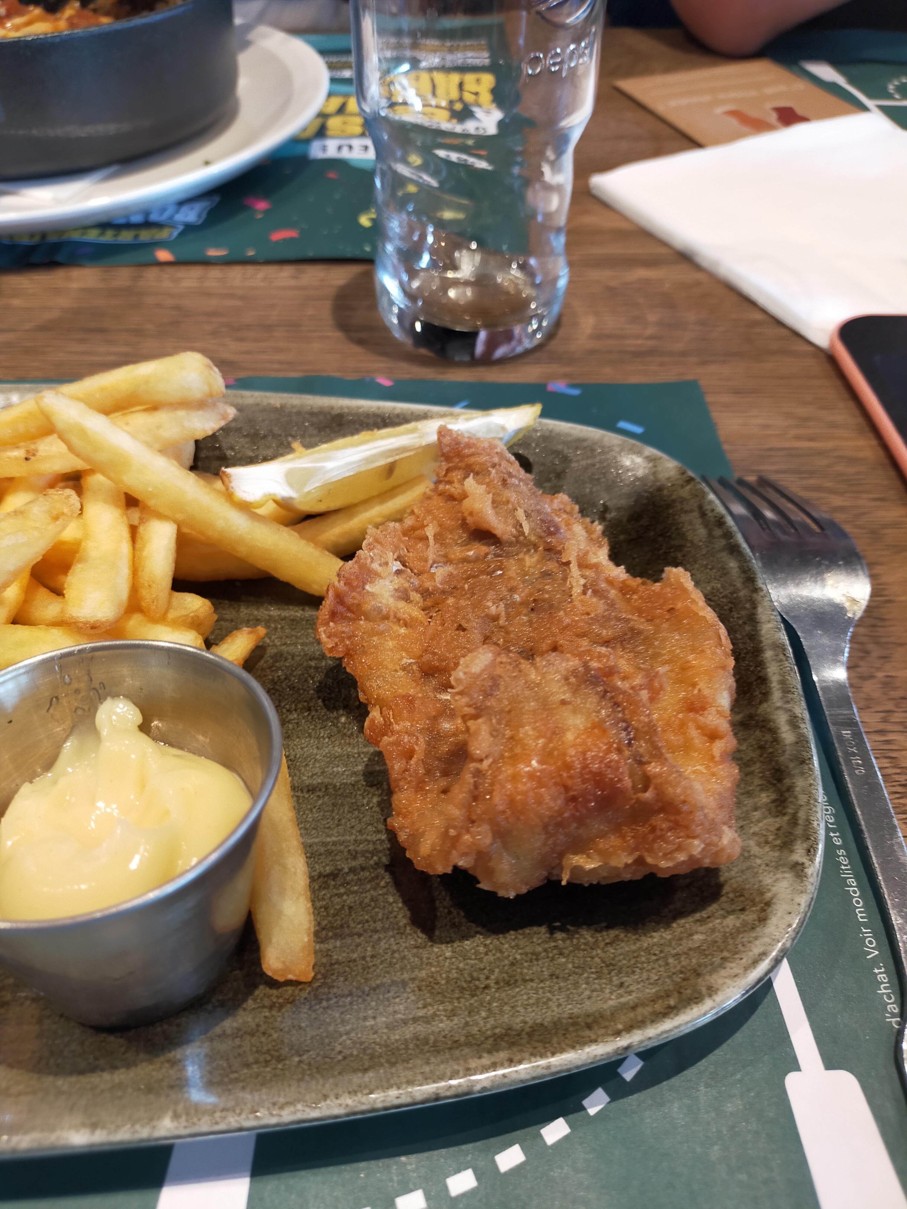 Plus 1h30 pour être servis. Puis tu commande un fish and chip's, ce que tu est sensé avoir et ce que tu as.