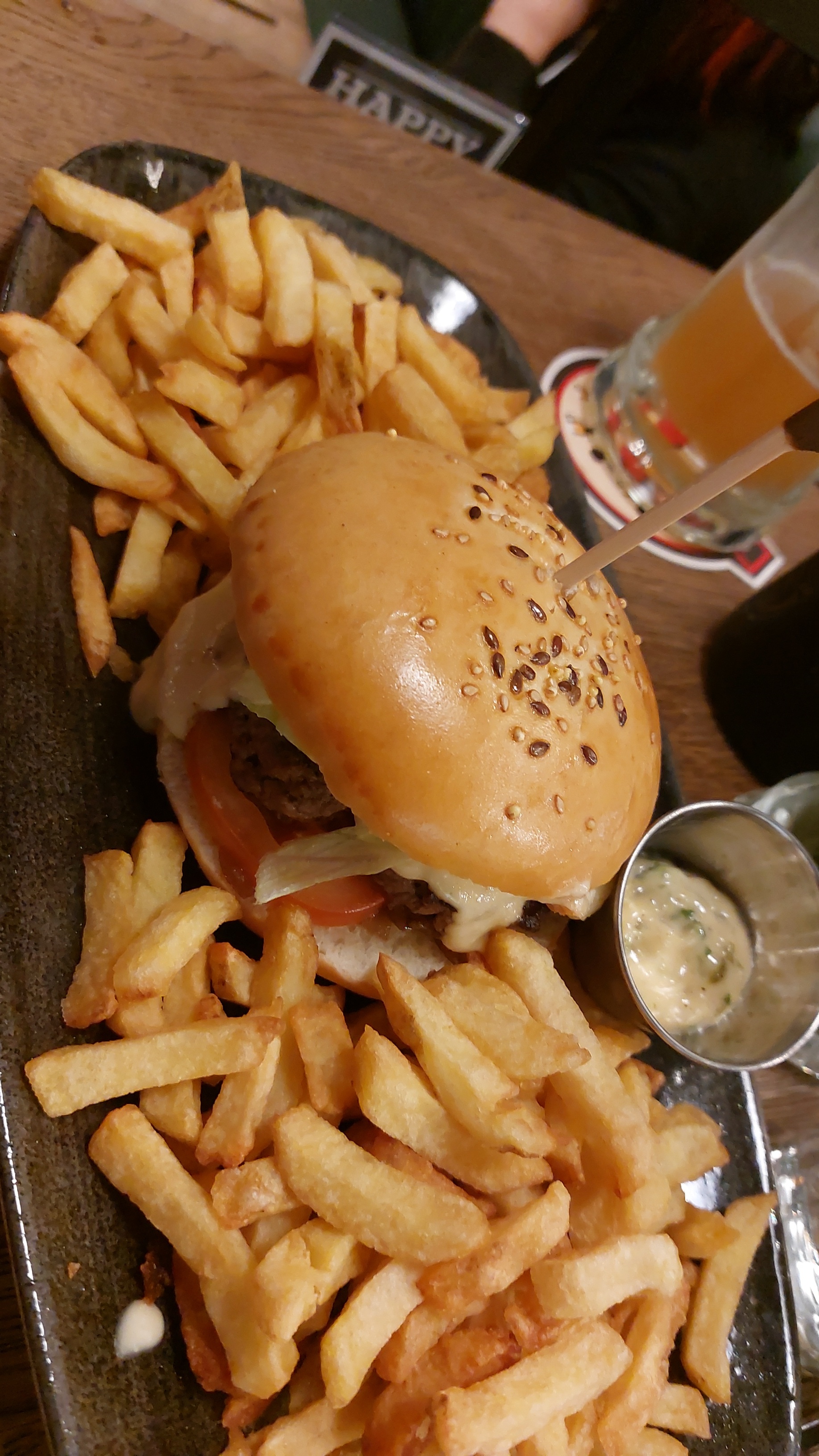 Jolie cadre, belle decoration. La bière au fruits rouge simplement délicieuse. Mon épouse à pris la salade bœuf mariné, bonne mais cela manquais légèrement de vinaigrette pour la salade. Quand a moi j'ai ai pris le burger chti mi, il était très bon et le maroilles était bien présent, je met 4 étoiles car les frites sont surgelés c'est dommage.