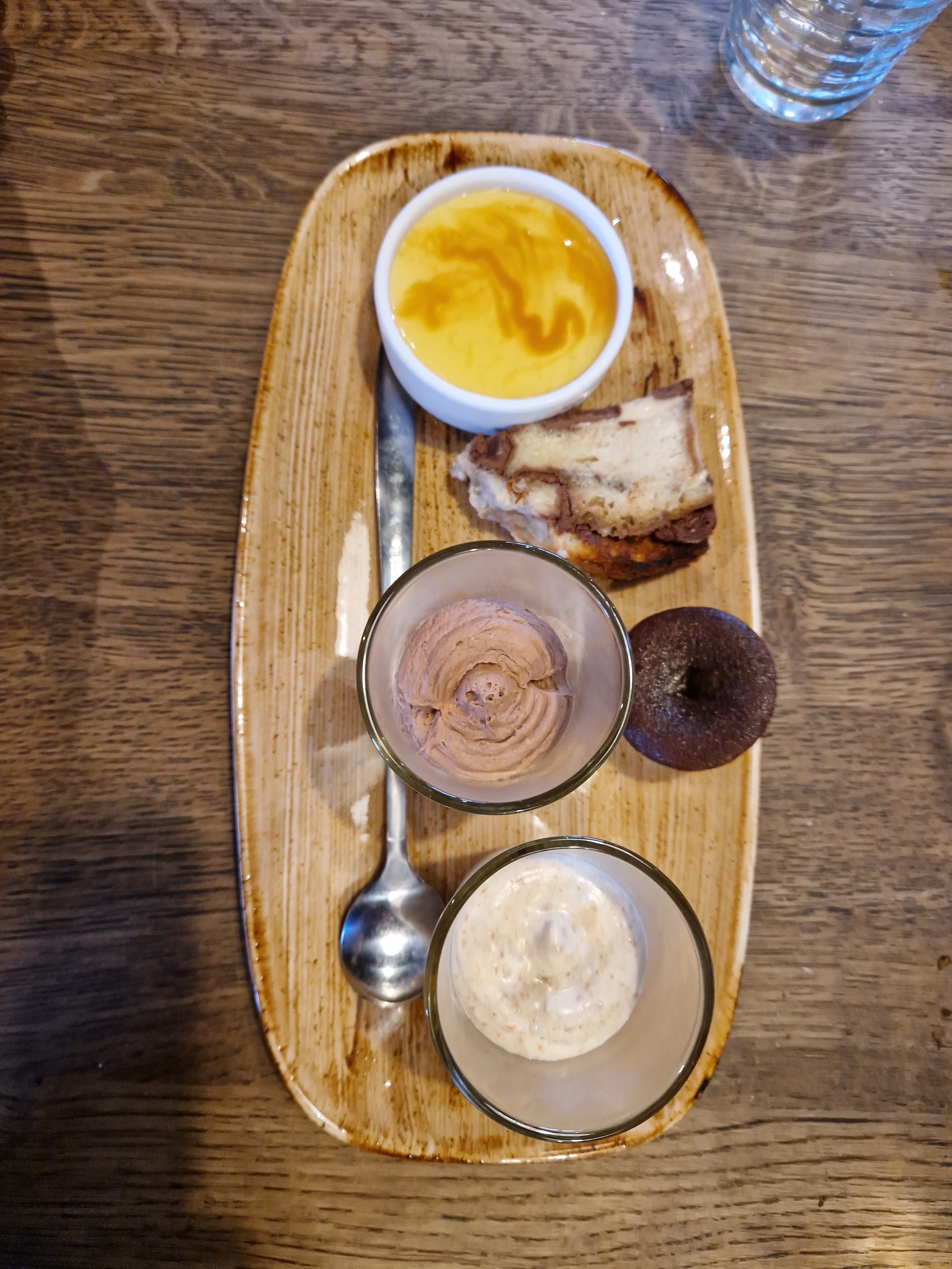Très mitigée,nous avions hâte de venir manger, malgré des avis pas très top. A notre arrivée, déçu par la prise de commande, pas la bonne planche pour l'apéritif, les plats étaient bons, le vin vraiment pas top... Et très déçue par le dessert... Café gourmand, moelleux au chocolat remplacer par un brownie aux noix, financier(je l'ai recraché),salade de fruits pas fraîche.... Mais serveuse sympa, rapidité du service.... Cependant pour le prix, nous ne reviendrons pas