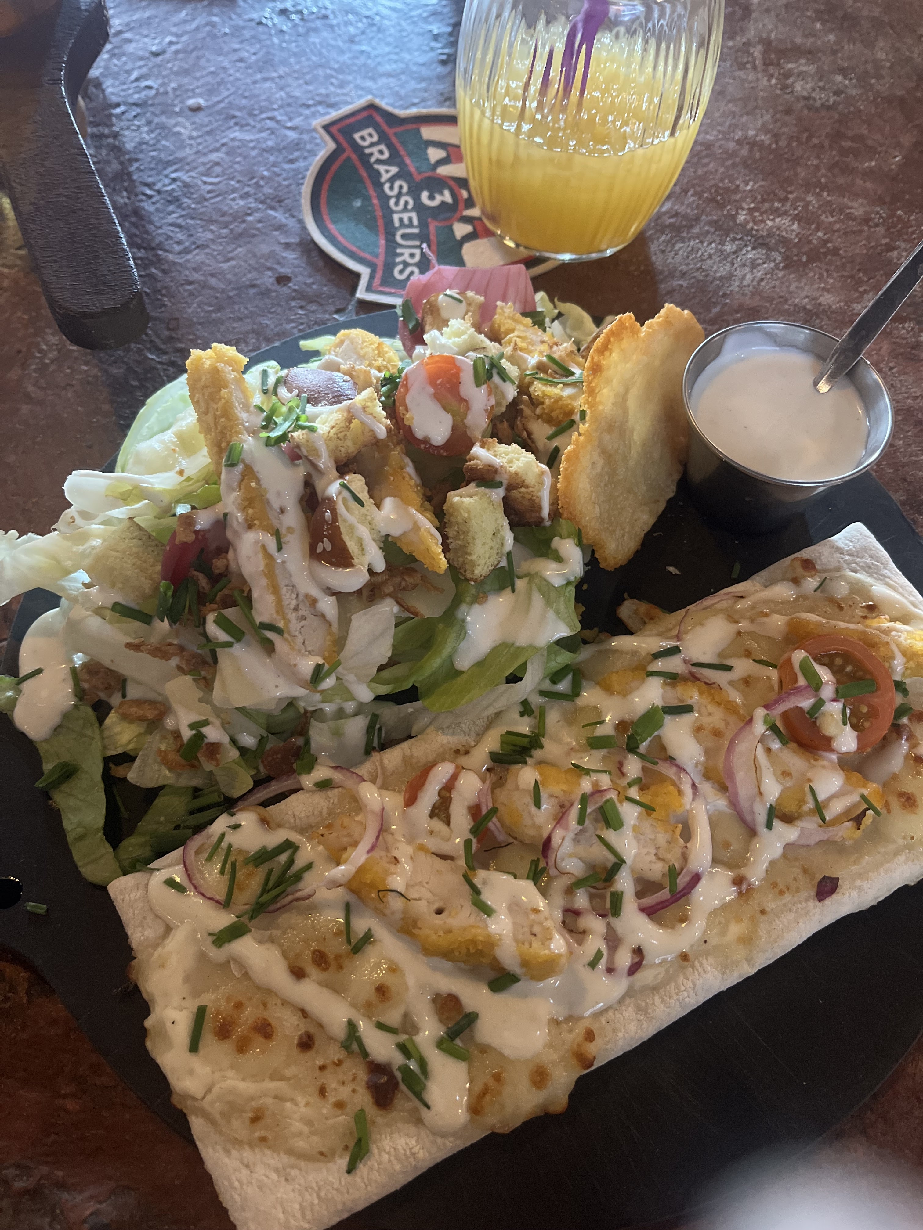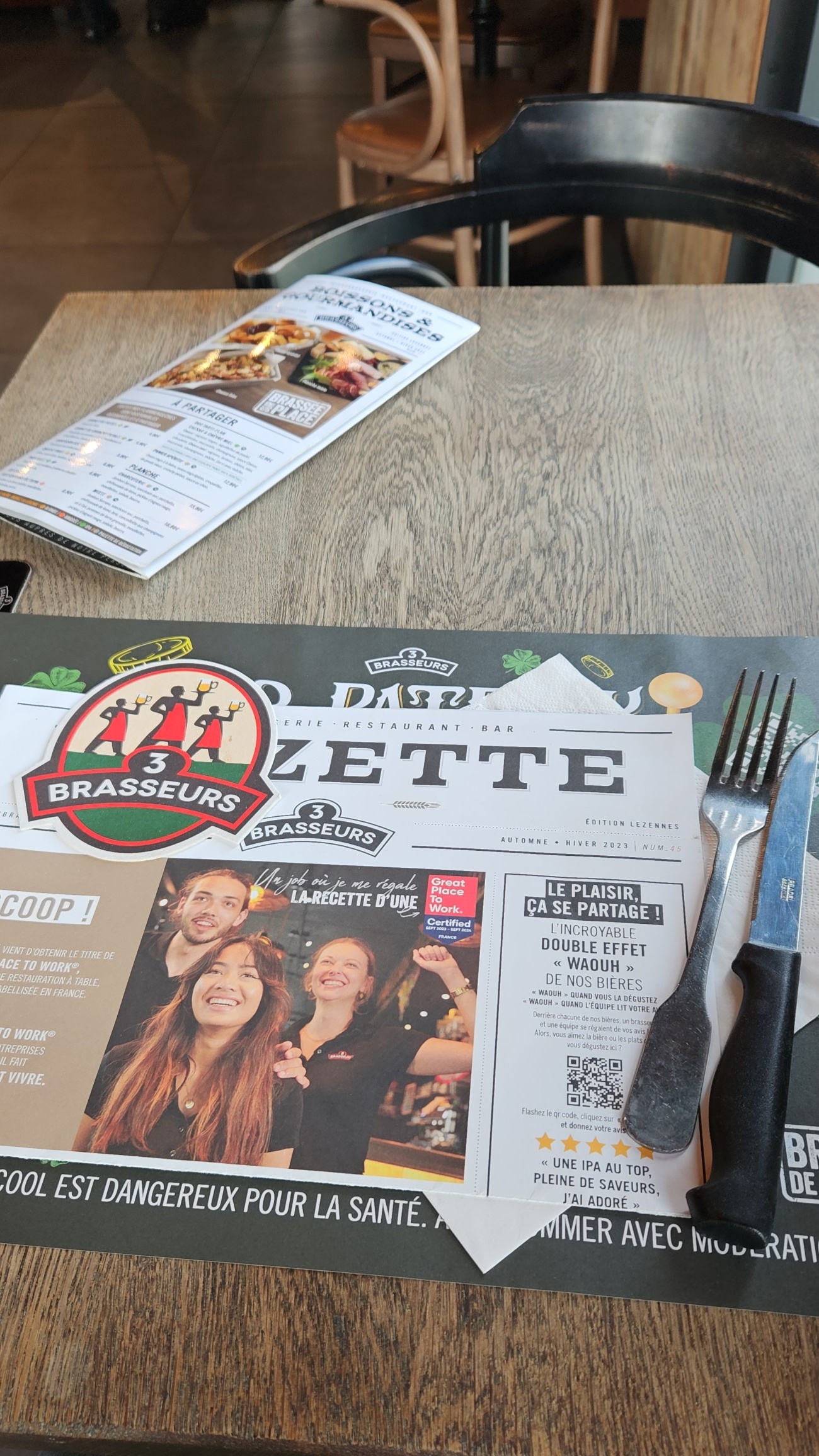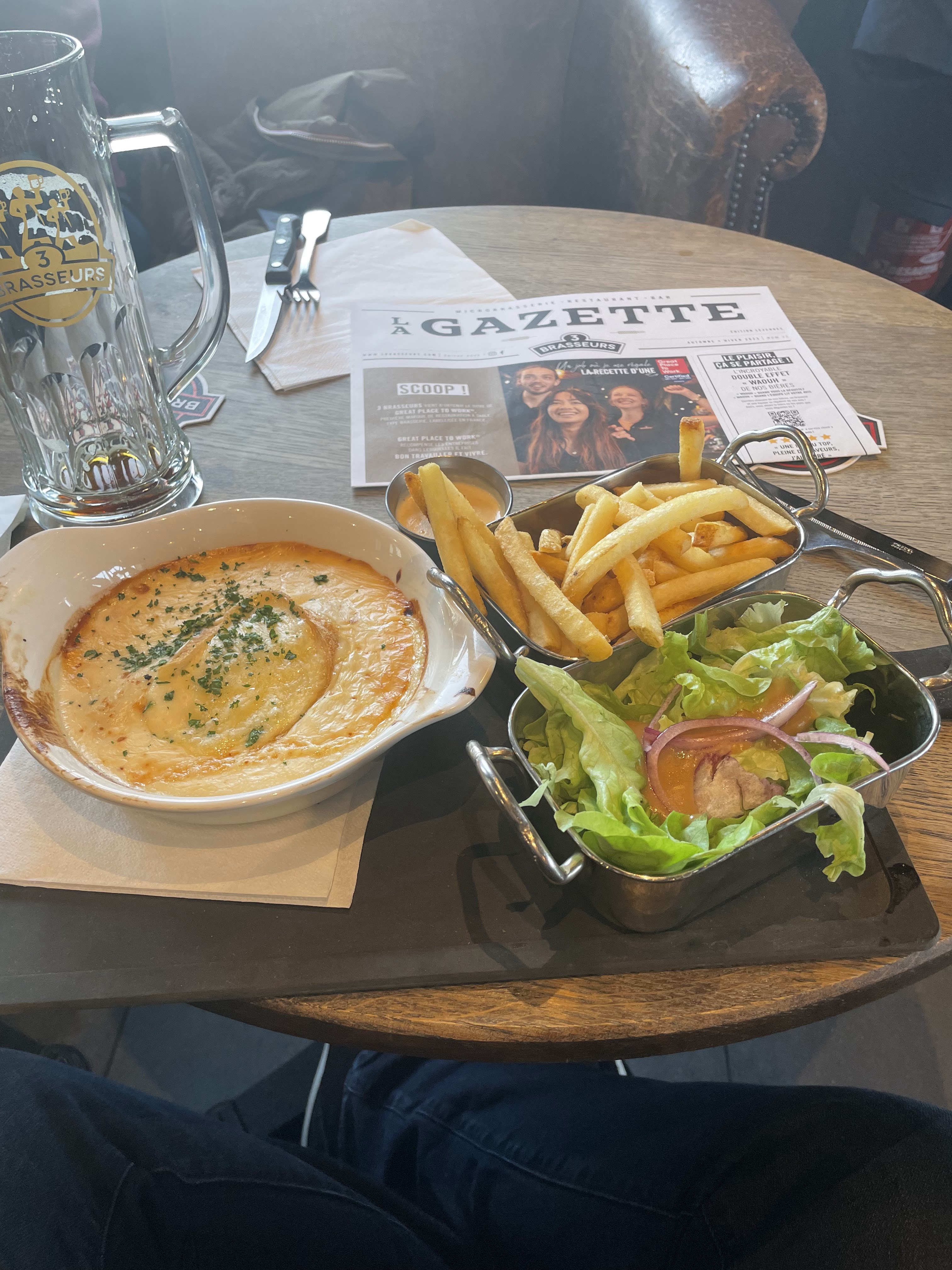 Très bon 3 brasseurs, l'accueil est parfait, les serveurs très sympathiques et à l'écoute, je me suis régalée, j'y reviendrai avec plaisir. Merci à vous.