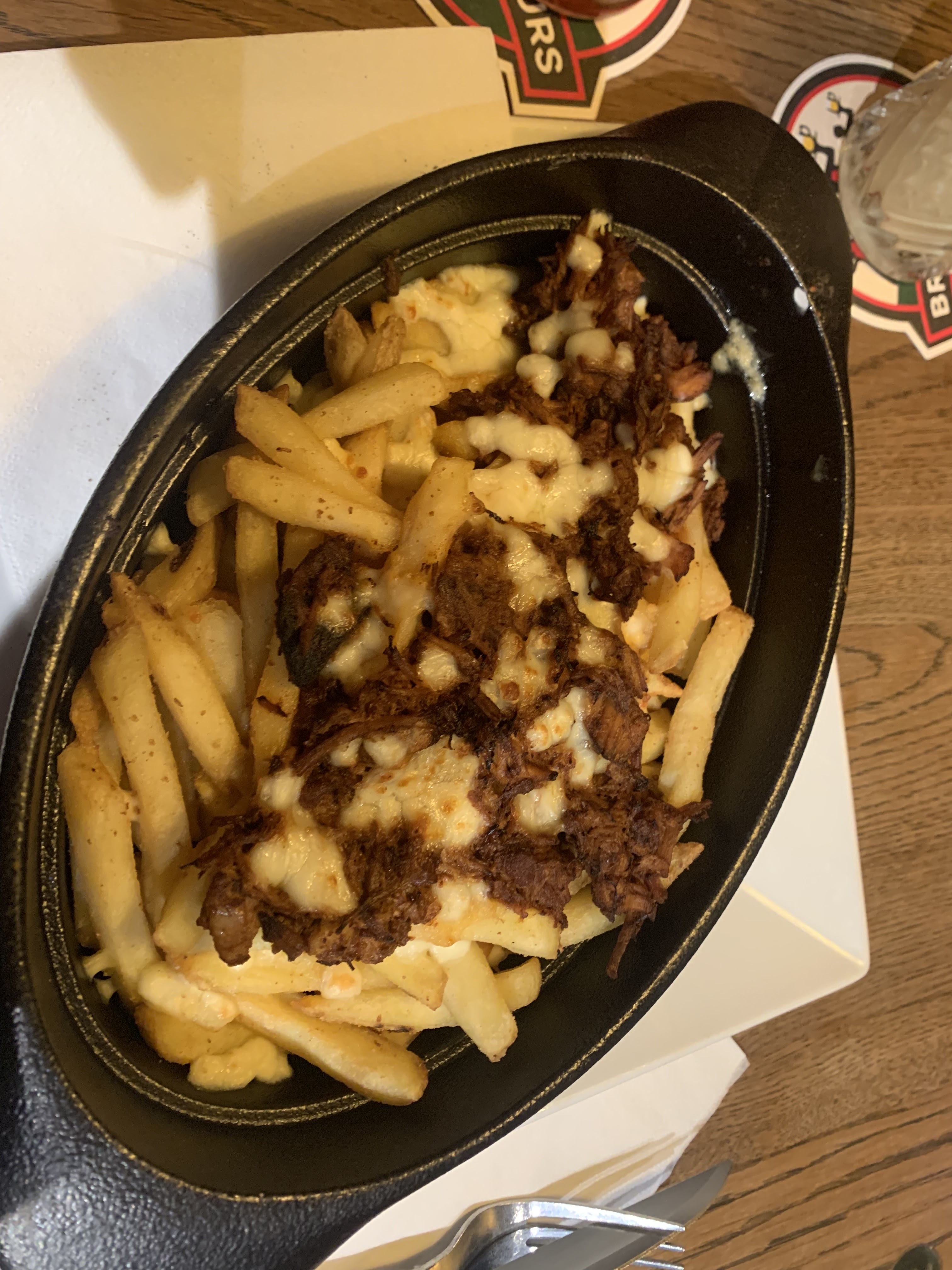 J'ai l'impression d'en avoir moins dans mon assiette pour le même prix qu'il y a quelques temps, poutine au poulet sèche et dessert qui donne envie sur la carte mais une fois à table ridiculement petit. Par contre la bière est toujours aussi bonne et le service en salle au top
