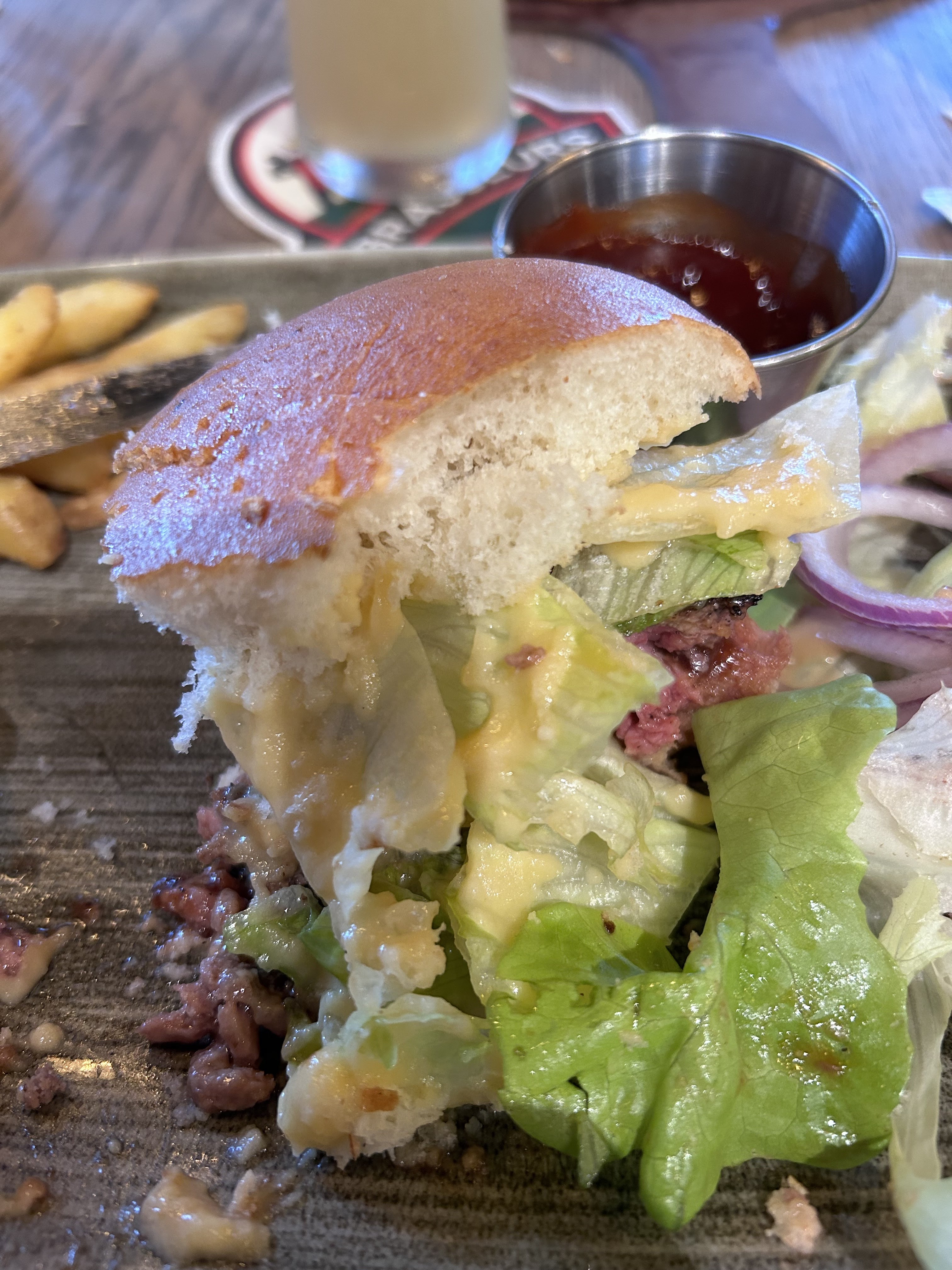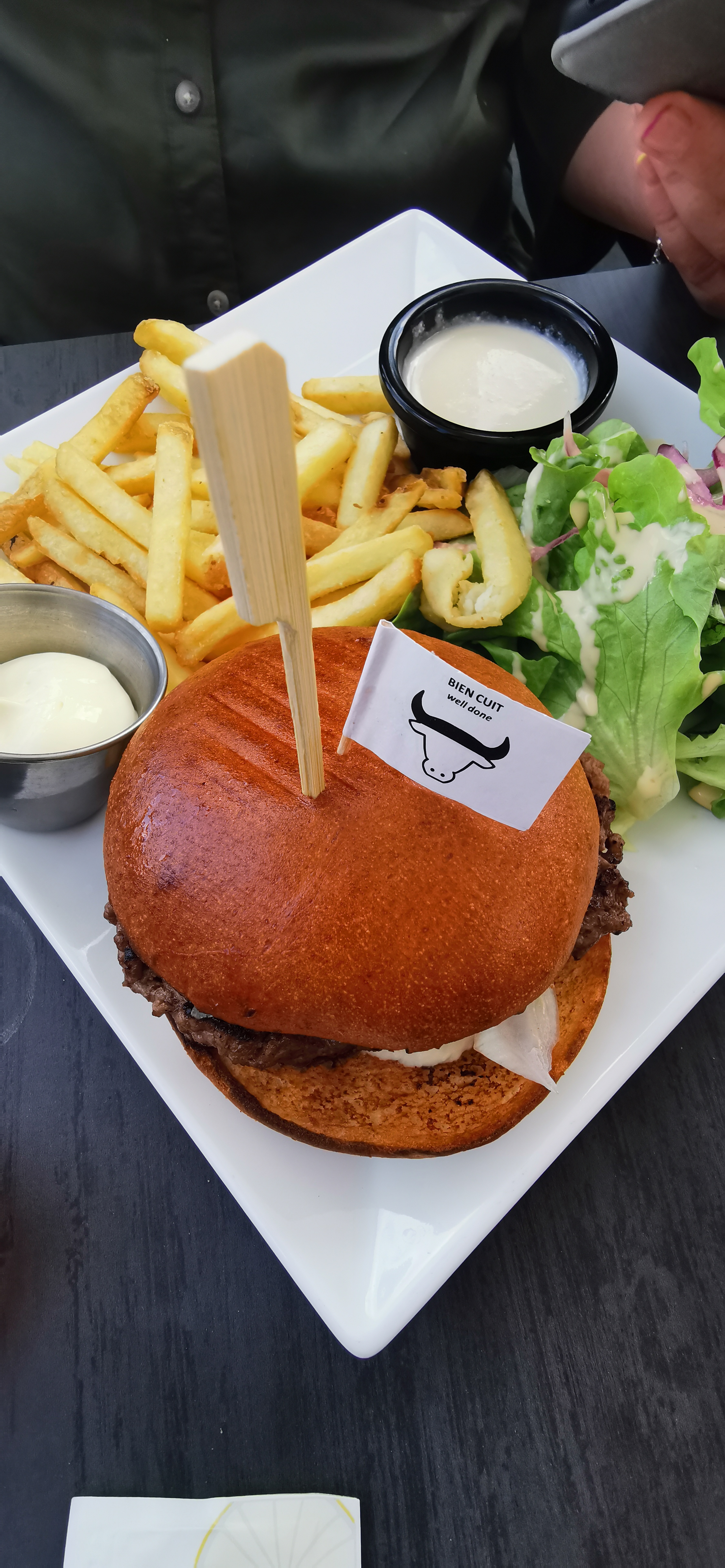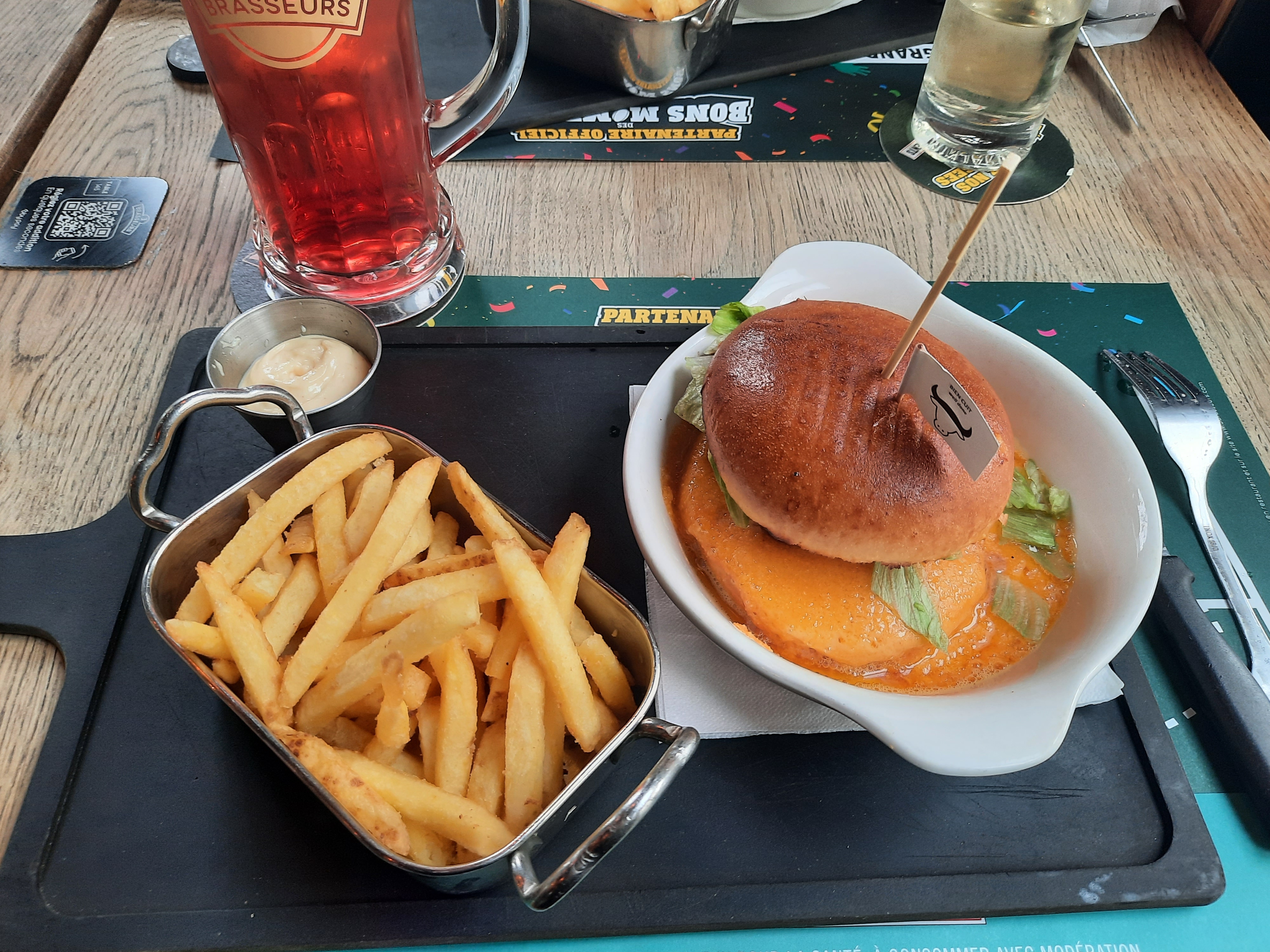 Burger très bon, juste une sauce pas à mon gout, mais objectivement c'était bon. Camille, la serveuse, était parfaitement coordonée avec nous, une vraie connexion, c'était fou, super souriante, super efficace, super quoi. Merci la cuisine et Camille pour ce bon moment qui nous a fait du bien après cette grosse journée. Bon courage à vous et gardez cette super énergie !