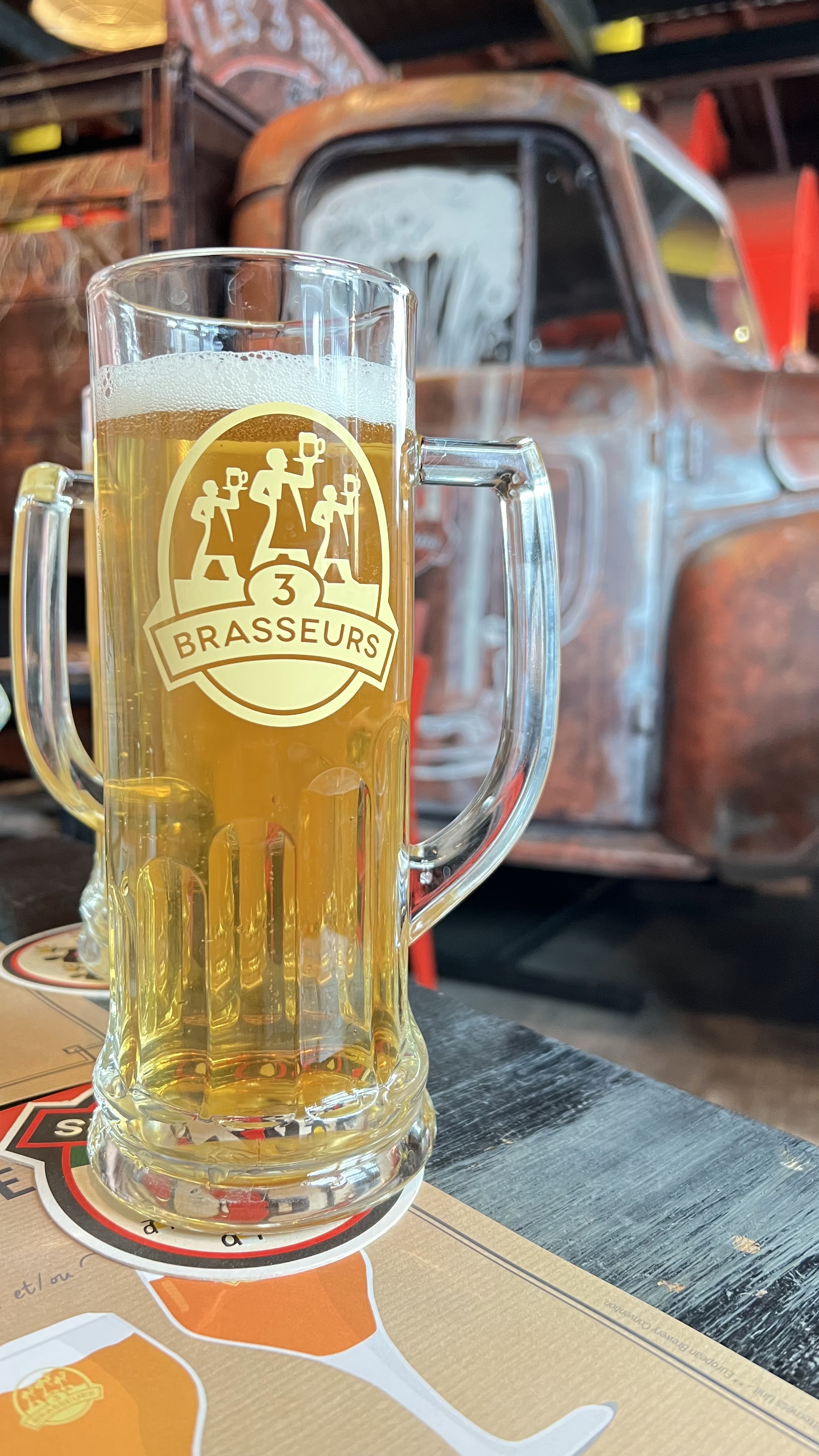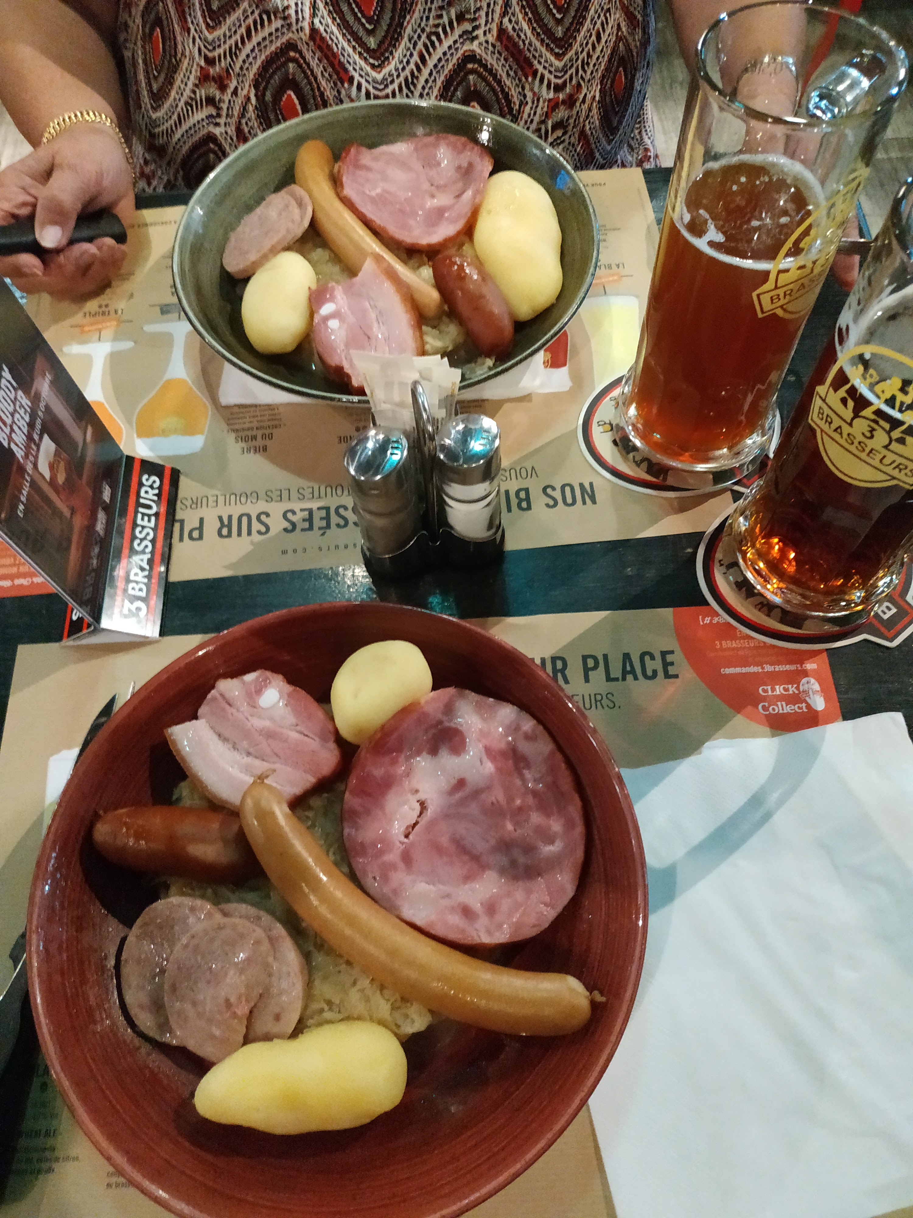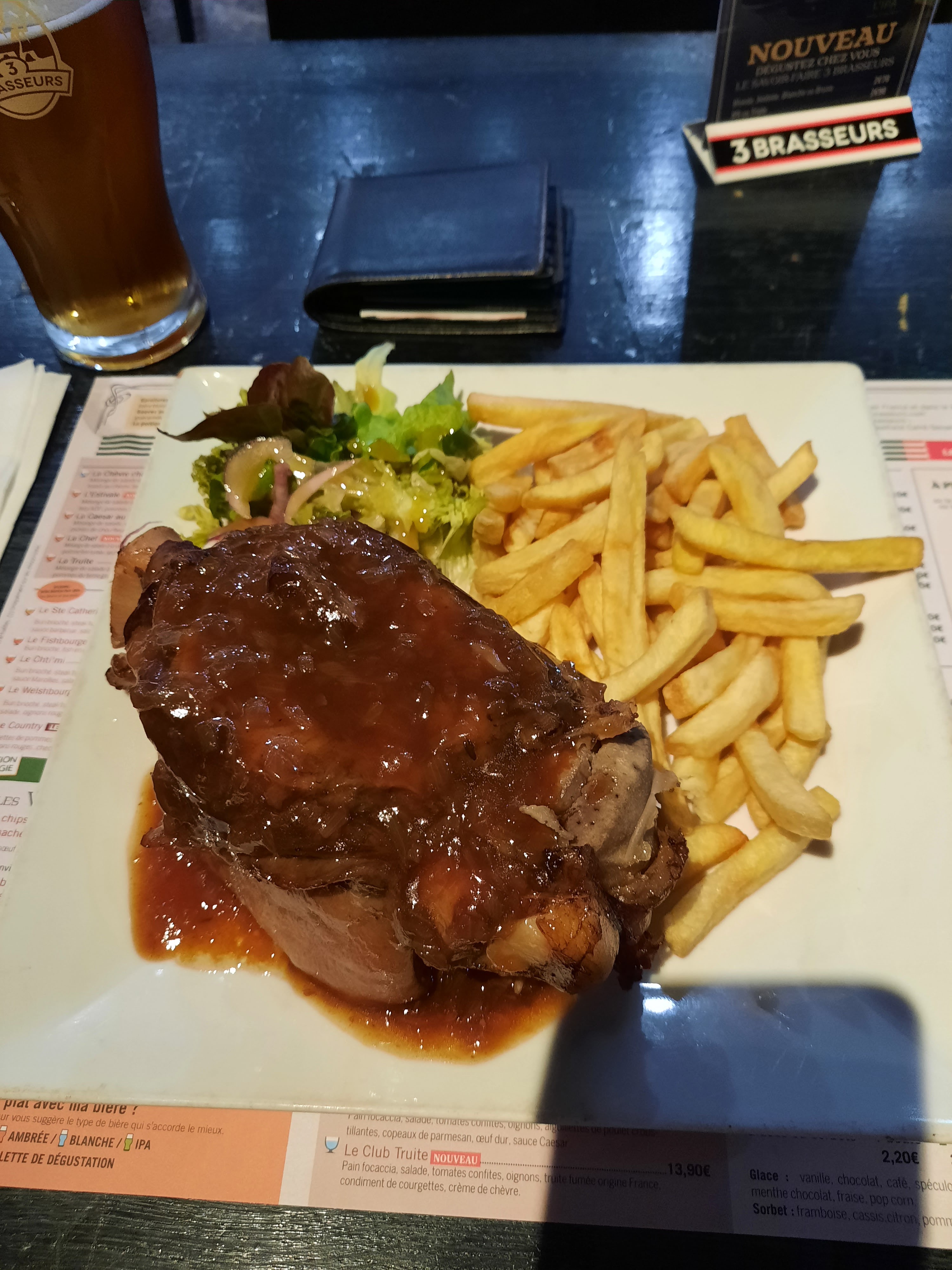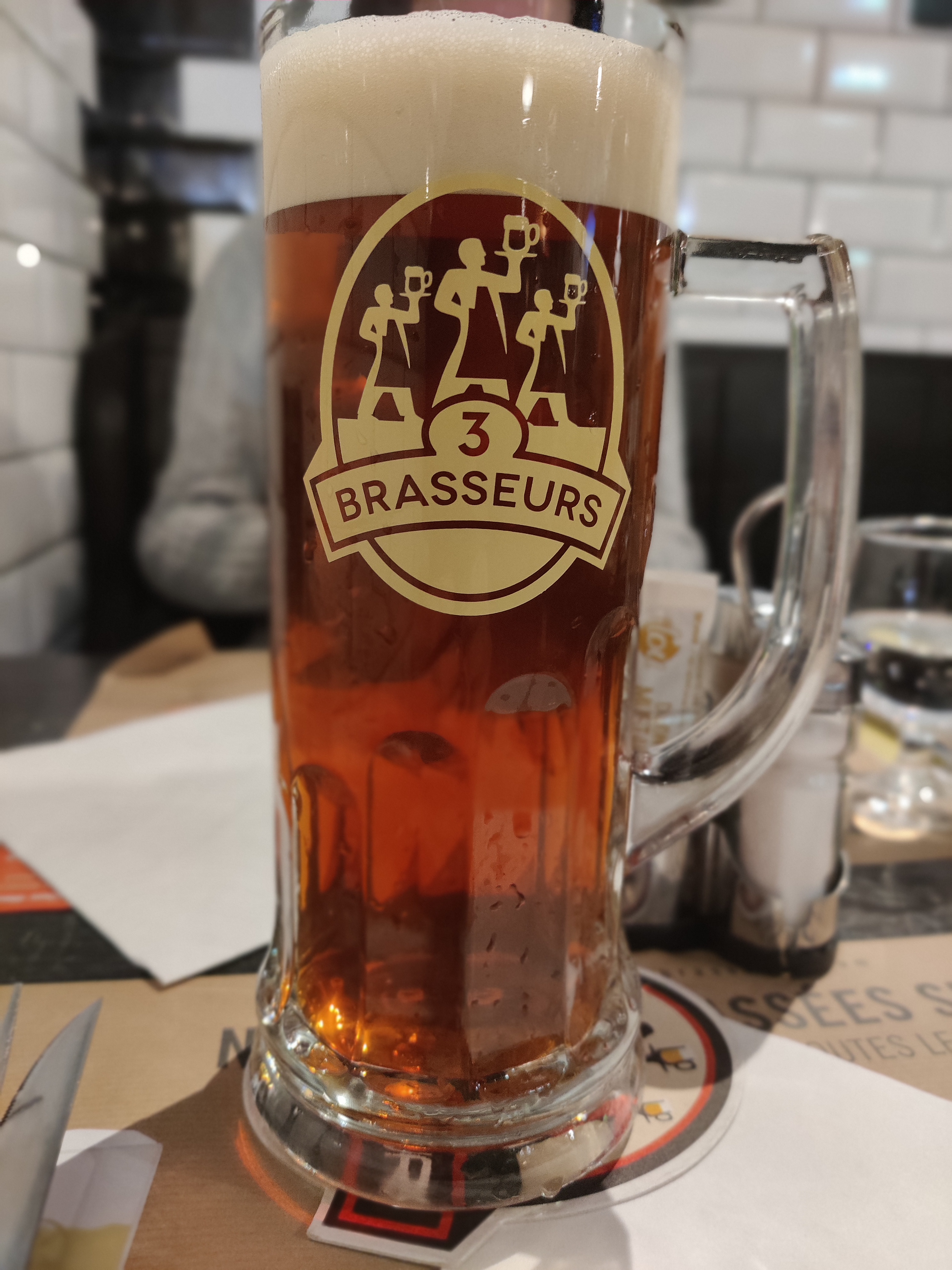 Cela fait longtemps que je n'avais pas fait les 3 Brasseurs .. Aller hop une journée Shopping puis un petit resto sympathique aux valeurs sûres . Une décoration atypique , pour ma part mon coup de coeur c'est d'apercevoir les fûts de distillation et de savoir que des bières sont faites sur places ! Quant à la carte , je ne savais pas quoi choisir car tout me donnait envie ! Une super carte , avec un service rapide , des produits de qualité et Du goût dans nos assiettes . Bref un moment réussi , et une recommandation ! Bravo à toute l'équipe 🤜🤛
