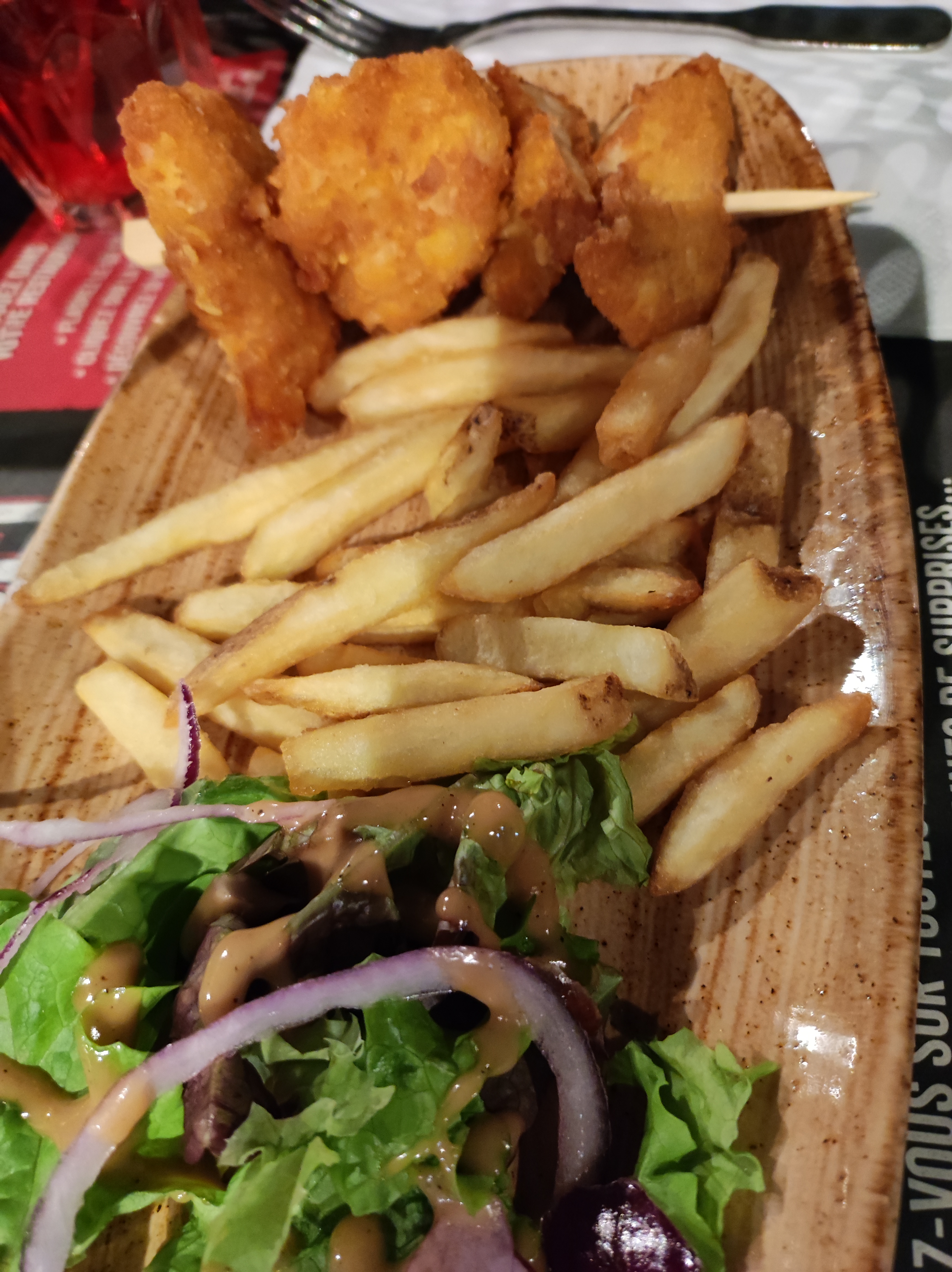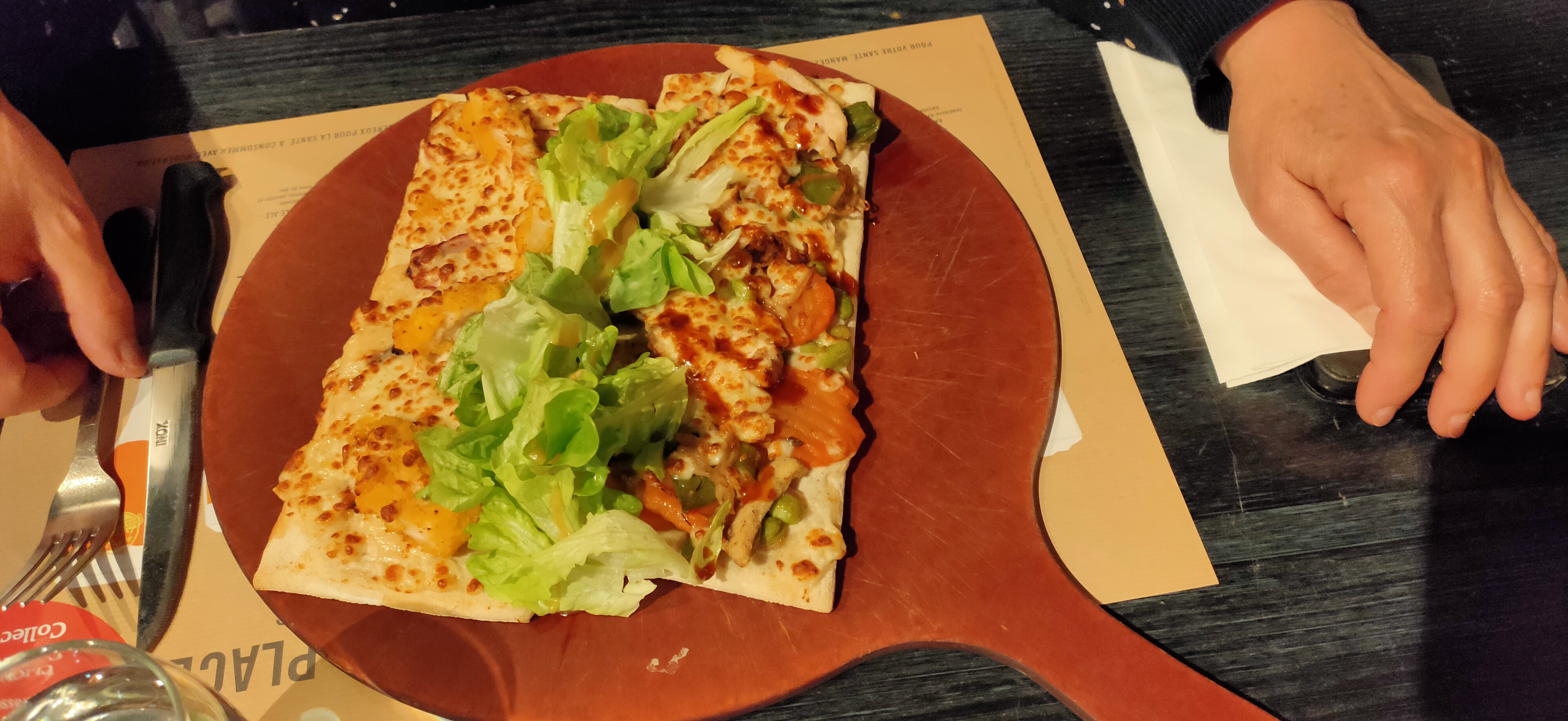 Très bon et copieux, service rapide. Néanmoins tables très proche difficultés à s'entendre car voisins bruyant et non séparé par plexiglas.