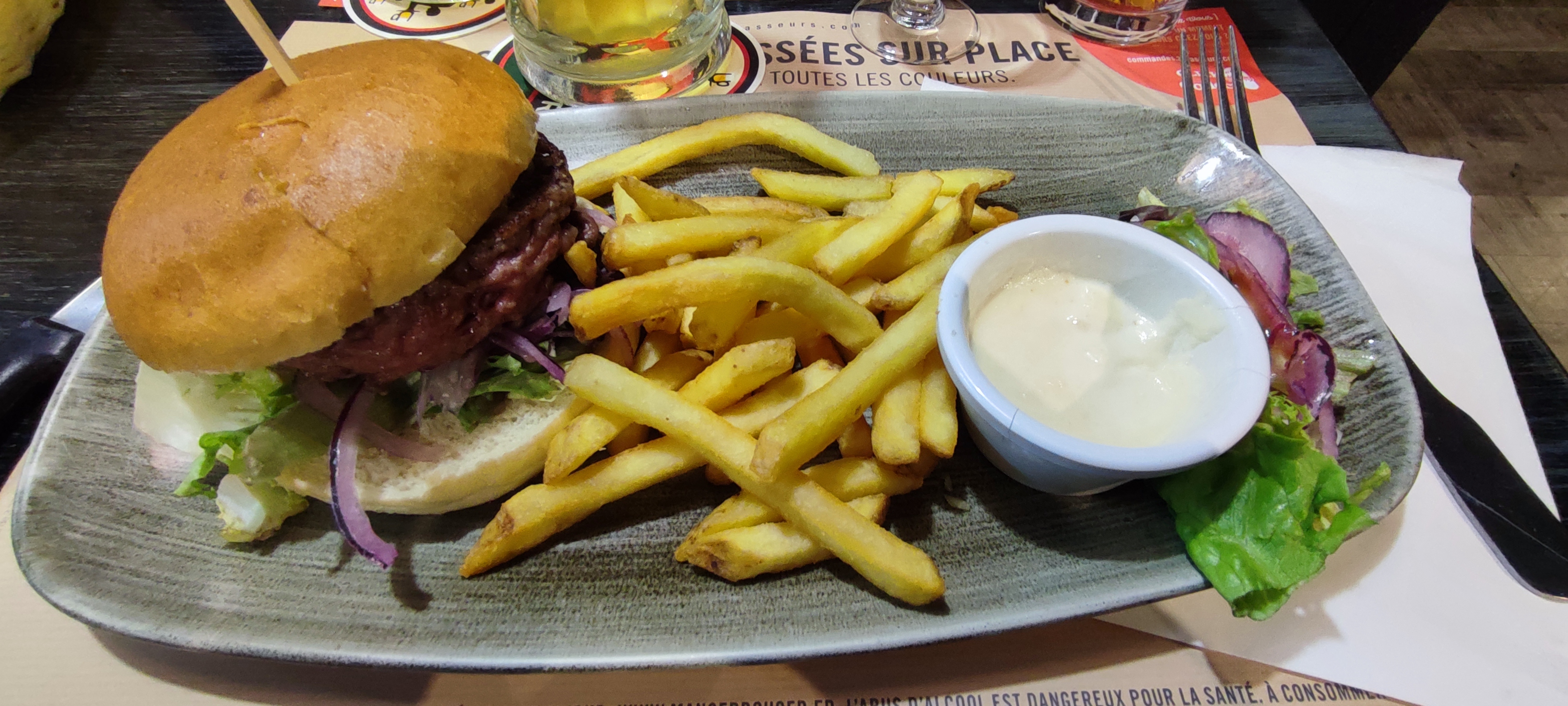 Le restaurant n’est pas fou, leur burger sont à fuir surtout le Ste Catherine le pain est ignoble. Le service est lent et est vite dépassée quand il y a un peu de monde allez à hippopotamus vous serez mieux !!