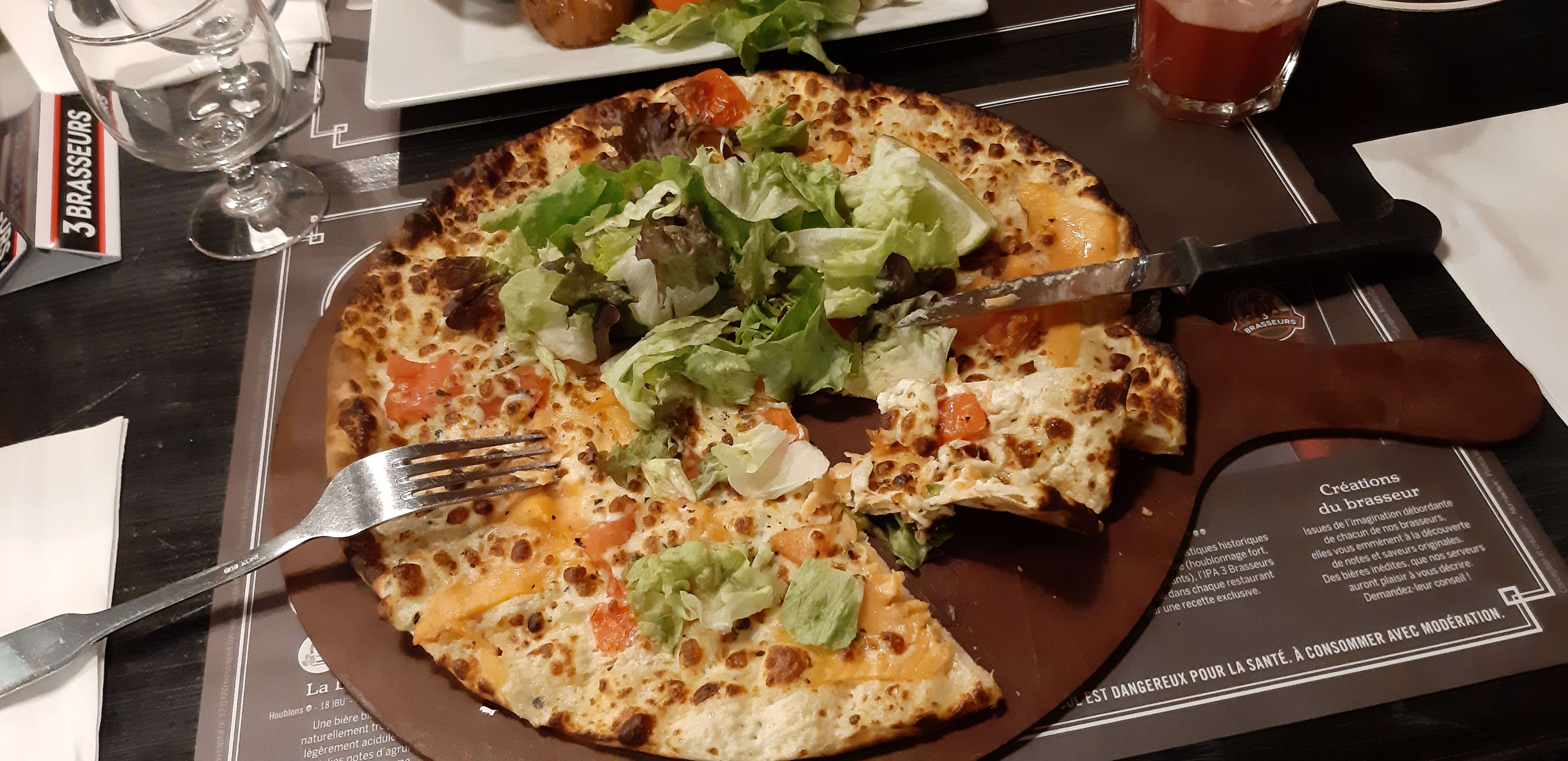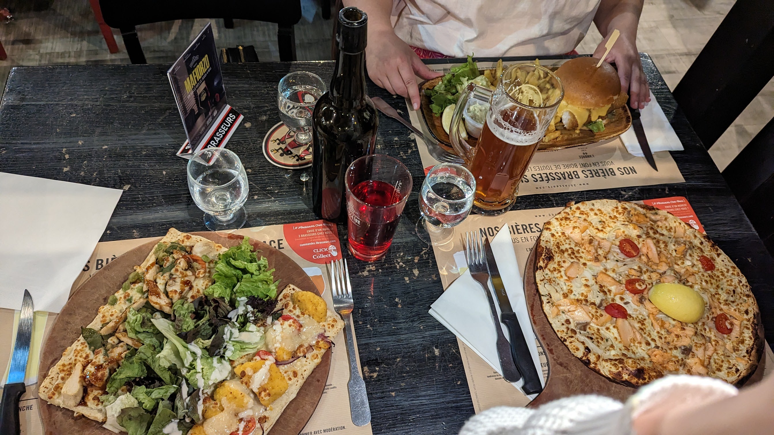 Baisse de la qualité, rupture gaufres enfants, flammekeuche trop sèche normal je regarde après sur la carte quand on me l'a redonne pour les dessert j'ai pris une flammekeuche au saumon il manquait la roquettes les oignons rouge le skyrs mozza le citron j'aurai du prendre en photo. Il yavais la pâte, du saumon, de la crème, oignons blanc, 4 tomate cerise dommage pour le prix. Mon conjoint a pris de la viande trop sec et avc beaucoup de nerfs..Dommage nous aimons beaucoup la chaîne des 3 brasseurs. Et au carré senart la carte de fidélité ne fonctionne jamais....