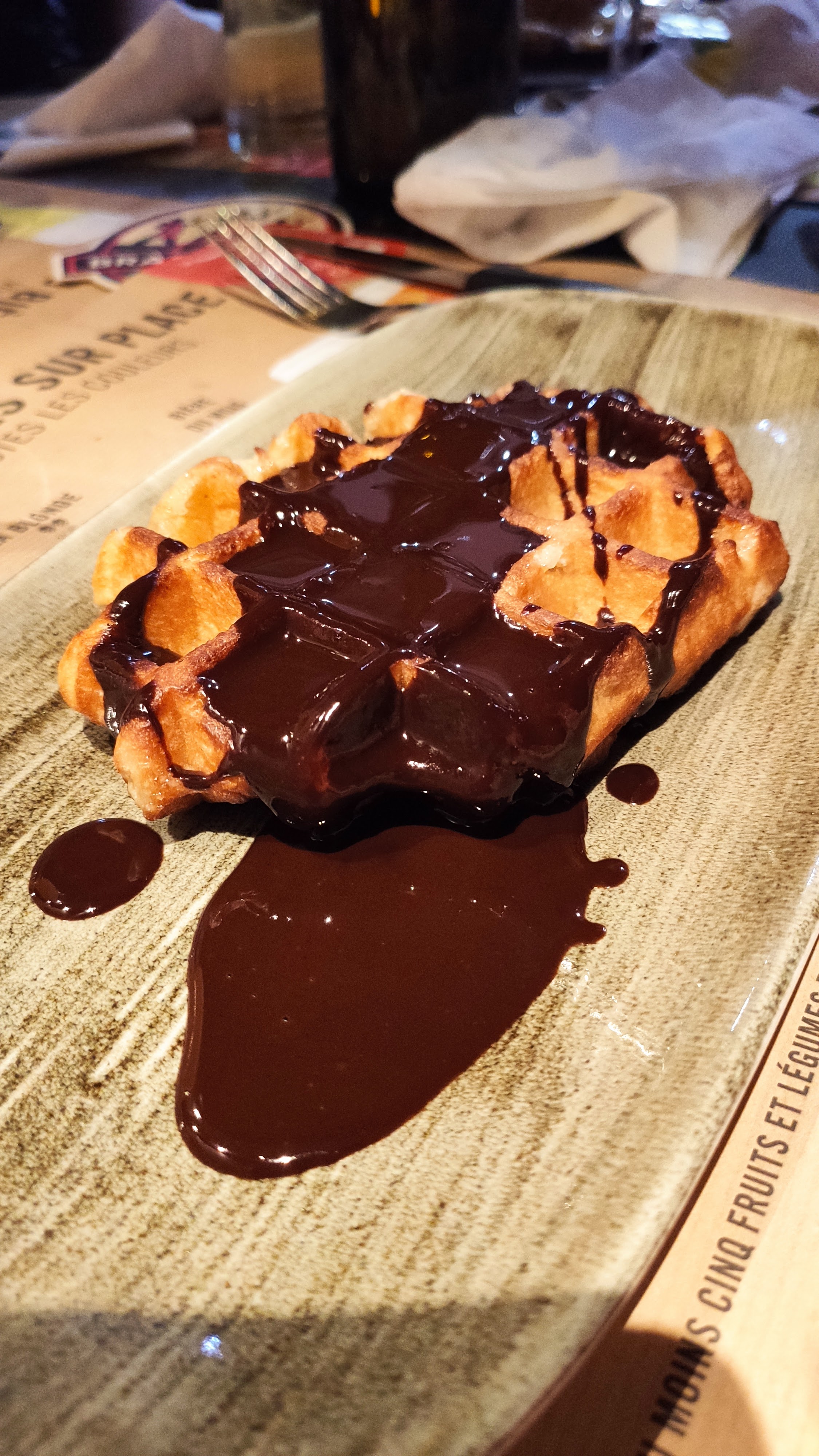 Nous avons passé un bon moment comme à chaque fois. Le repas était bon néanmoins je tiens à souligner le manque de considération envers les clients et notamment pour les enfants car ce soir, à 21h30, il n'y a plus de gaufre disponible pour le menu enfant et aucun geste n'est fait pour compenser ce manque. Refus catégorique de la cuisine de préparer ne serait-ce qu'une gaufre adulte divisé en deux pour les enfants. Déçu de ce comportement, pas très commerçant... En espérant que cela ne se reproduise plus.