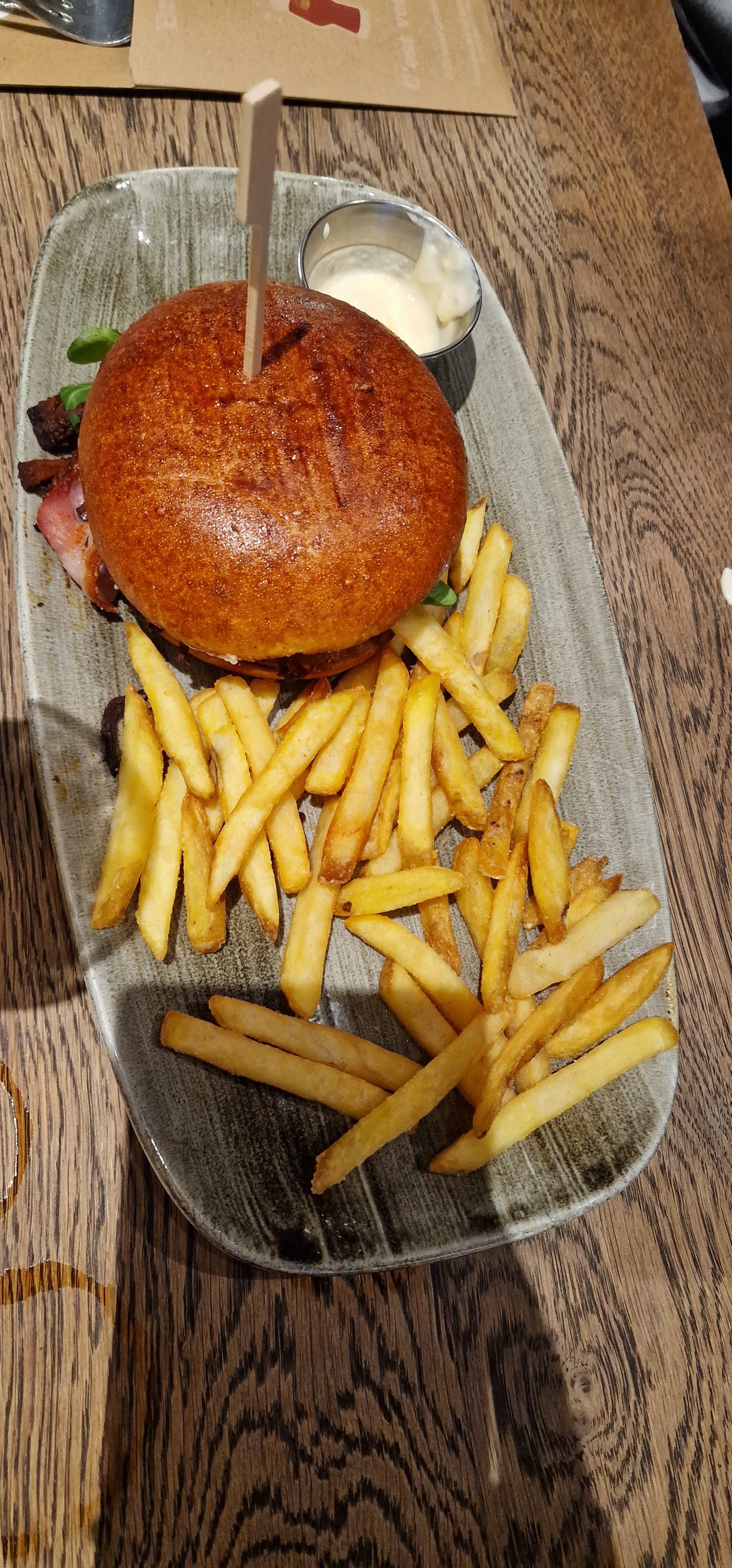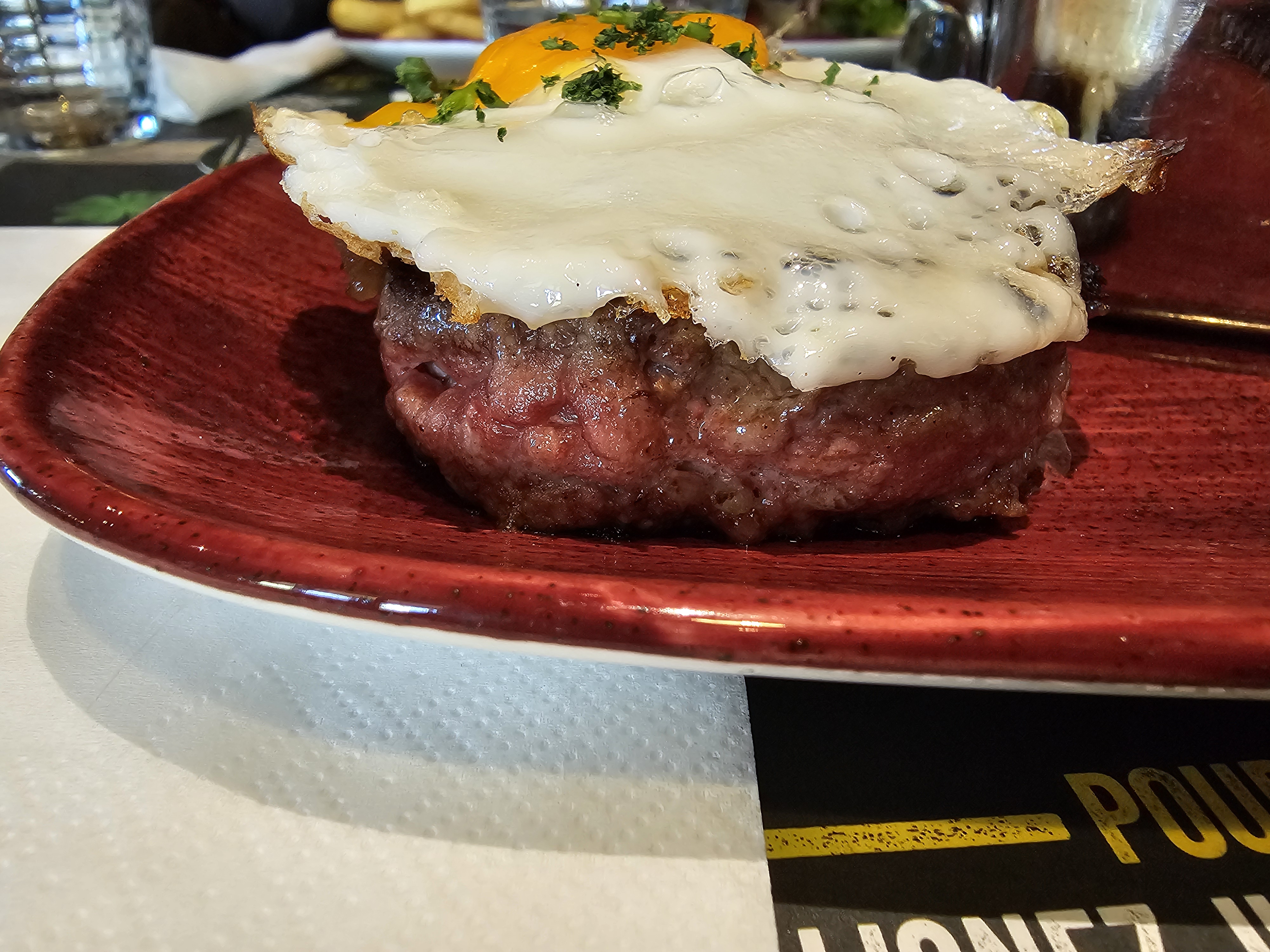 Le burger était sec, peu de sauce, vraiment pas beaucoup de goût ni de garniture. Décevant. La bière était bonne néanmoins.