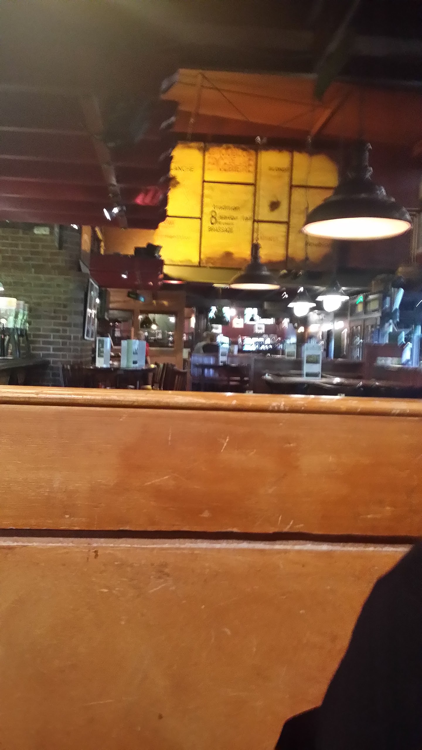 La nouvelle décoration et mise en place est superbe le restaurant était déjà très chaleureux mais les petites affiches posées sur les pylônes sont vraiment très bien trouvé. comme d'habitude le service est parfait agréable jovial souriant la cuisine est toujours très bien la bière et fraîche que demander de plus un lieu convivial où nous aimons nous retrouver entre amie