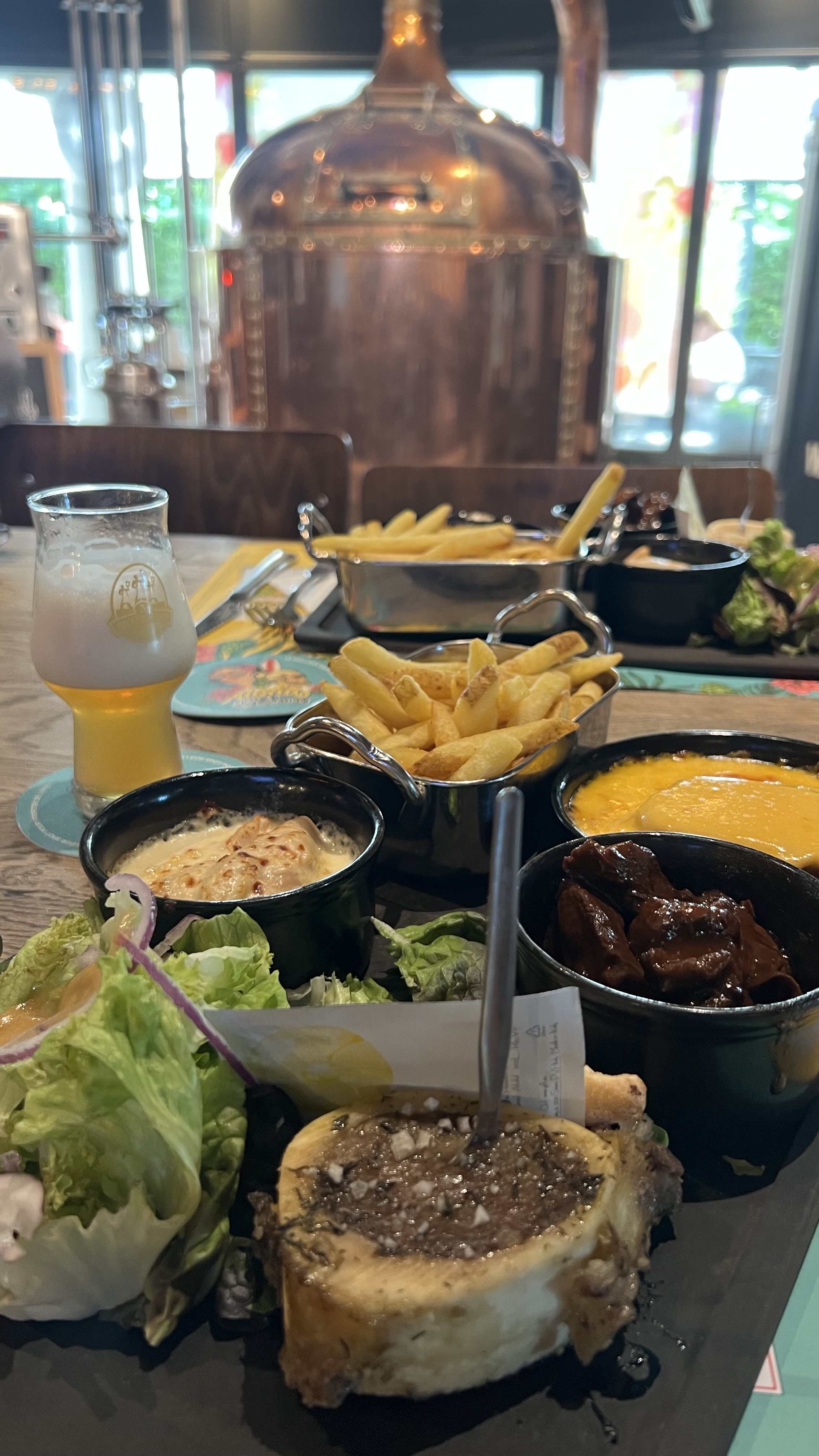 Tout simplement génial! La visite guidée par le Brasseur Gabriel autour de la microbrasserie était définitivement incroyable, c'est un incontournable si vous visitez cet endroit. La cuisine française traditionnelle est tellement bonne et les bières artisanales fabriquées sur place sont exceptionnelles, notamment Soleil du Mexique. Ne manquez pas ce joyau, croyez-moi !