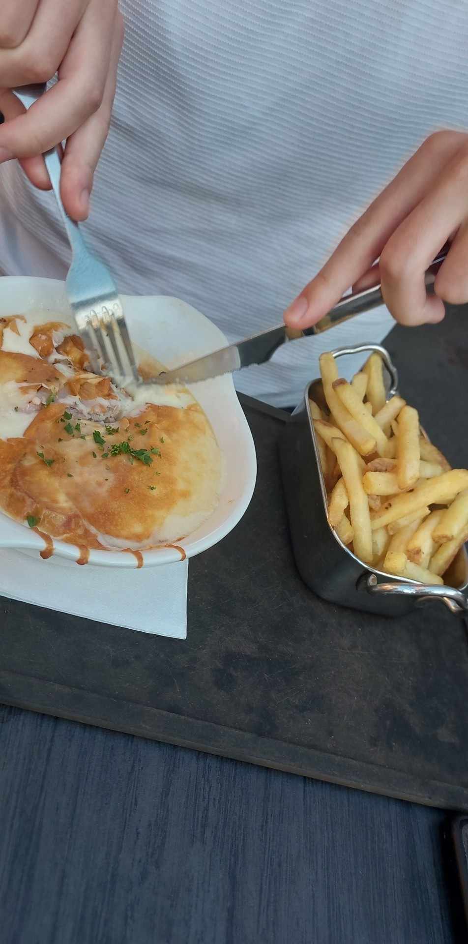 Honnêtement, il ne faut pas être compliqué en nourriture. Beaucoup d'établissements sont meilleurs mais bon c'est une chaîne donc on s'y attend. Je n'étais pas venue depuis 2-3 ans mais j'ai voulu retester, or c'est toujours pas fou fou. On a prit une poutine kebab qui était pas mal, mais pas assez de sauce et de viande pour toutes les frites. Par contre la portion de frites est tout de même généreuse. Les demies flammekueches étaient passables, mais la pâte assez dure et sèche, c'était tiède. Mais ça se mange quand même quoi. En dessert, une mousse au chocolat bonne. Le service était bien, assez rapide. Par contre, on avait vu sur leurs réseaux sociaux une soi disant soirée jeux de société alors qu'elle était finalement pour les enfants. Ca aurait été bien de le spécifier, d'autant plus qu'on était venus pour cela. Voilà donc en résumé, une adresse où l'on ne mange pas mal, mais pas incroyable non plus.