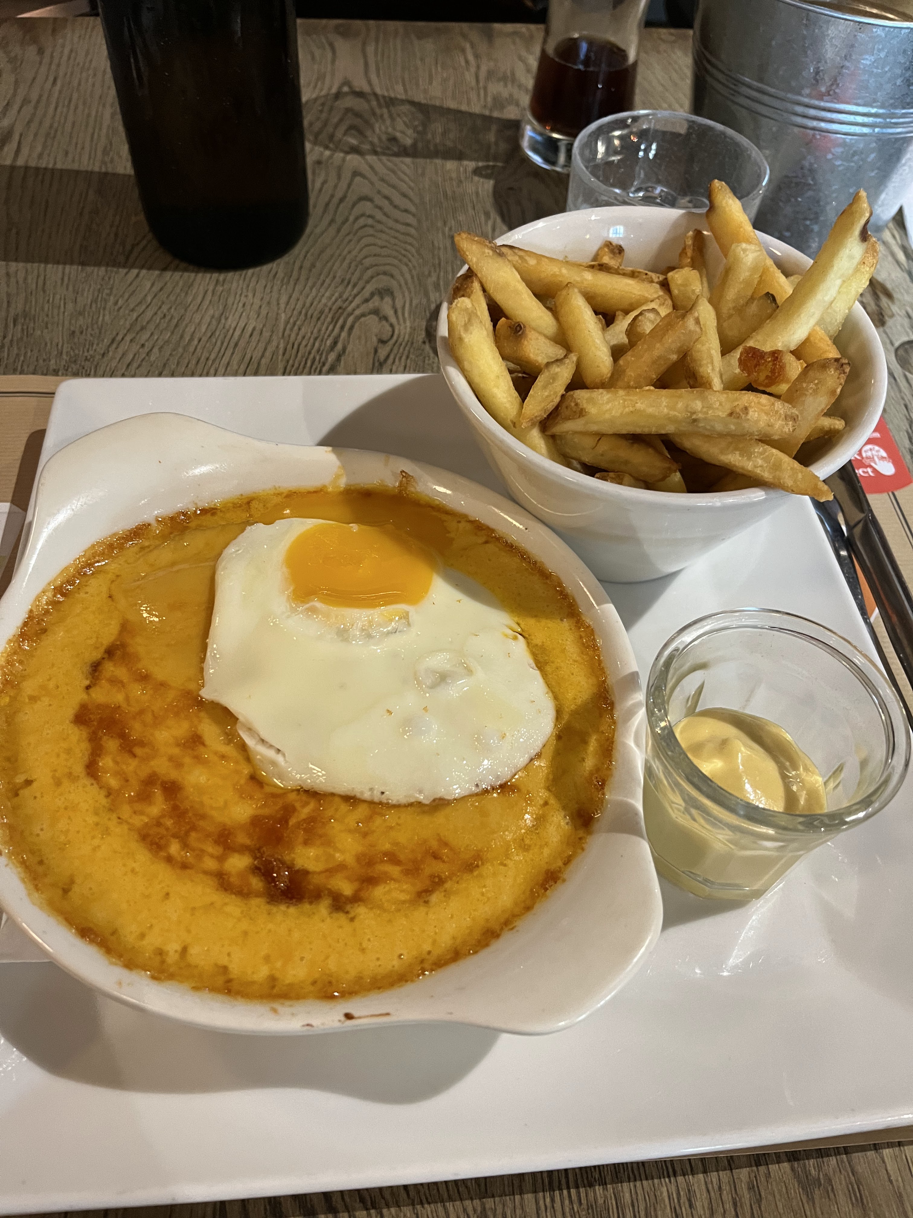 Un samedi soir, le restaurant est plein. Manque de personnel pour le service, on attend un bon moment pour passer commande. On attend encore et soudain, les plats arrivent ... On n'a toujours pas eu nos cocktails 😕. Le serveur propose de nous les ramener rapidement mais évidemment, on préfère les décommander ... Les welchs sont assez insipides et surtout, c'est un gros bloc de cheddar à peine fondu, les frites sont très moyennes et en petite quantité. Bref, une déception totale alors qu'on est déjà venu il y a quelques années et c'était très bien.
