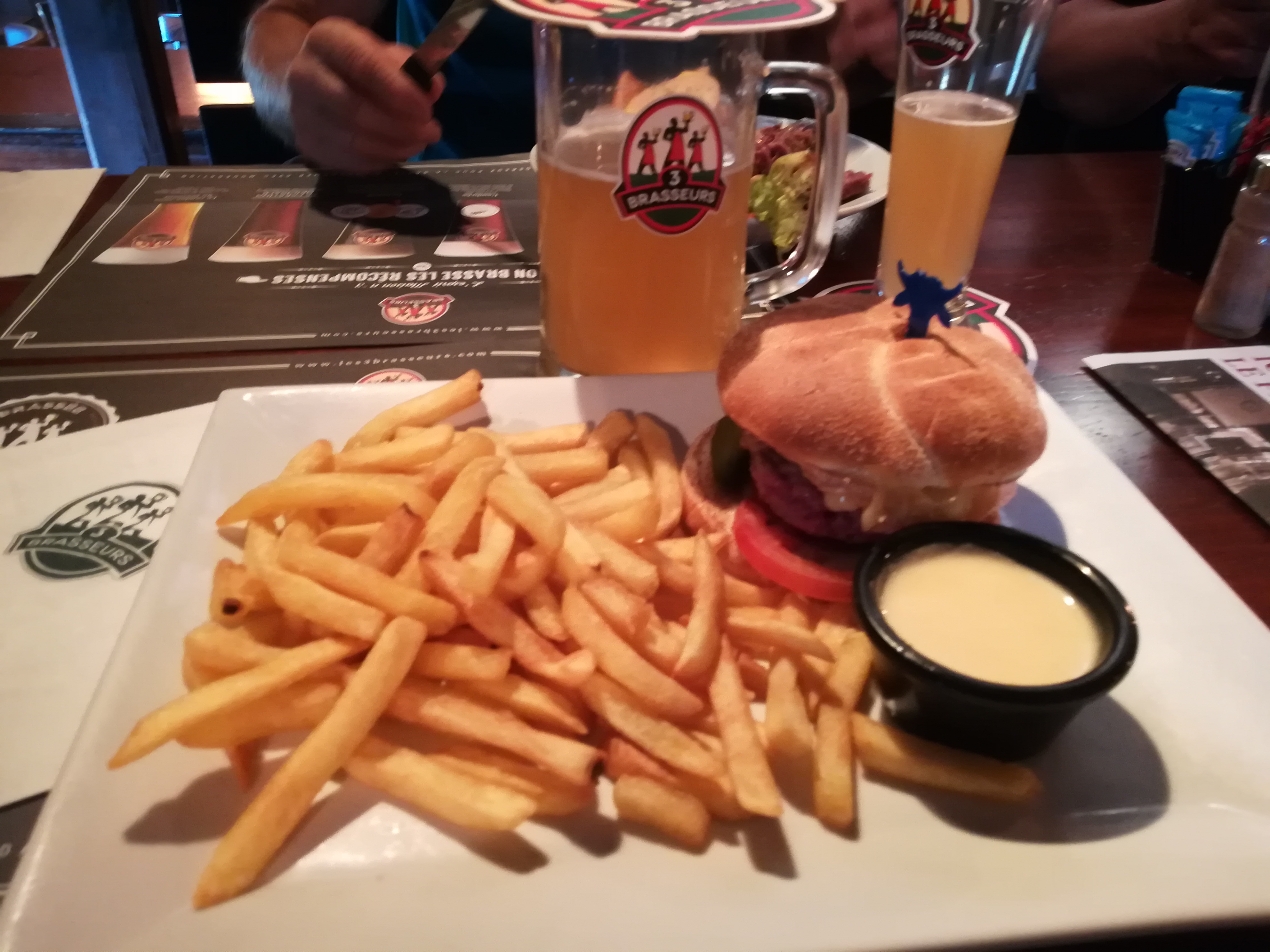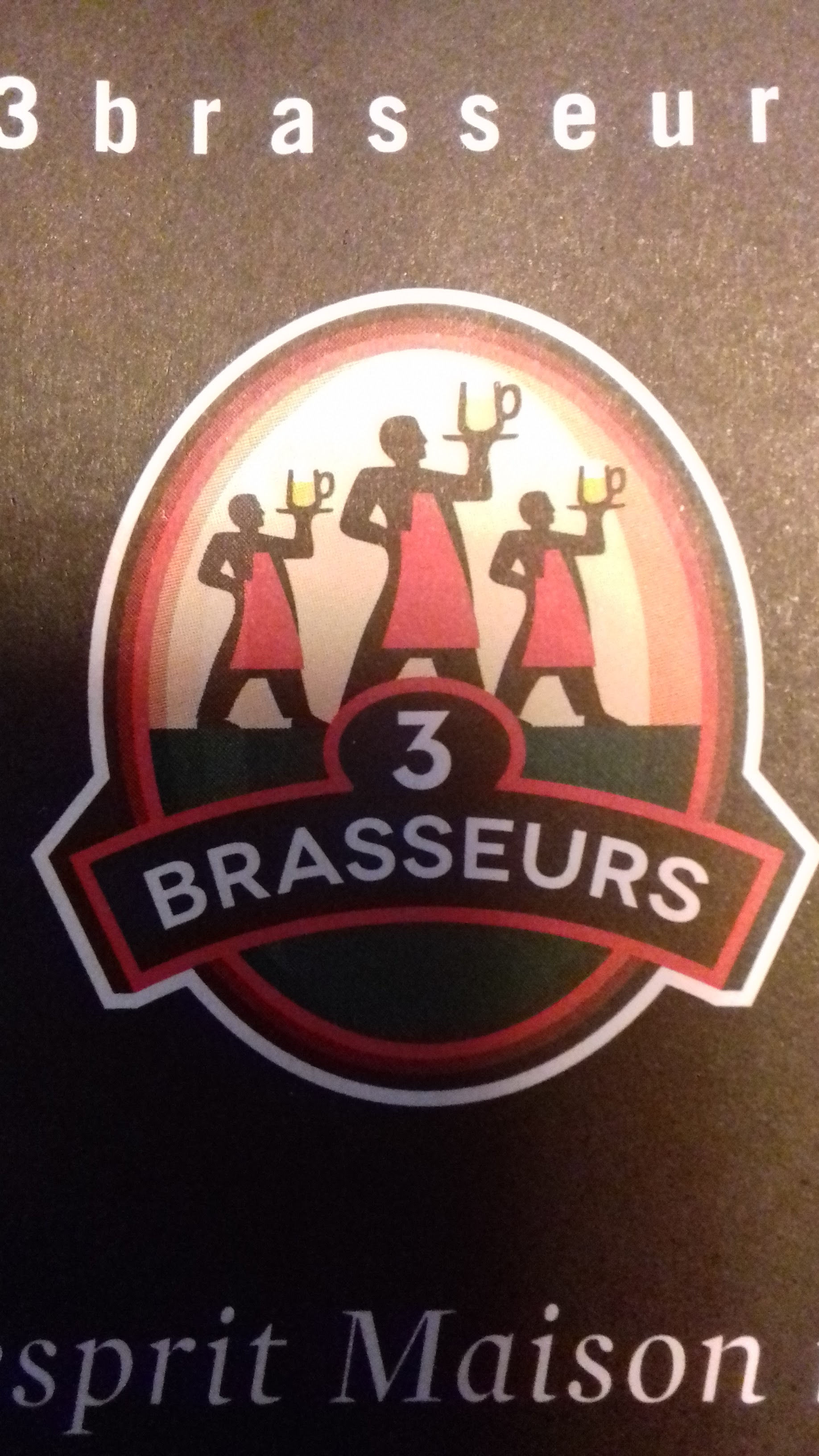Les 3 brasseurs, toujours aussi bondé, il faut le savoir avant d’y aller… on y mange très bien, évidemment ce n’est pas un restaurant gastronomique mais c’est bon et très copieux ! Accompagné d’une bonne bière, j’y ai passé un agréable moment. Le personnel est très courtois même s’il court partout!! J’y retournerai sans hésiter !