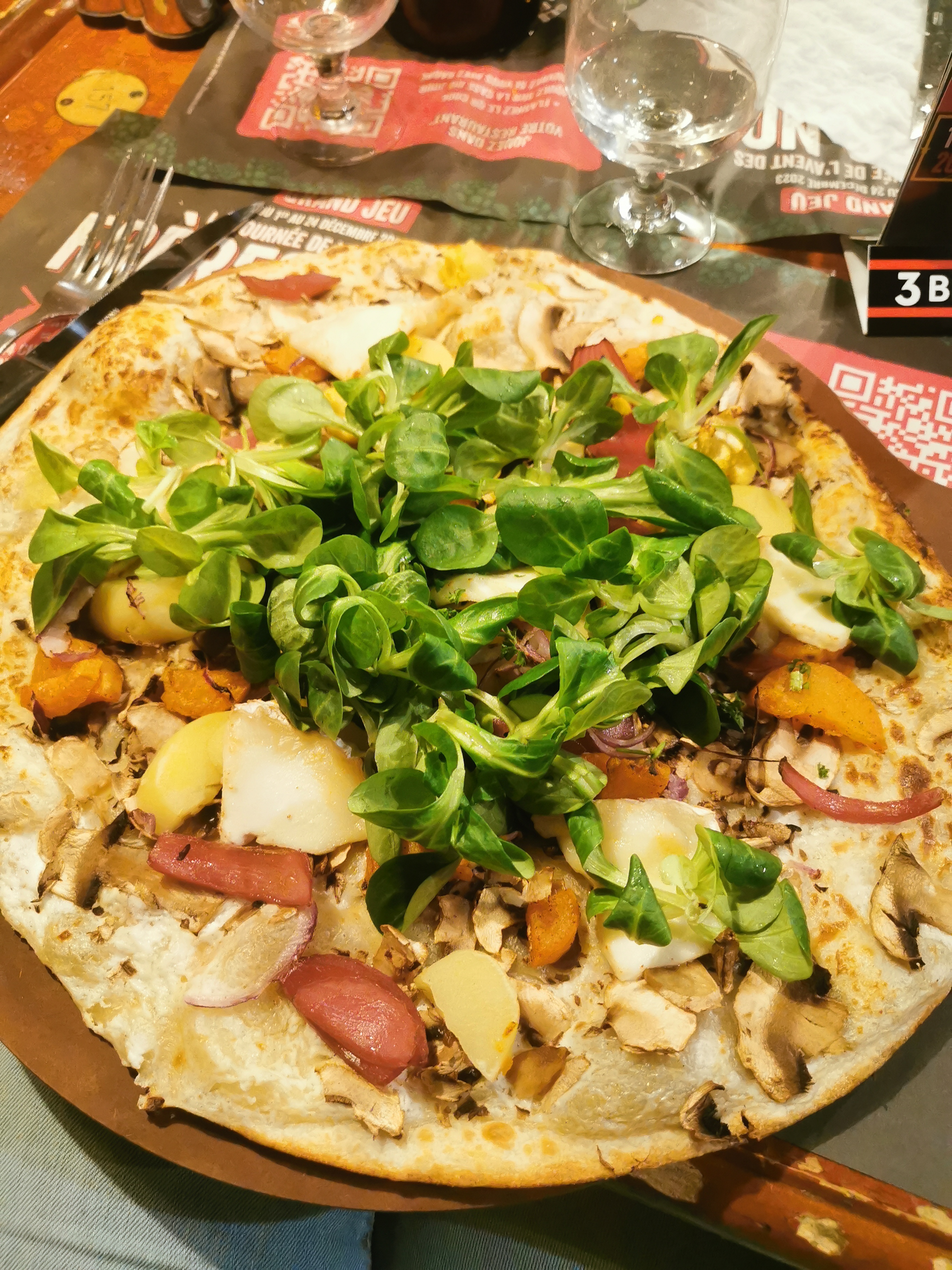 Cadre chaleureux, convivial. Espace un peu restreint parfois. Personnel aimable, souriant. J'ai choisi la flammenkueche végétarienne. Étonnée et déçue quand elle est arrivée. 3 petits morceaux de chou fleur qui se battaient de loin. Clairement j'ai demandé à en avoir plus parce que je trouvais ça mensonger et clairement en terme de rapport qualité prix décevant. La serveuse a accepté et j'ai eu un petit bol. J'indique 3 étoiles car j'espère que les quantités seront vraiment revues de façon automatique, sans réclamer. Cet avis est subjectif et sera modifié de façon positive si mon expérience était un peu un pas de chance ce jour là.