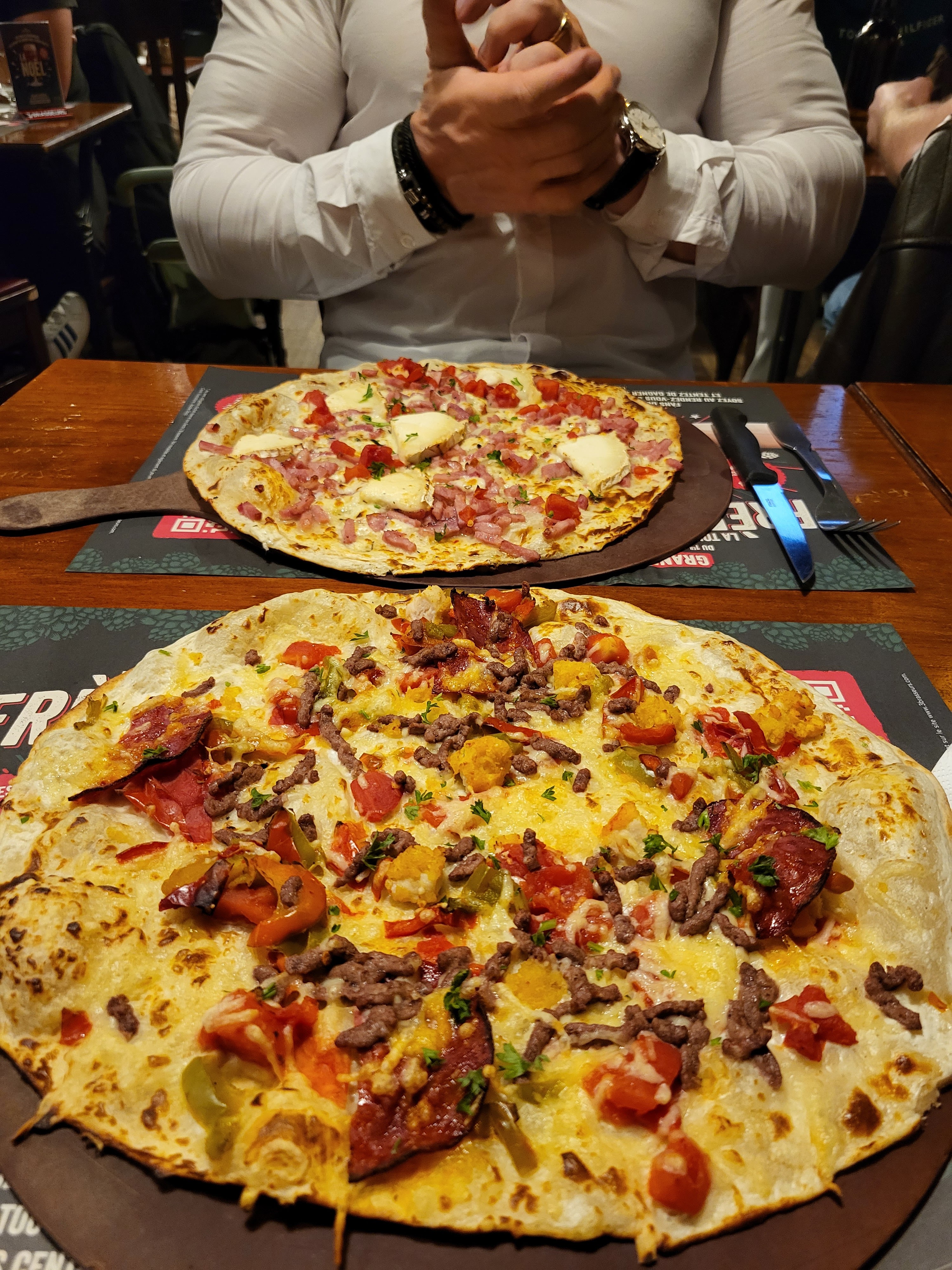 Belle découverte ! Un accueil au top, un service au top ! Des plats plus que corrects et en dessert la flammekuechette banane, nutella, un délice 😋 Juste un peu bruyant. Merci ++