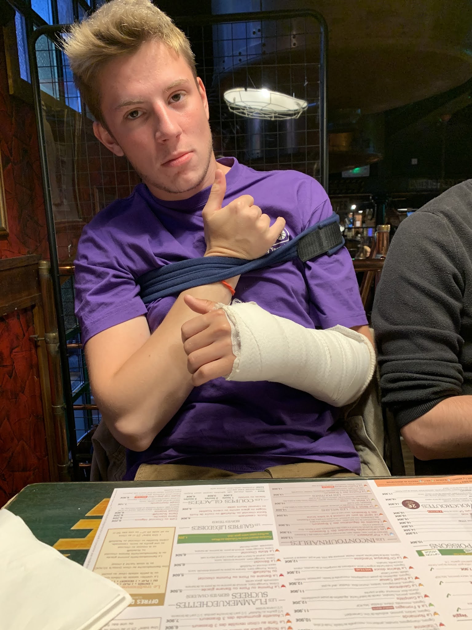 Nous aurions pu passer un meilleur moment si le serveur n’avait pas pu s’empêcher de nous répéter plusieurs fois qu’on devait se dépêcher de commander et de manger parce que c’était la fin de son service , entre les plats qu’il débarrassait alors que tout le monde n’avait pas terminé , et les verres alors qu’il en restait .. surtout pour au final non sortir « ah bah non je peux pas partir » . En plus vous vantez de passer la coupe du monde de rugby mais couper les télés avant la fin du match c’est limite . C’est dommage .