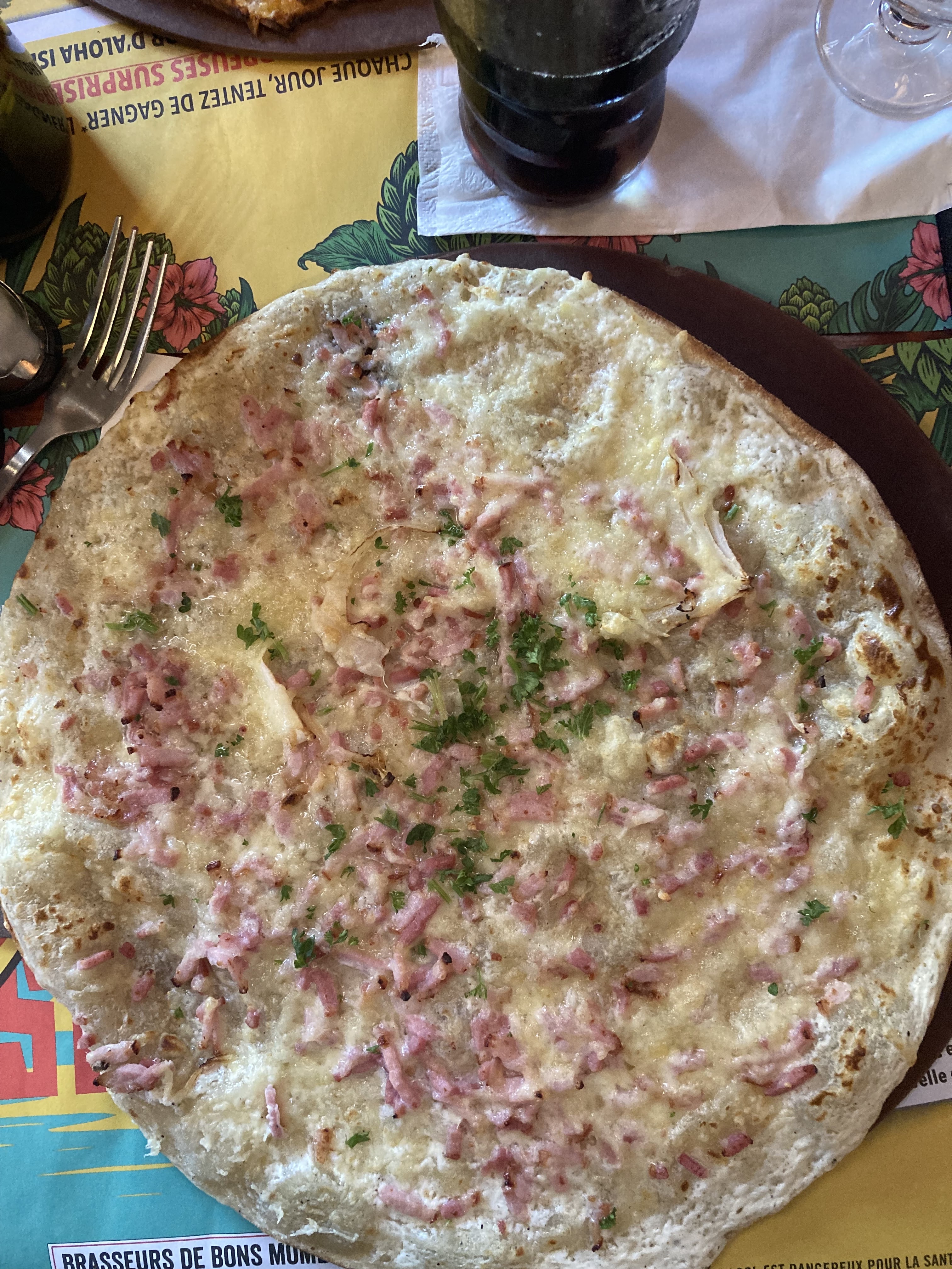 Que dire, la Flammekueche était bonne la pâte fine garniture pas très copieuse mais pour le prix ça allait. Par contre le service.... Les serveurs sont débordés dans l heure du midi en semaine je les plains ils courent entre deux tables n'ont pas le temps de parler il faut faire vite et choisir vite . Pas d espace entre les tables vous serez coller à vos voisins, c'est rendements rendements... Servir le maximum de monde en un temps record ... Nous avons été oublié nous avons attendu 1h notre plat et pas la moindre excuse rien. Je comprends que c'était le rush du midi mais merci d'être un minimum humain , un sourire n'a jamais prit beaucoup de temps .